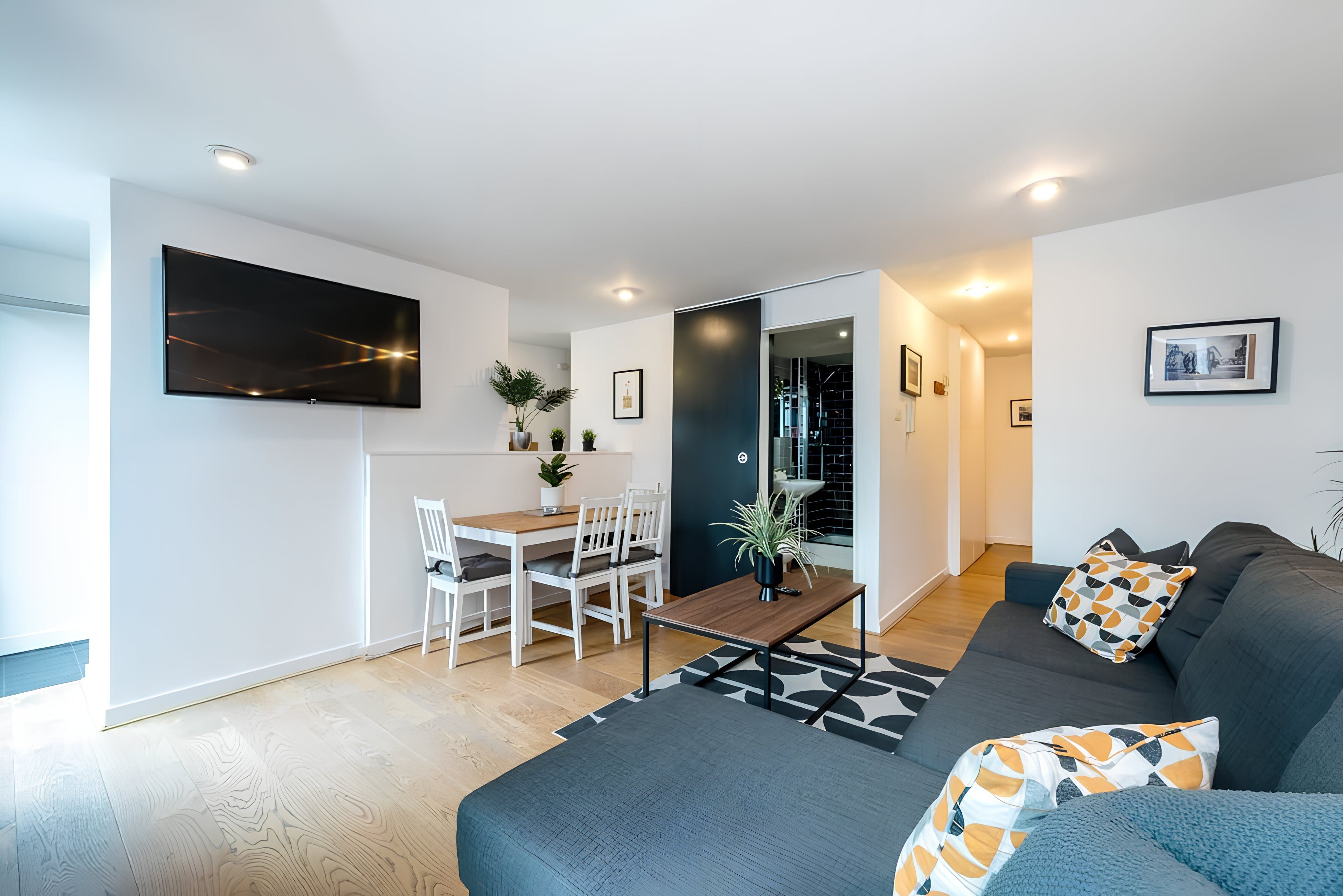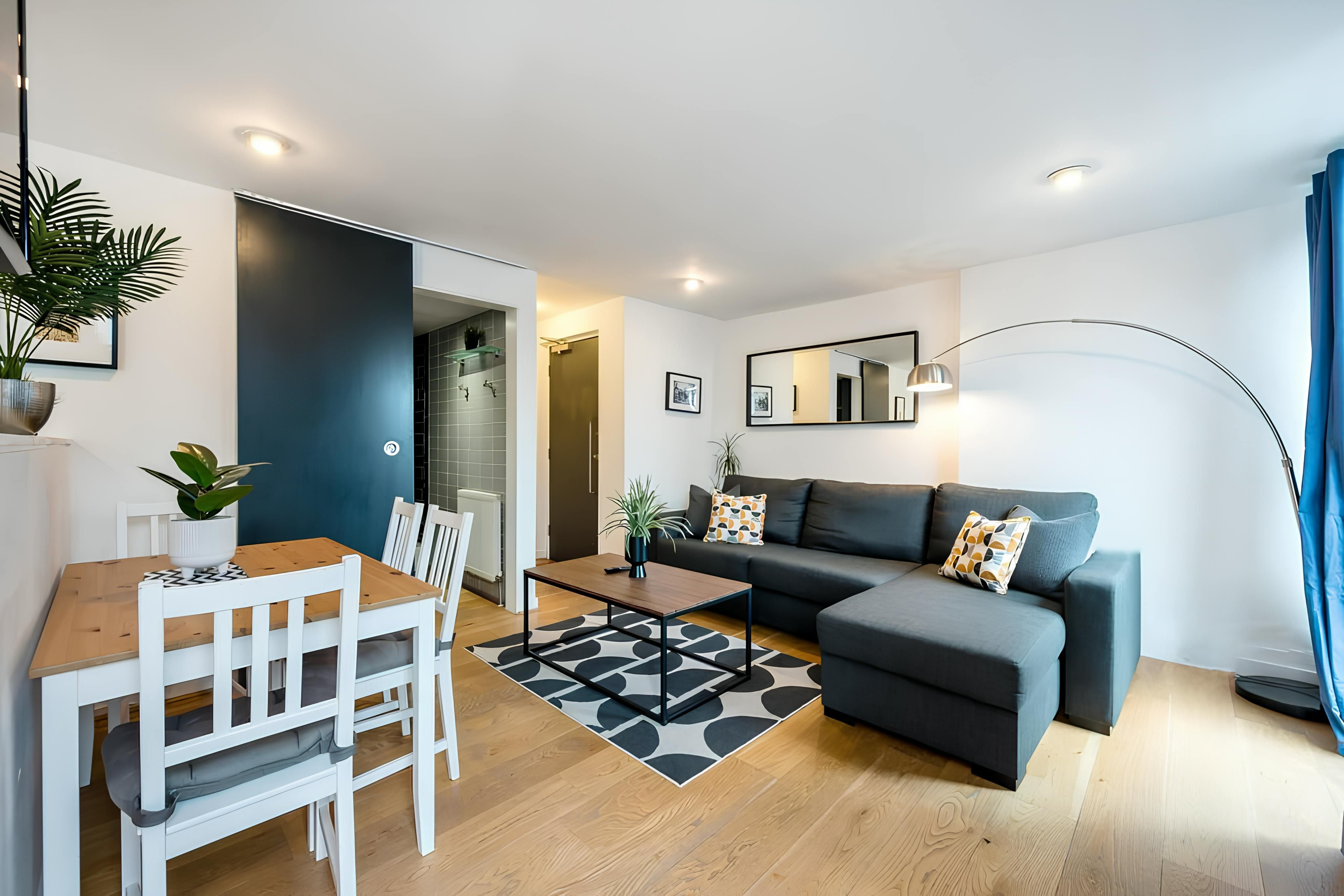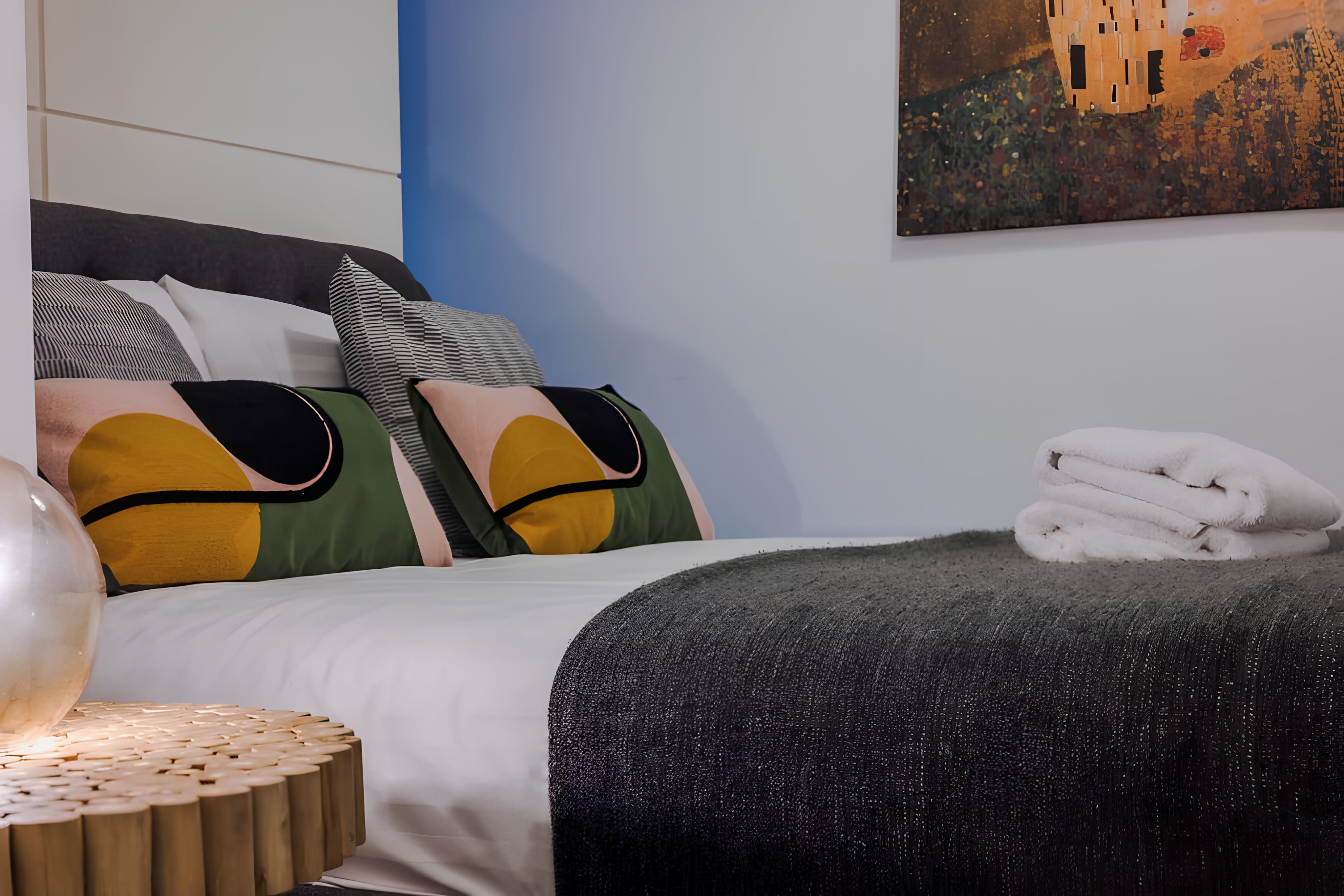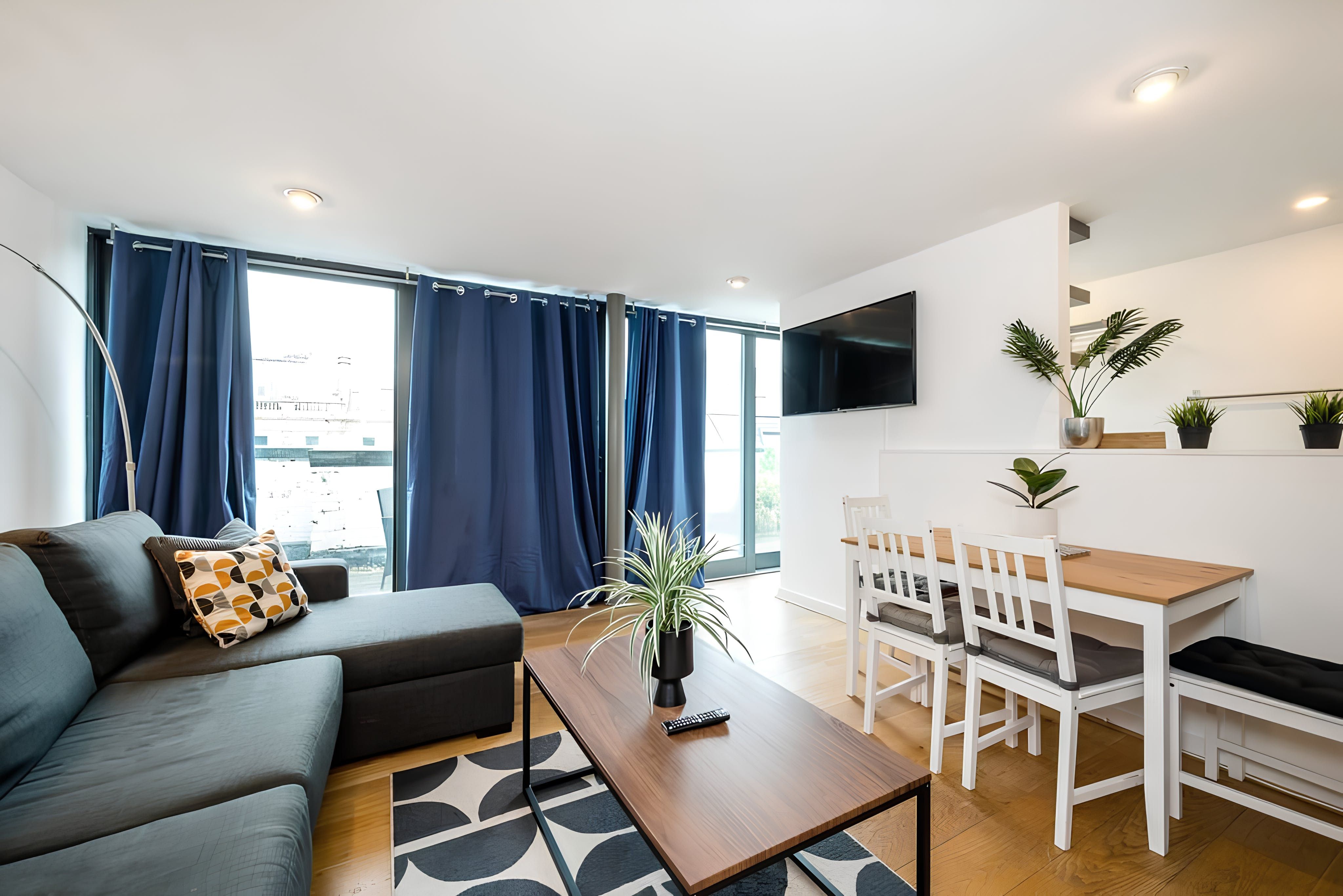 This modern and bright apartment is located in a quiet residential area of the city centre. The property offers plenty of natural light, thanks to the floor to ceiling windows running along one side of the property. There is also a private terrace with city scape views. The apartment is ideal for couples, business travellers or small family groups.