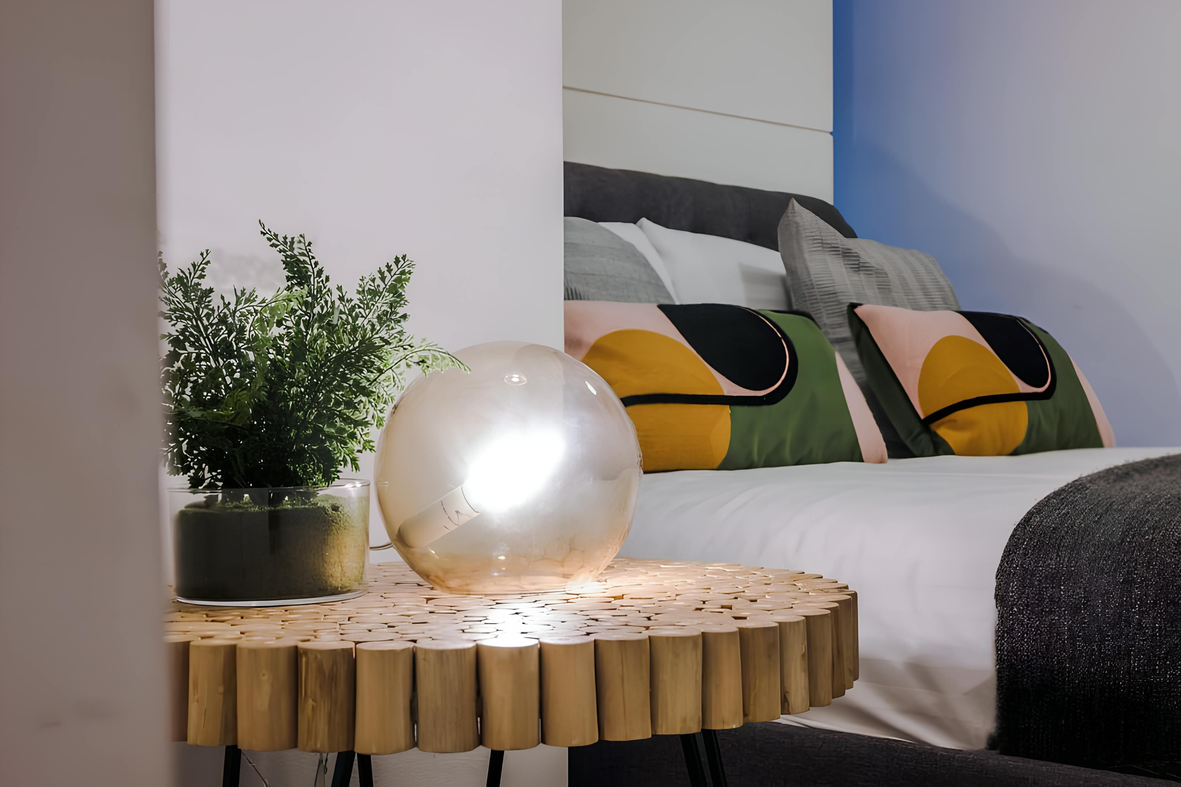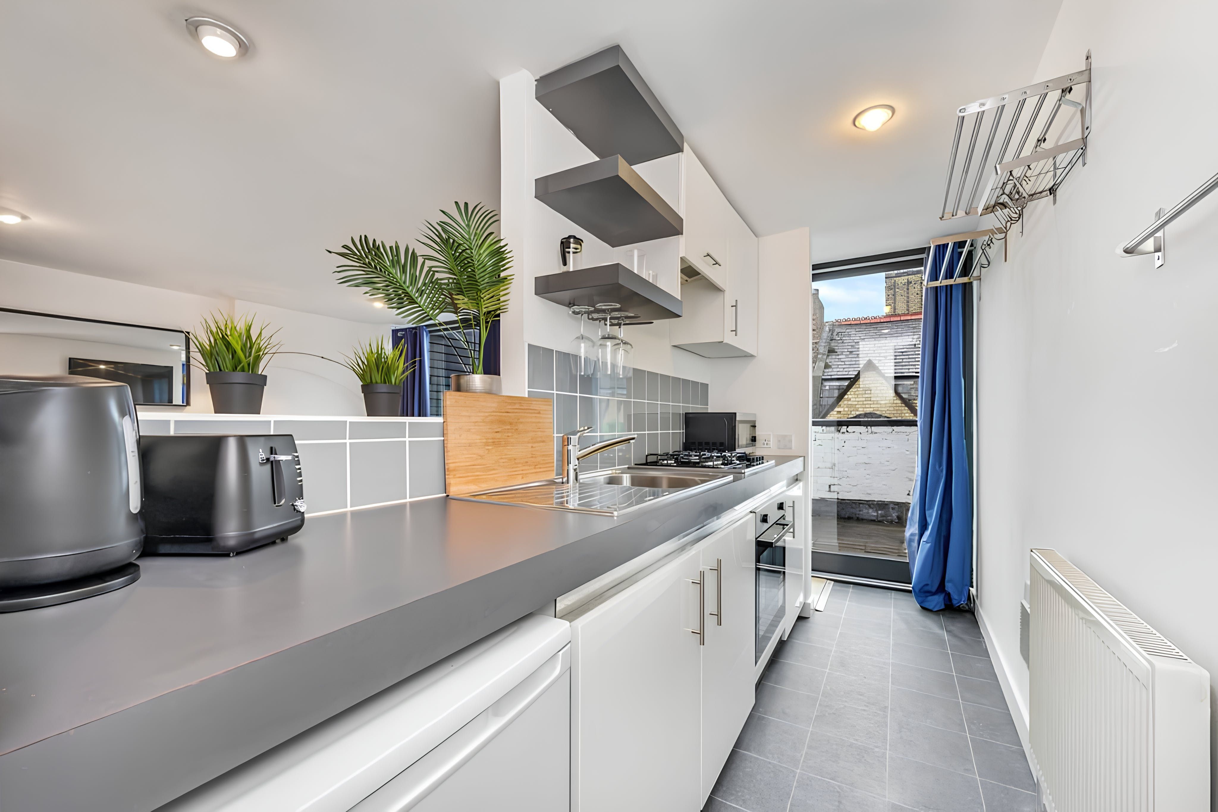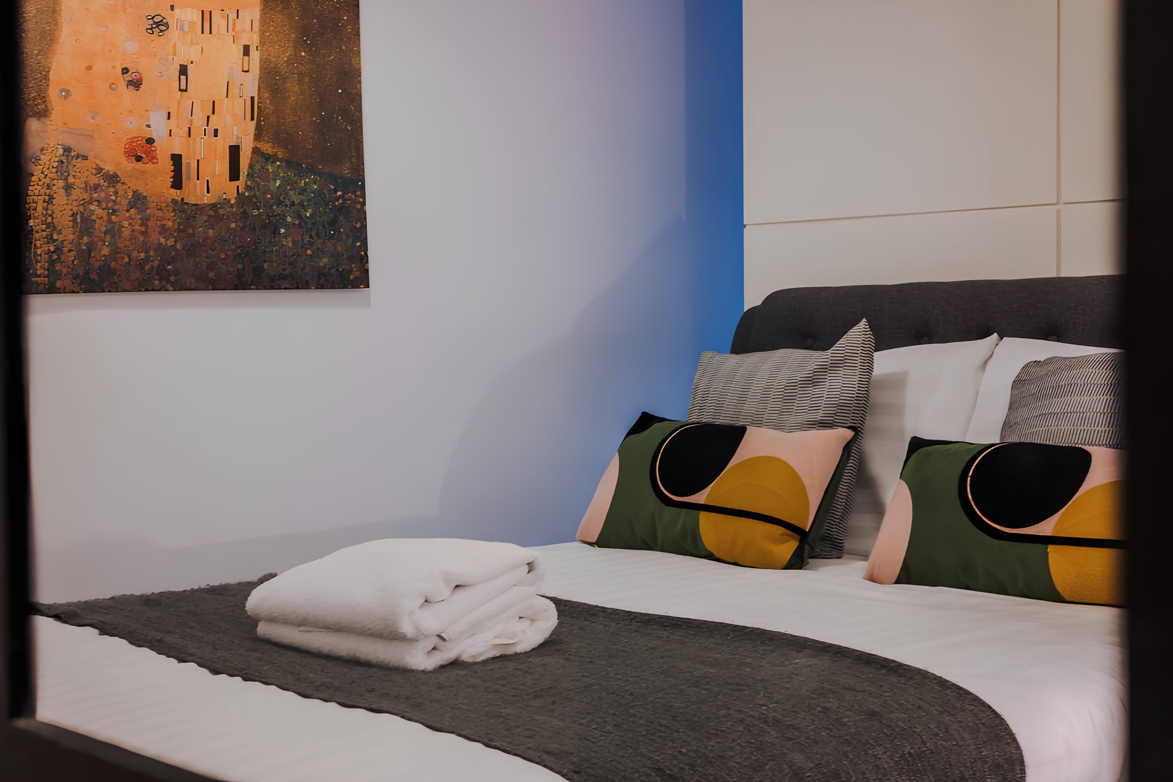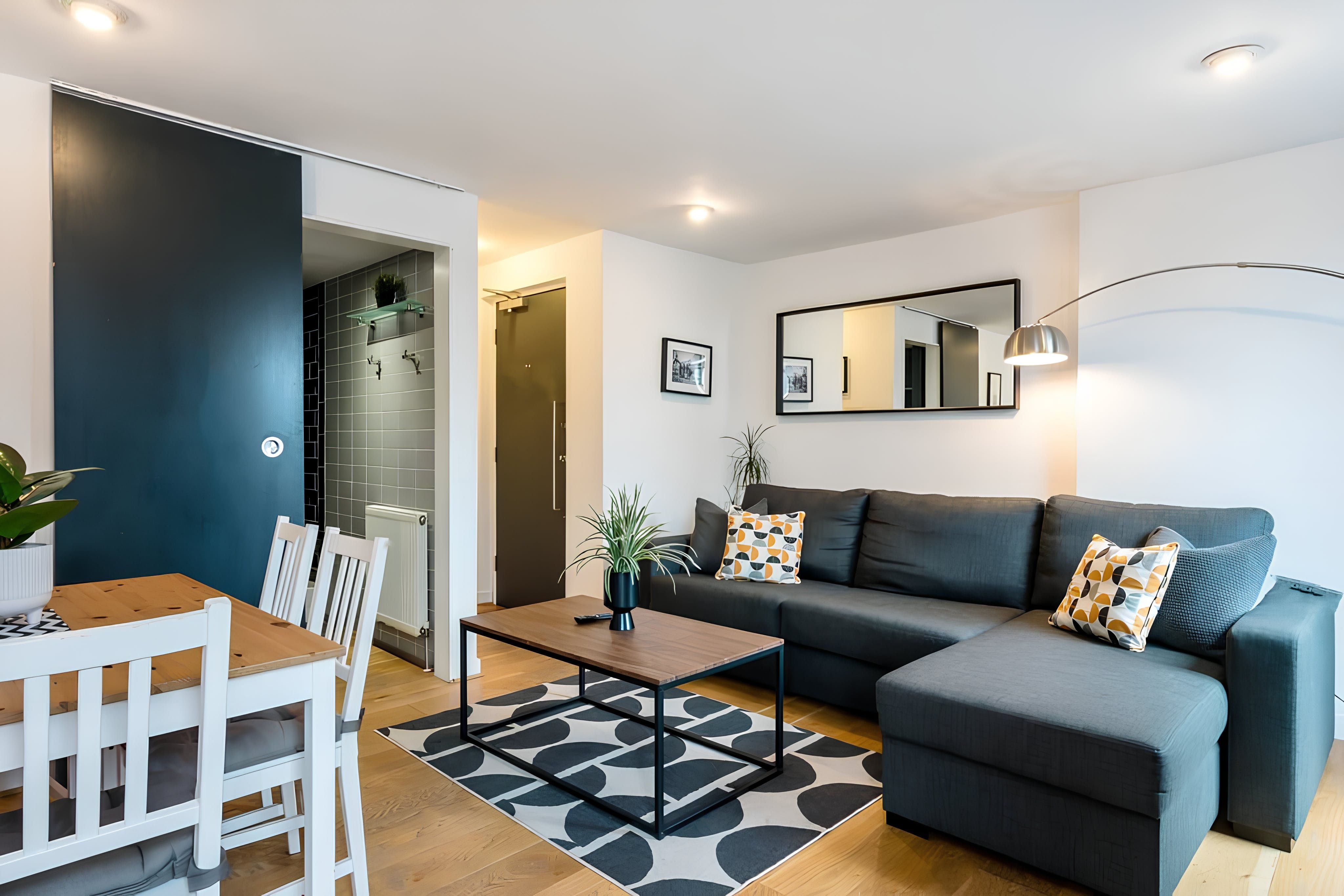 This modern and bright apartment is located in a quiet residential area of the city centre. The property offers plenty of natural light, thanks to the floor to ceiling windows running along one side of the property. There is also a private terrace with city scape views. The apartment is ideal for couples, business travellers or small family groups.
