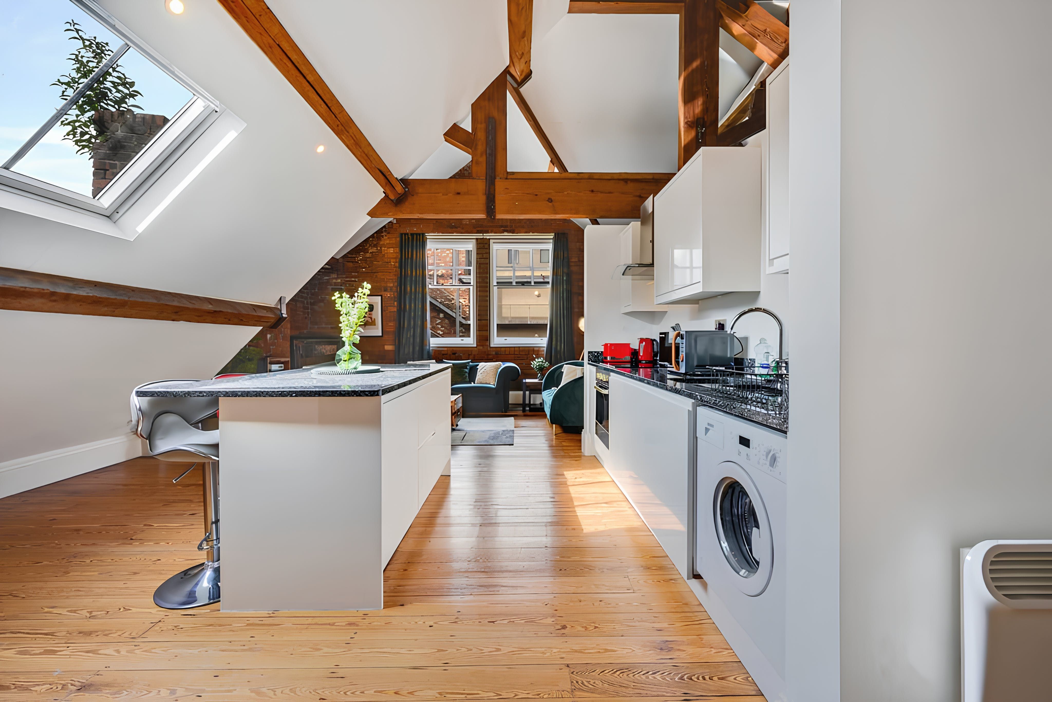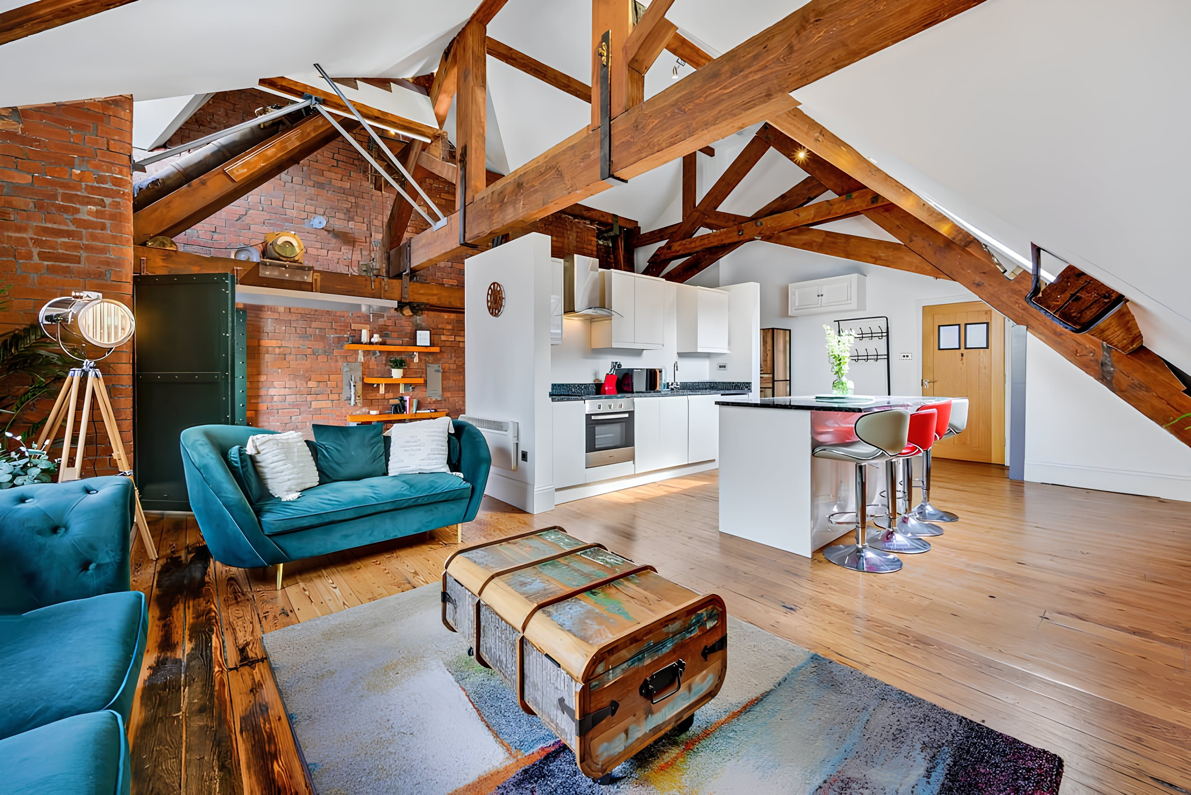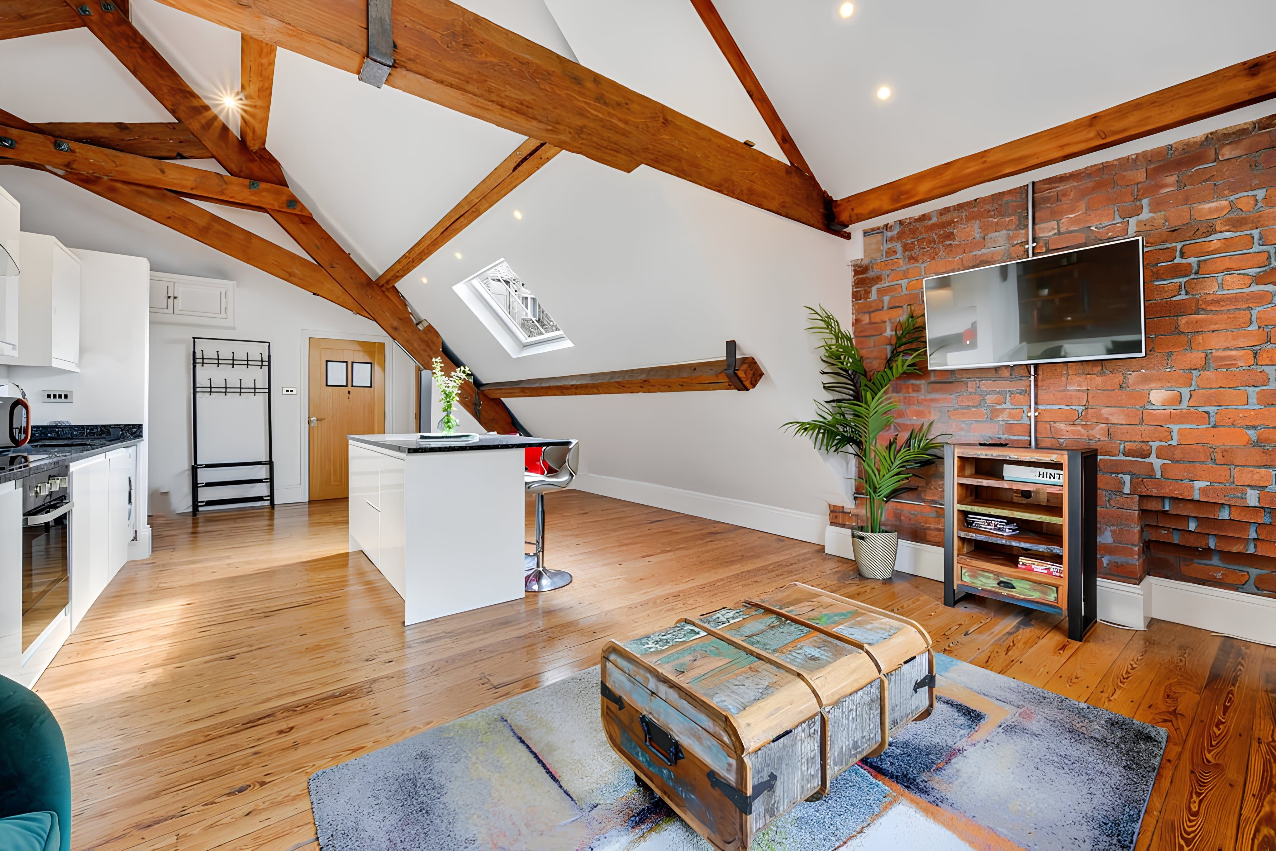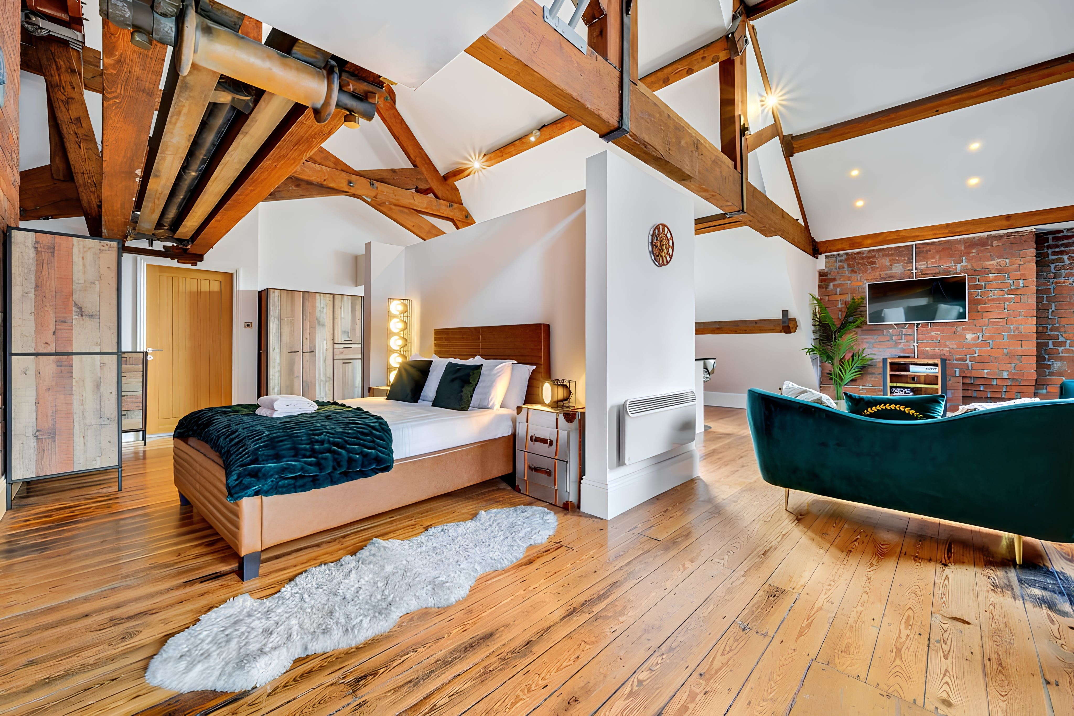 This is a cosy and stylish studio apartment located in the heart of Liverpool. The apartment has been converted from a former banana warehouse and features original wooden beams on the ceiling, exposed brickwork and wooden flooring. It is perfect for couples or solo travellers who want to be close to all the action.