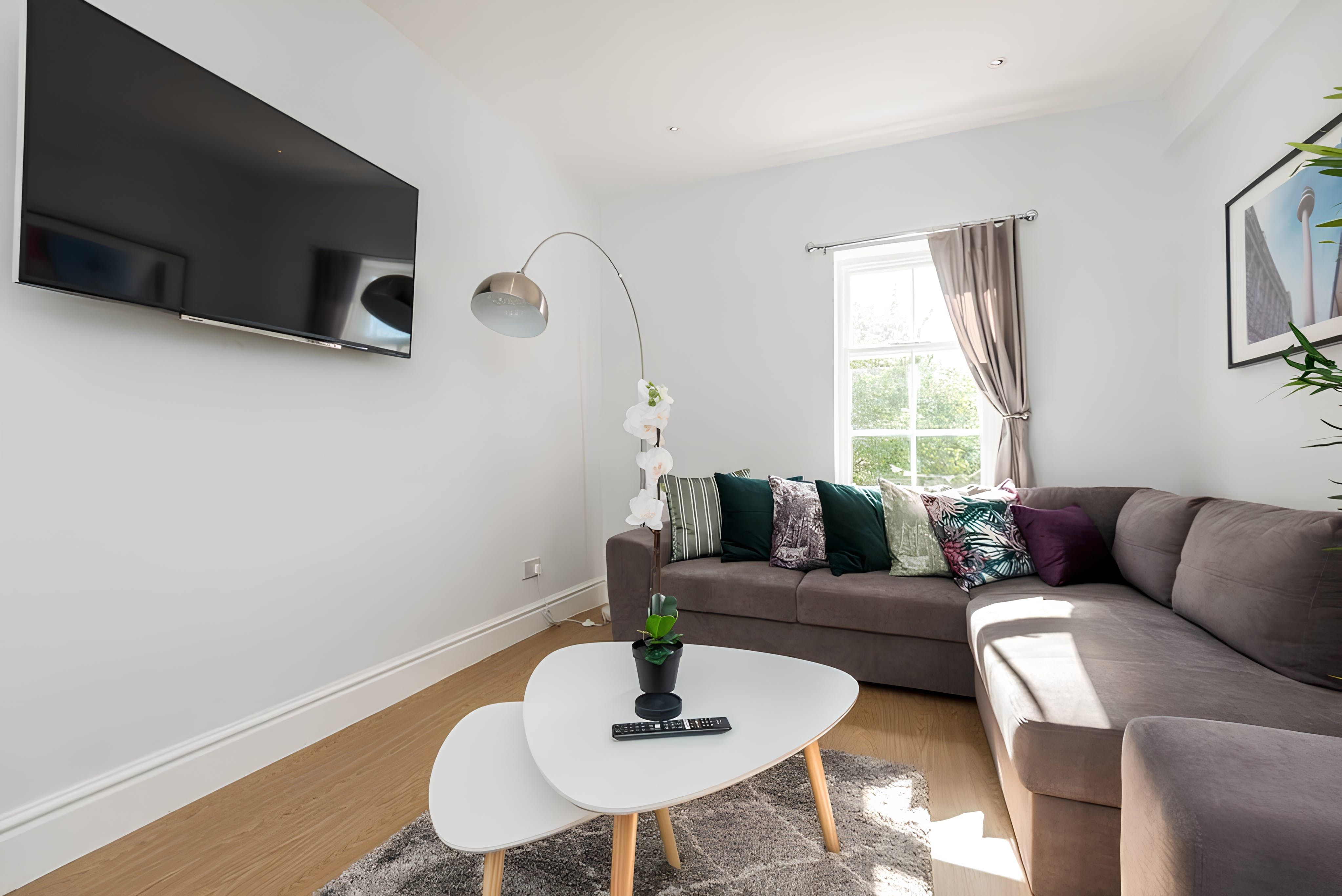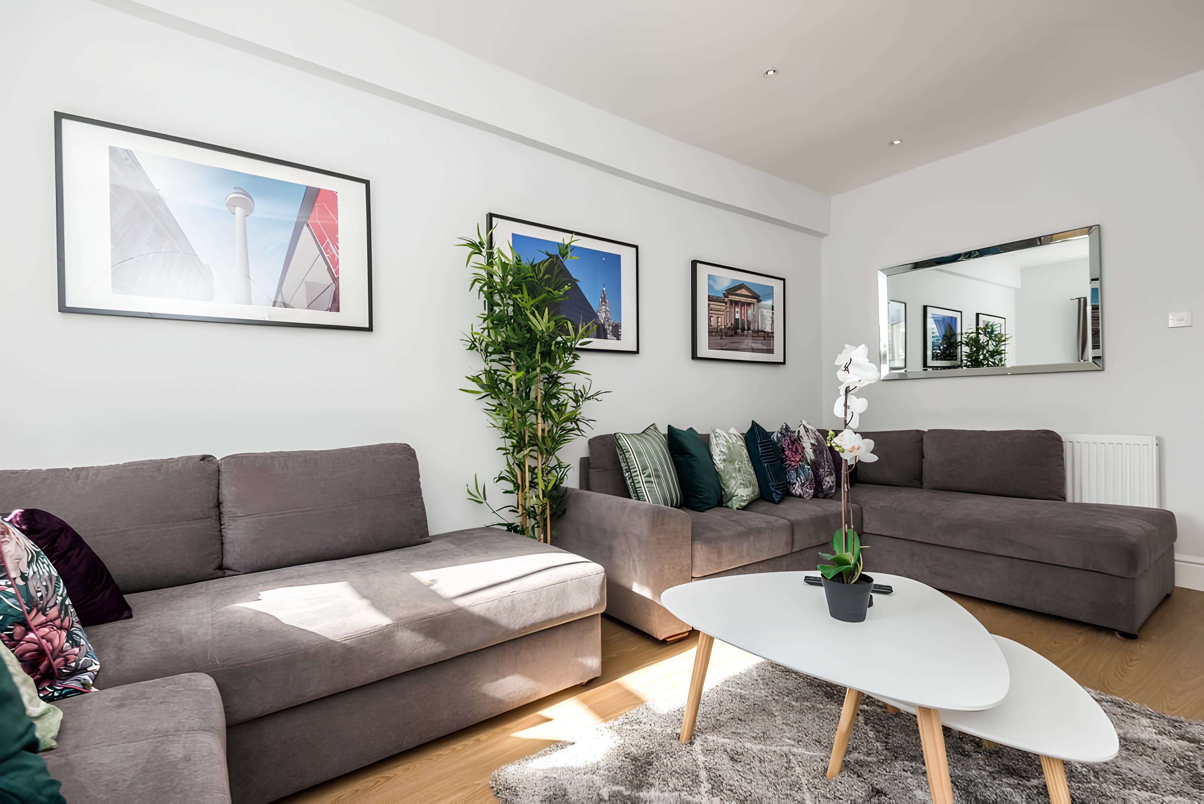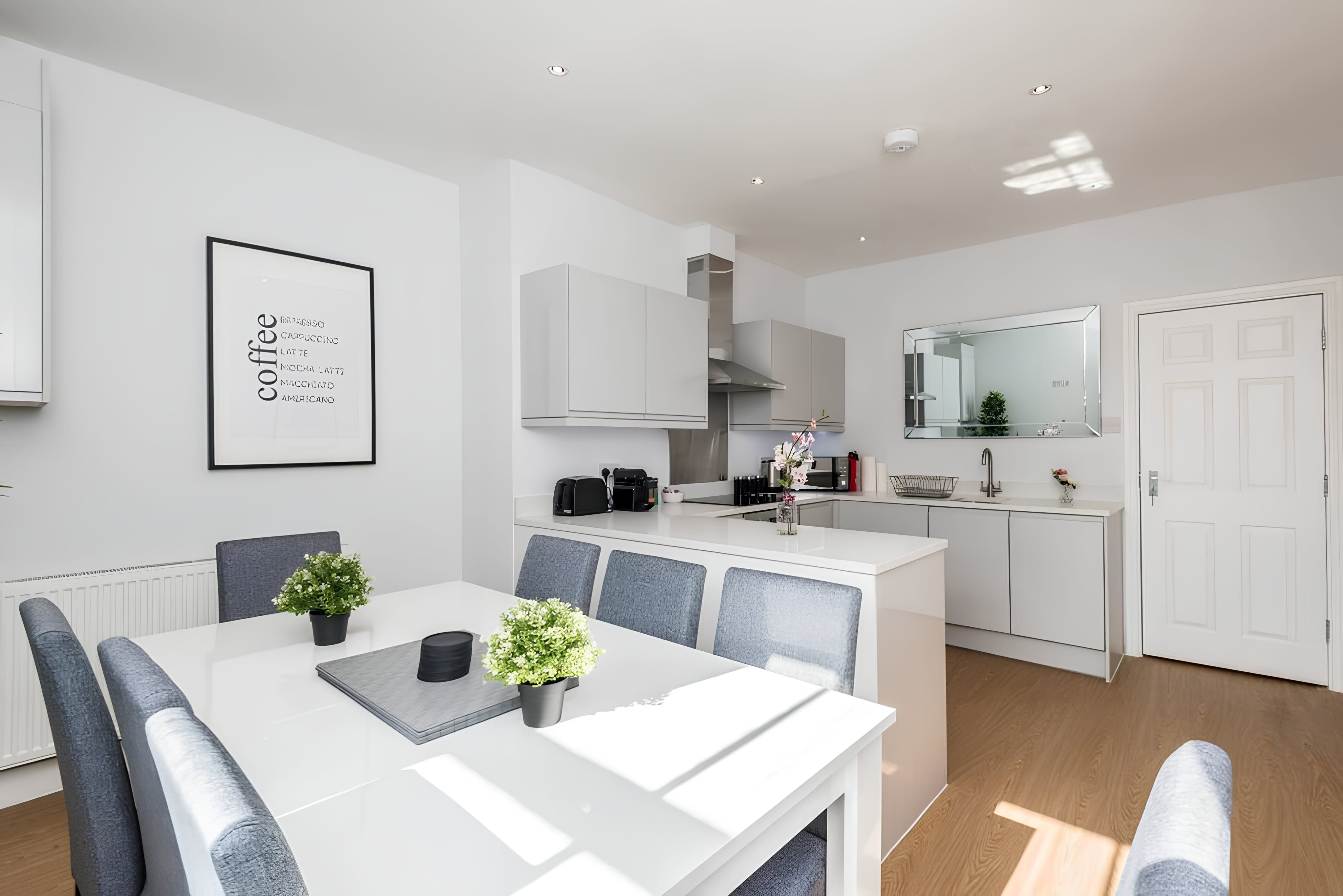 This elegant 5-bed apartment is the perfect place to stay for a family get-together or a quiet escape. The apartment is located in the Georgian Quarter of Liverpool, a beautiful and peaceful area. The apartment has 5 bedrooms, a fully equipped kitchen and dining area, and a comfortable living area.