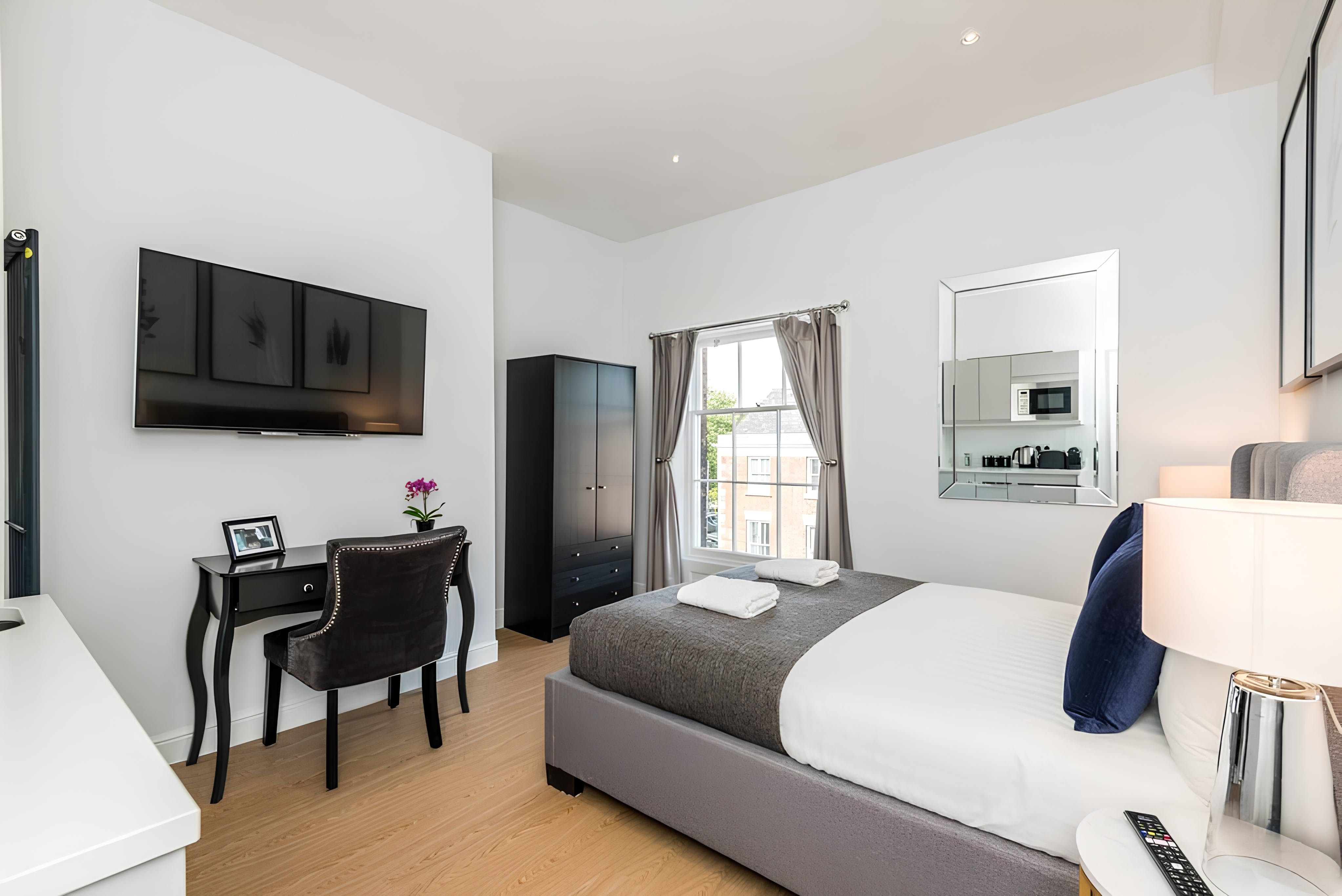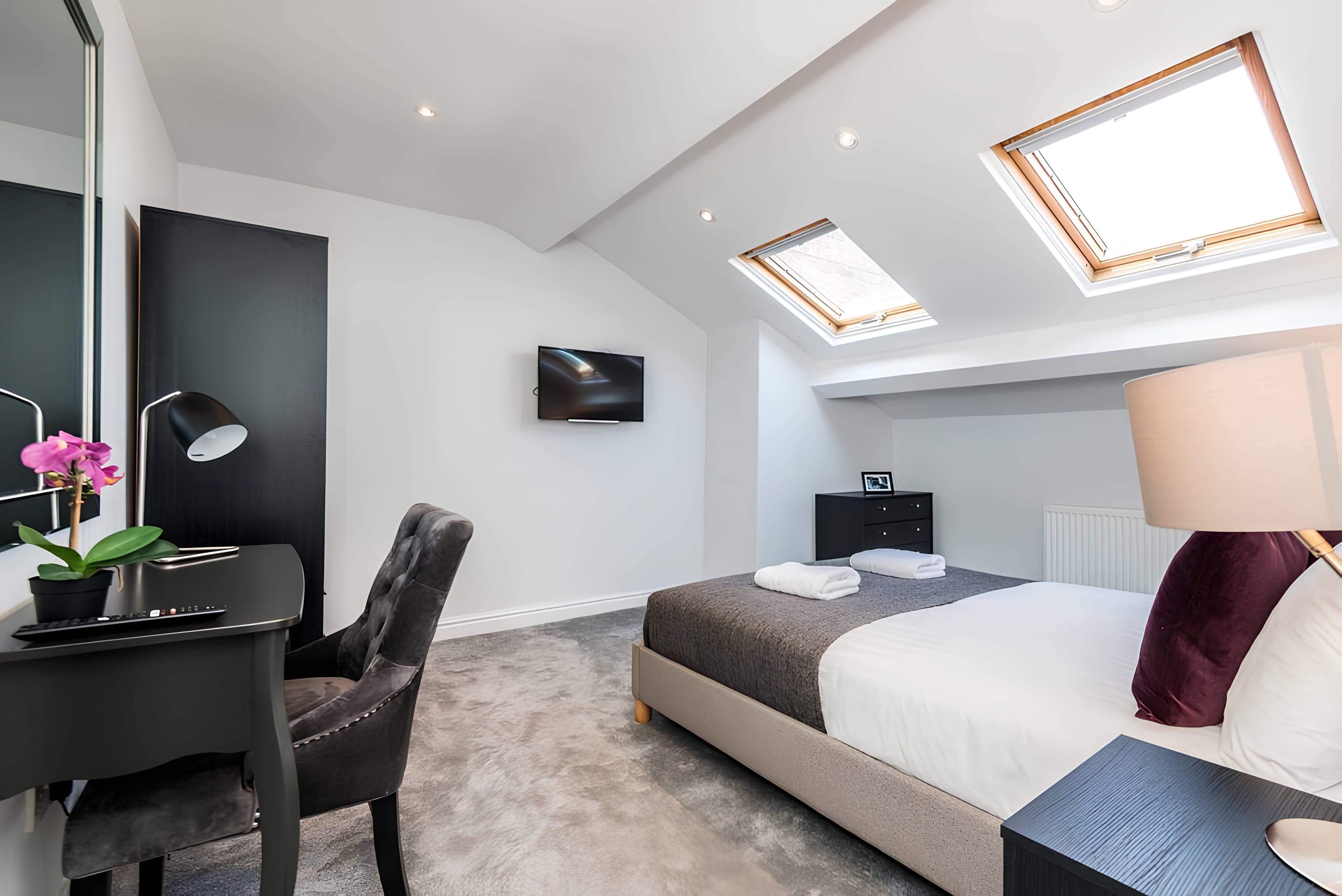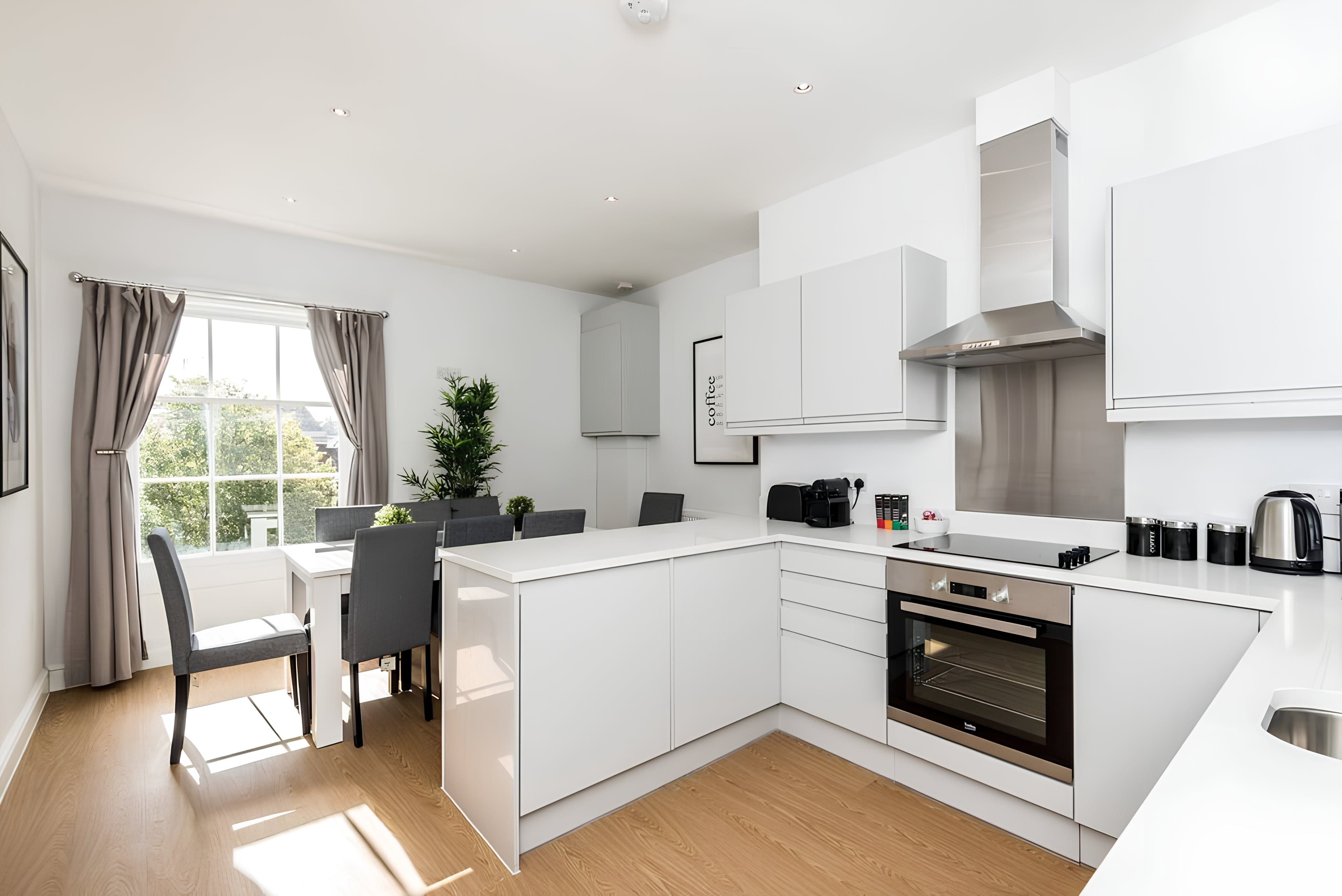 This elegant 5-bed apartment is the perfect place to stay for a family get-together or a quiet escape. The apartment is located in the Georgian Quarter of Liverpool, a beautiful and peaceful area. The apartment has 5 bedrooms, a fully equipped kitchen and dining area, and a comfortable living area.