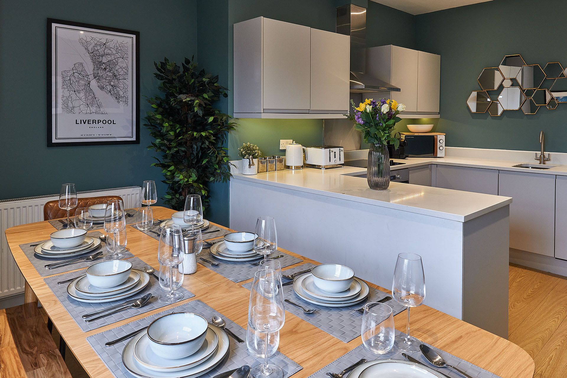 Set in a Georgian-style home in Liverpool’s Georgian Quarter, this apartment puts you in the heart of the city’s historic and cultural scene. You’re surrounded by beautiful old buildings and are just a short walk from the cathedral, Philharmonic Hall, and all the bars and restaurants along Hope Street. Inside, the colourful rooms are spread across two floors, with space to lounge and eat. One of the bedrooms has its own kitchenette for guests wanting extra independence. You'll need to climb stairs to reach the apartment on the top floor, and at full capacity, four guests will sleep on sofa beds in the living area. But the views and the location make it worth it.