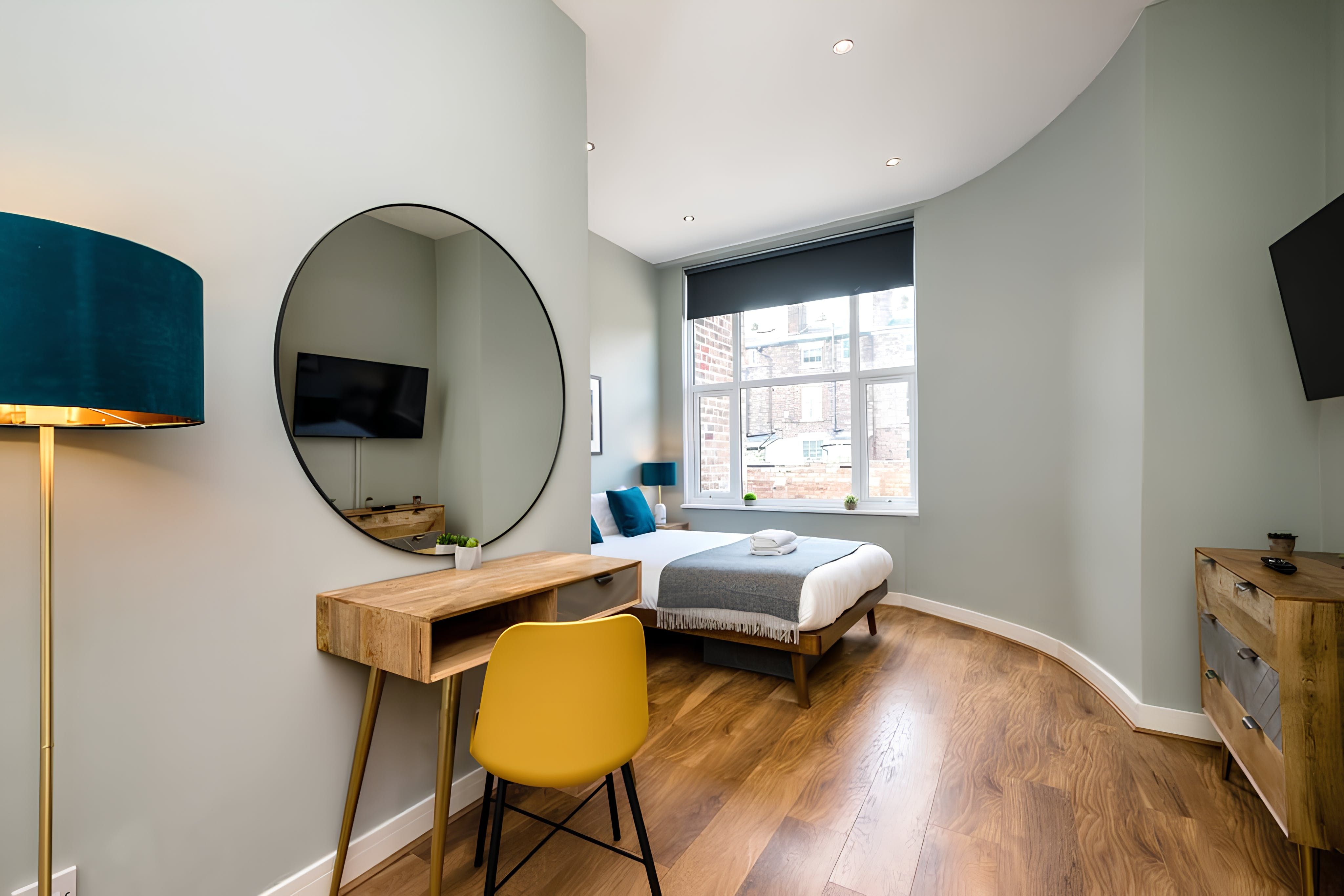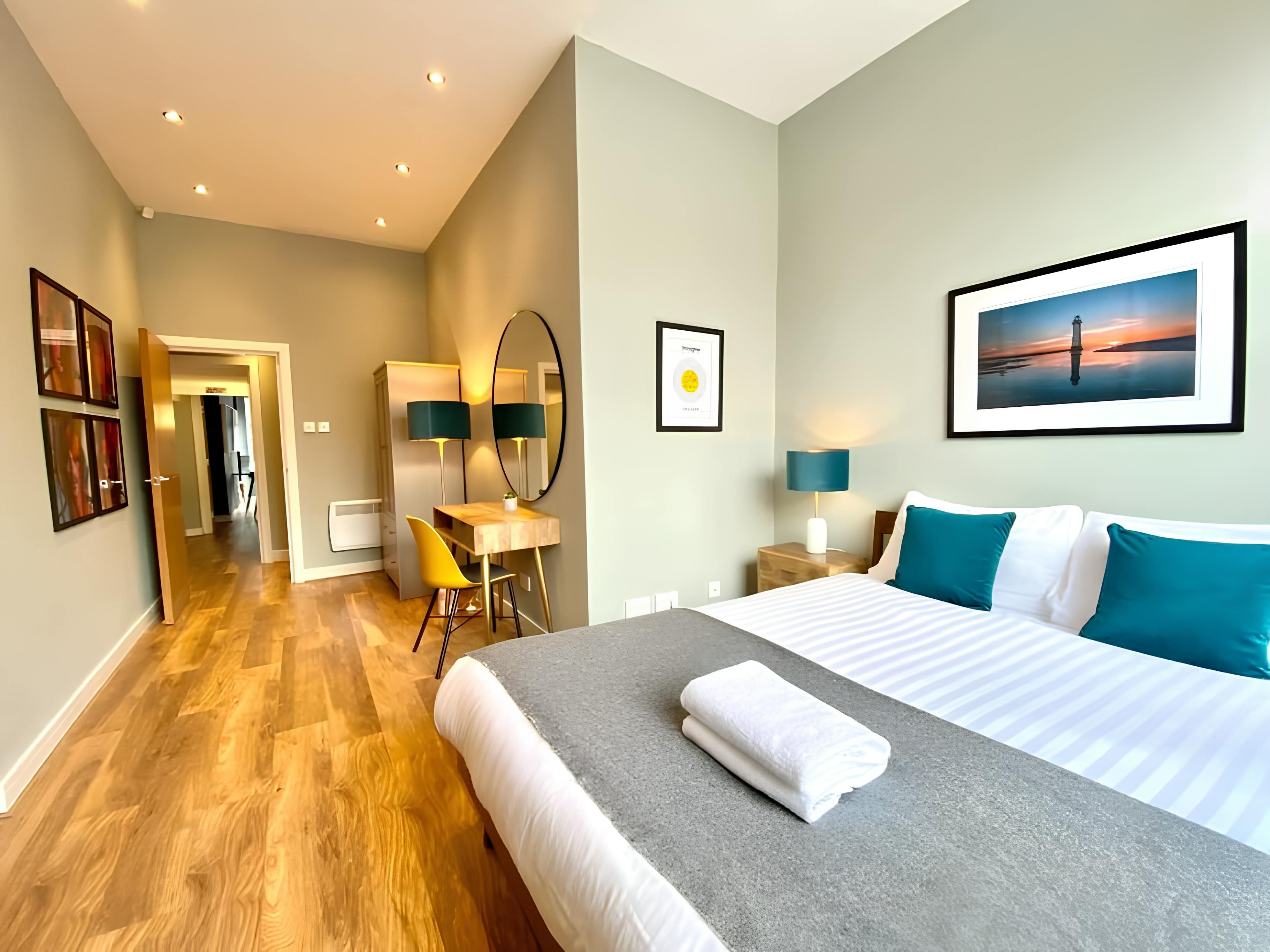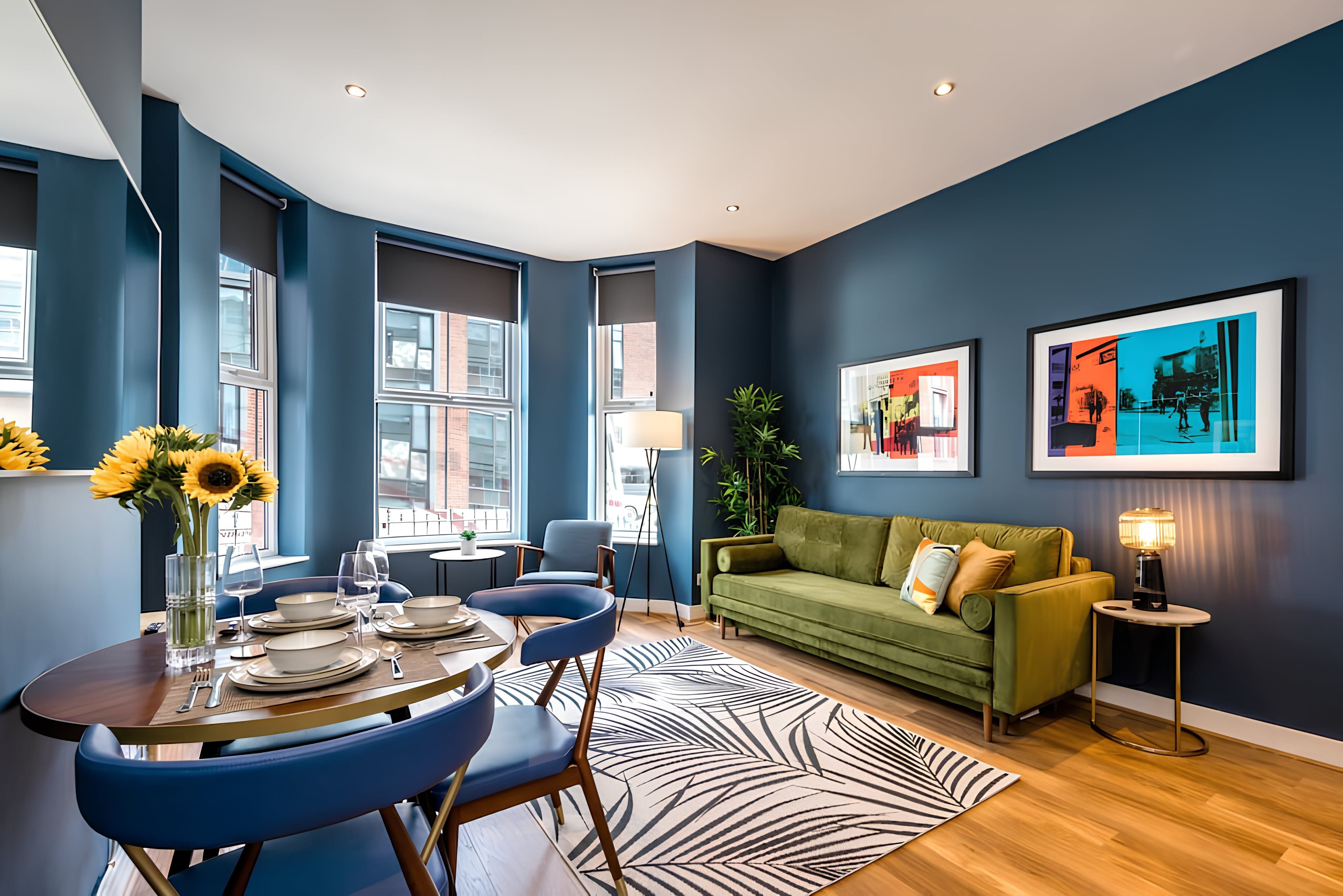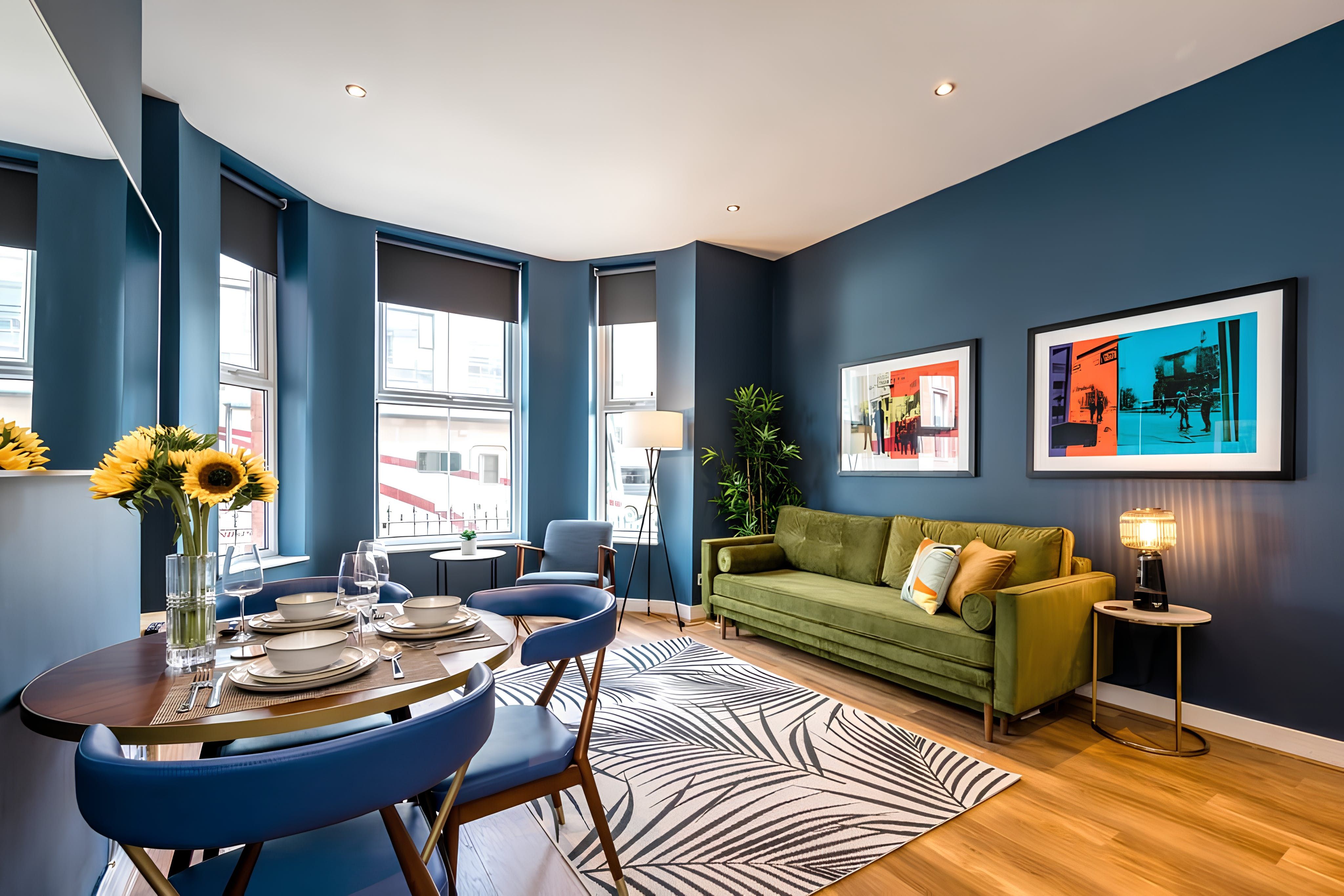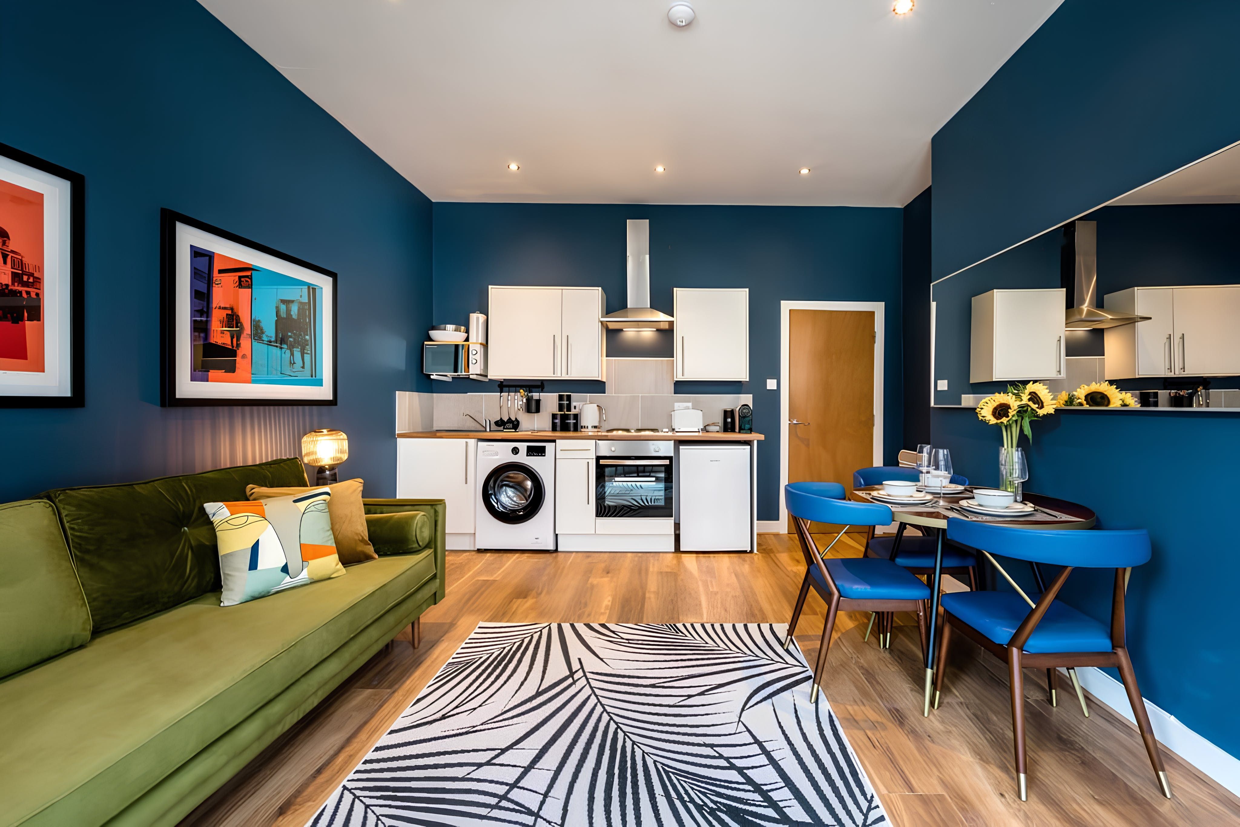 This is a beautiful apartment in Liverpool's iconic Georgian Quarter. The apartment is perfect for couples or small families looking to explore the city or visit family and friends. The apartment features a double sofa bed in the living area, a well-equipped kitchen, and a comfortable living area to relax and recoup.