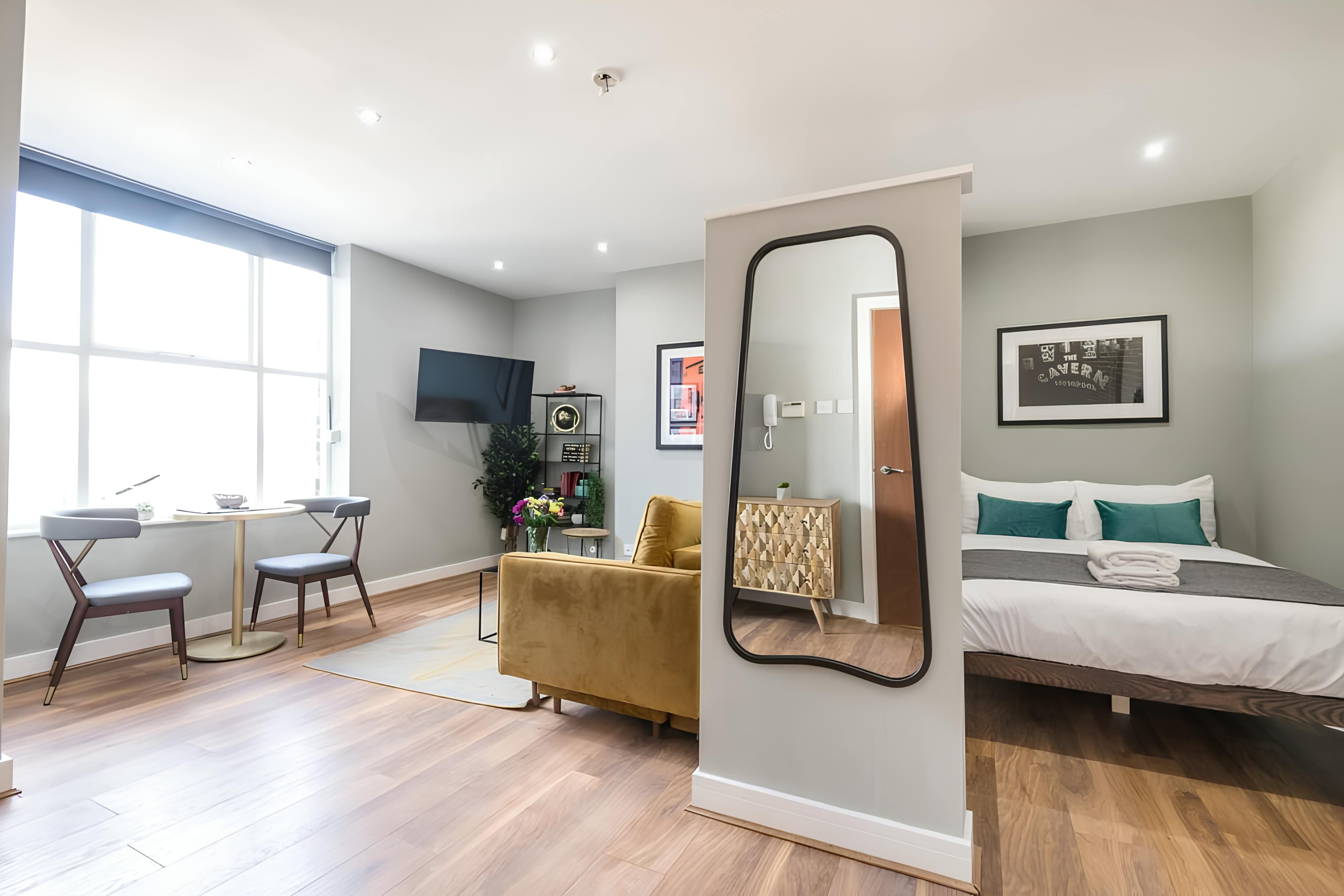 Liverpool's Georgian Quarter is one of the city's most picturesque neighbourhoods, home to cobbled streets, 18th-century architecture, and two dazzling cathedrals. Despite being nestled in a scenic enclave, this studio-style apartment is only a short walk from nightlife, restaurants, and shops in the city centre. Although it's on the second floor and requires four flights of stairs, we think you'll like what's in store. The open-plan layout makes it easy to unwind after your adventures. A table in the window seats two, while the sofa doubles up as a bed if needed. It’s an ideal base for a pair exploring Liverpool.