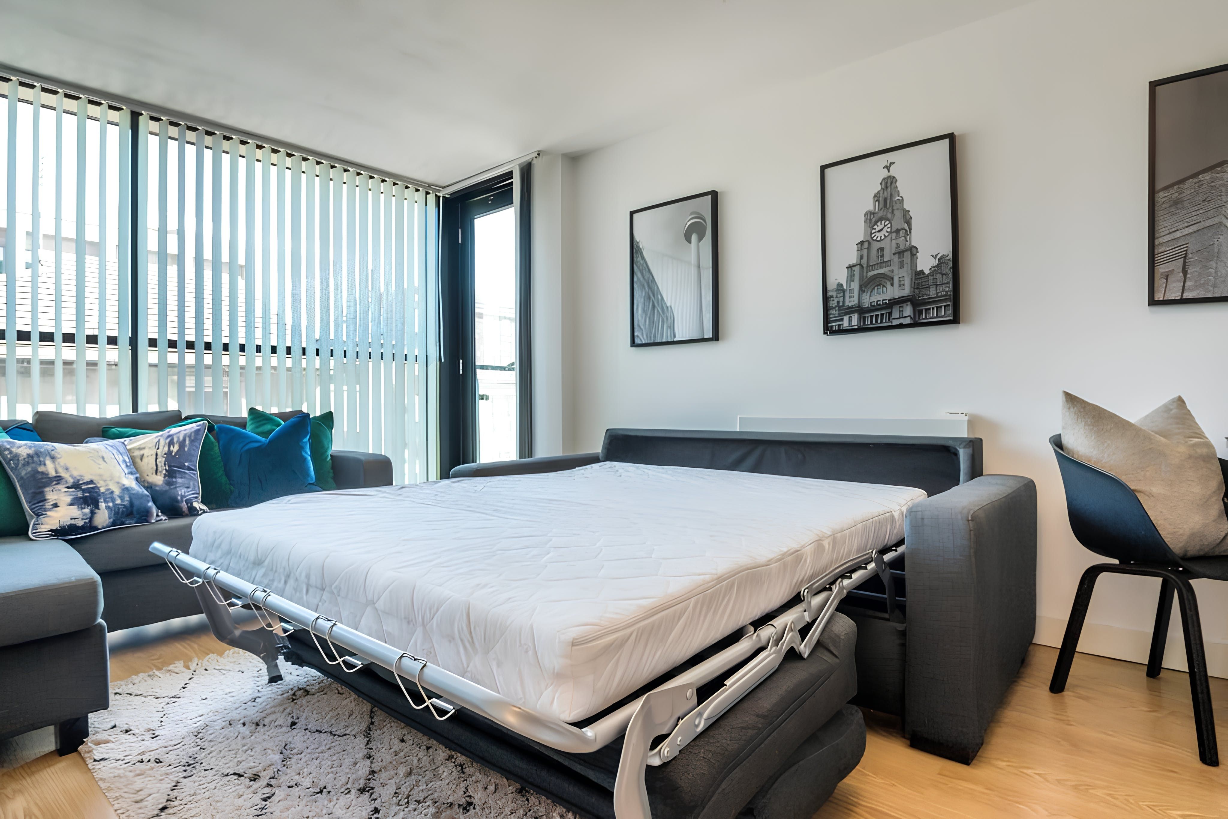 In the heart of Liverpool city centre, this apartment couldn't be a better base for exploring. From the Beatles and nightlife to excellent shopping, there's something for everyone here. We love the small balcony, where you can start your day with a cup of coffee. The lounge is bright and contemporary, while both bedrooms are cosy. Keep in mind that three guests will sleep on sofa beds – one is in the lounge and another in the main bedroom – but if you're looking for a convenient spot close to all the attractions, we think it will do nicely.