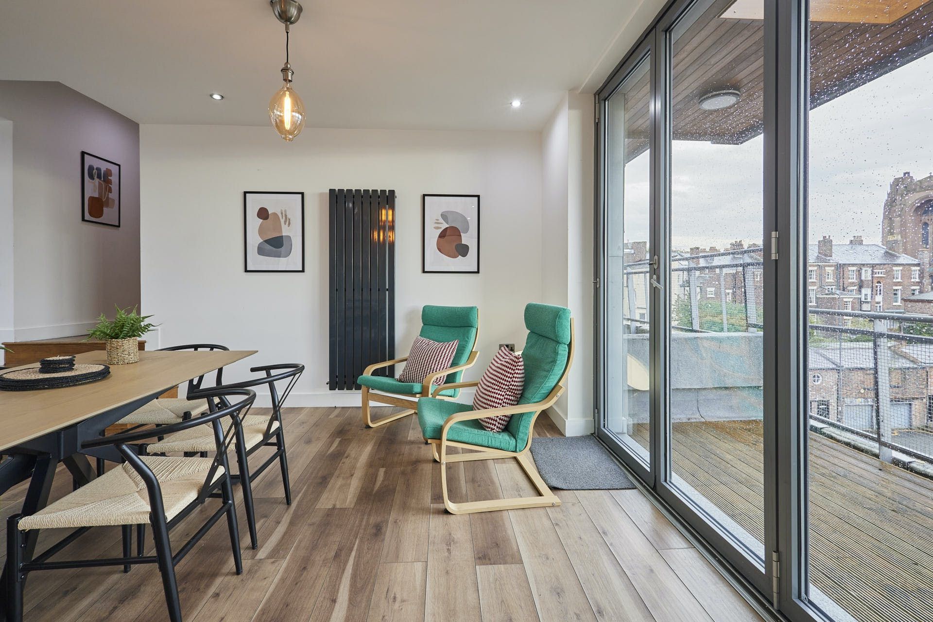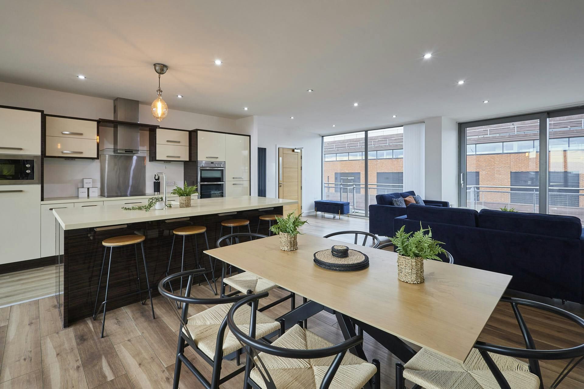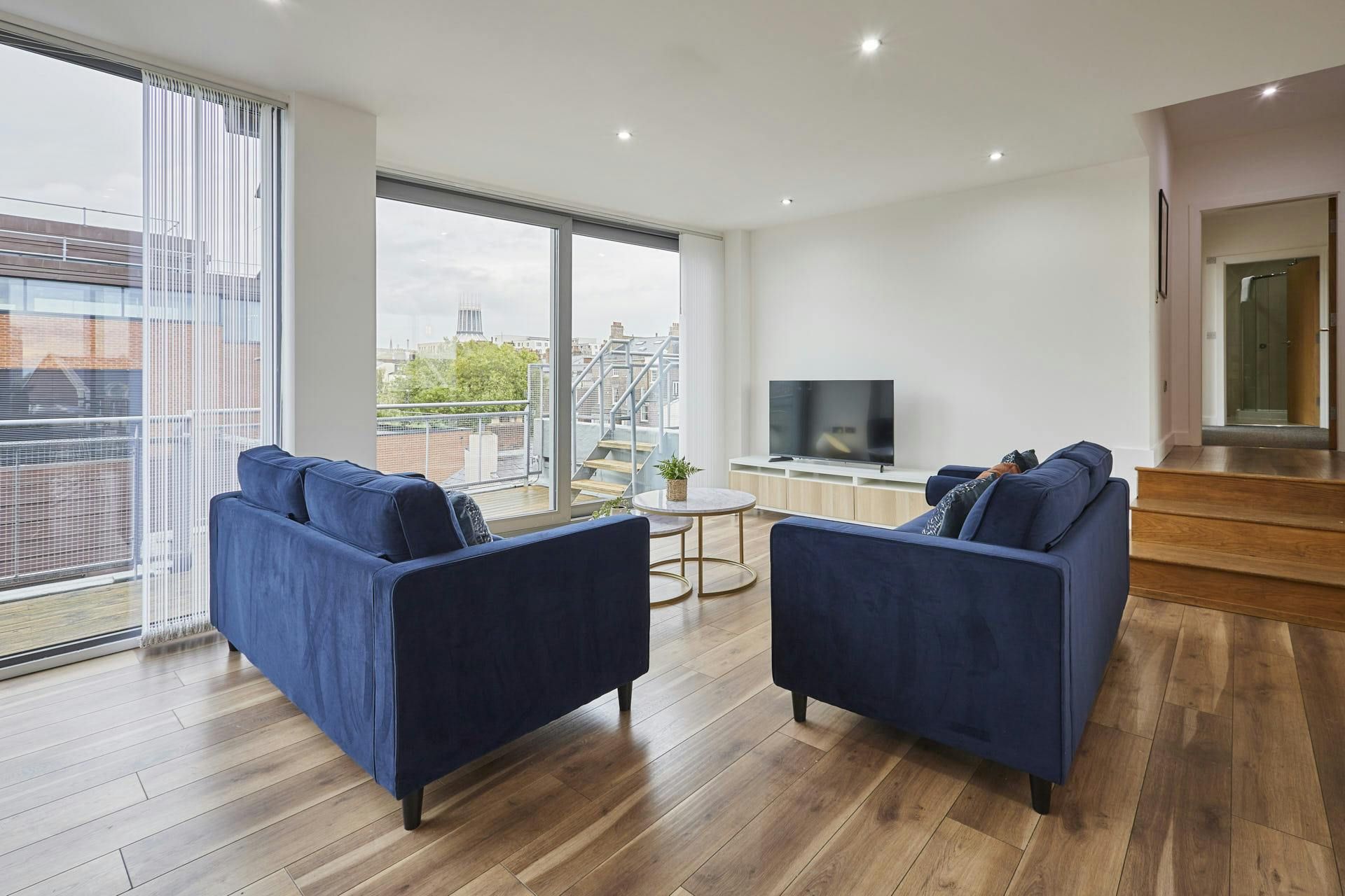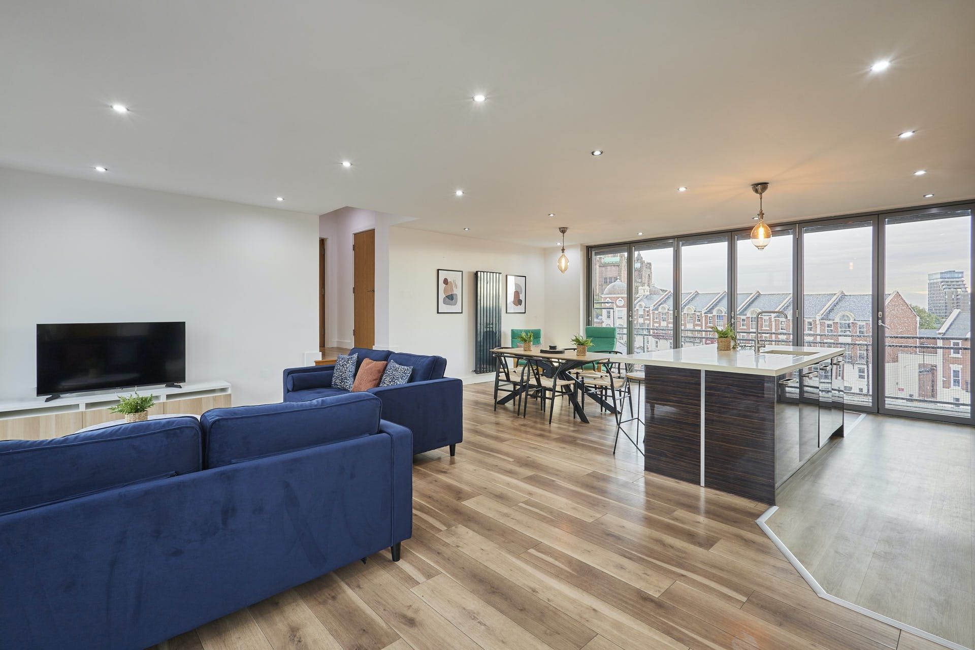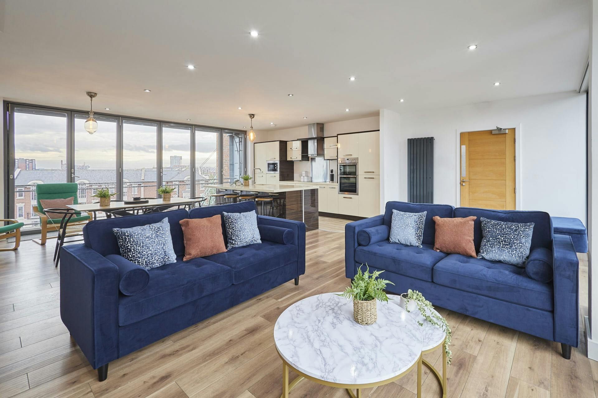 This modern and stylish penthouse is the perfect place to relax and explore Liverpool. The open plan living, dining and kitchen area is ideal for entertaining guests, while the three bedrooms provide plenty of space for a family or group of friends. The balcony offers stunning views of the city and the Cathedral, and the location is just a short walk from all of Liverpool's central attractions.