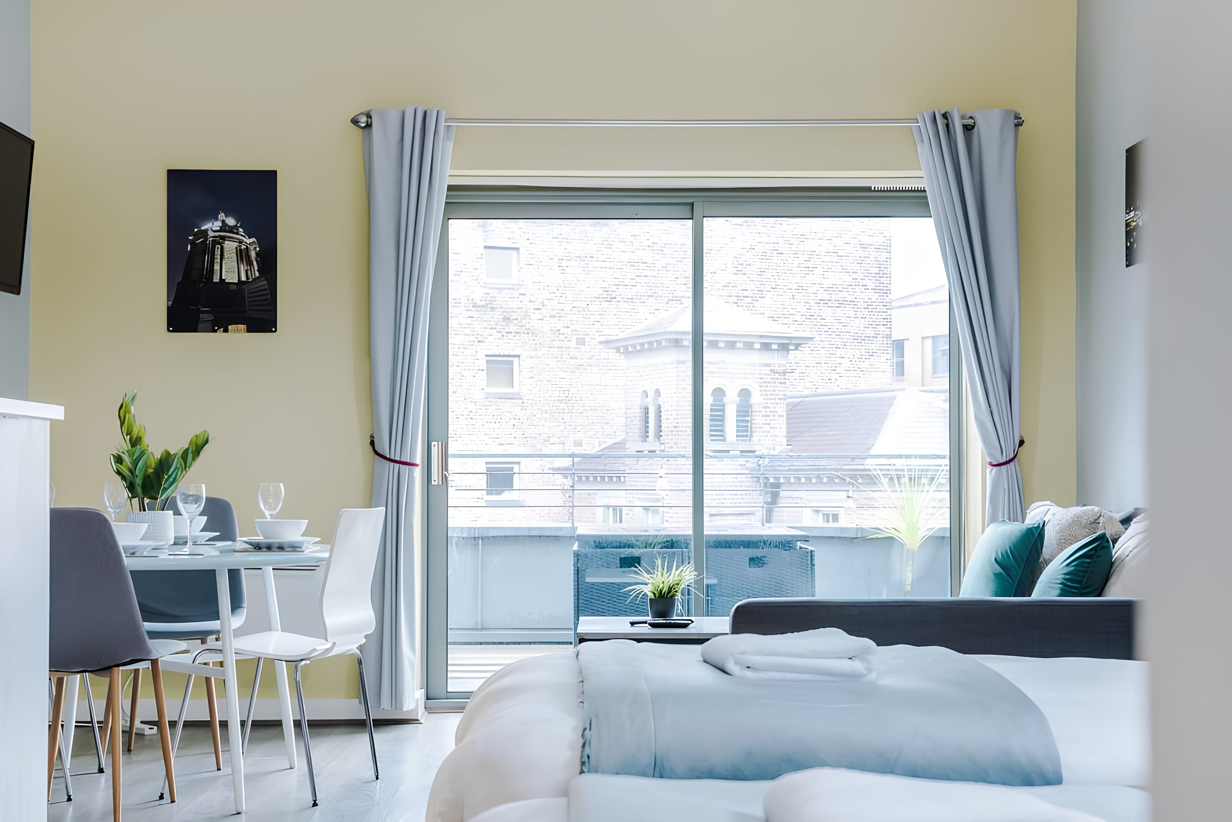 This cosy apartment is perfect for couples or families looking for a central location in Liverpool. Just a short walk from Liverpool One, the property boasts a spacious balcony overlooking the quaint Campbell Sq. The apartment has 1 cosy bedroom with a king size bed and a great shared space sleeping 2 guests.