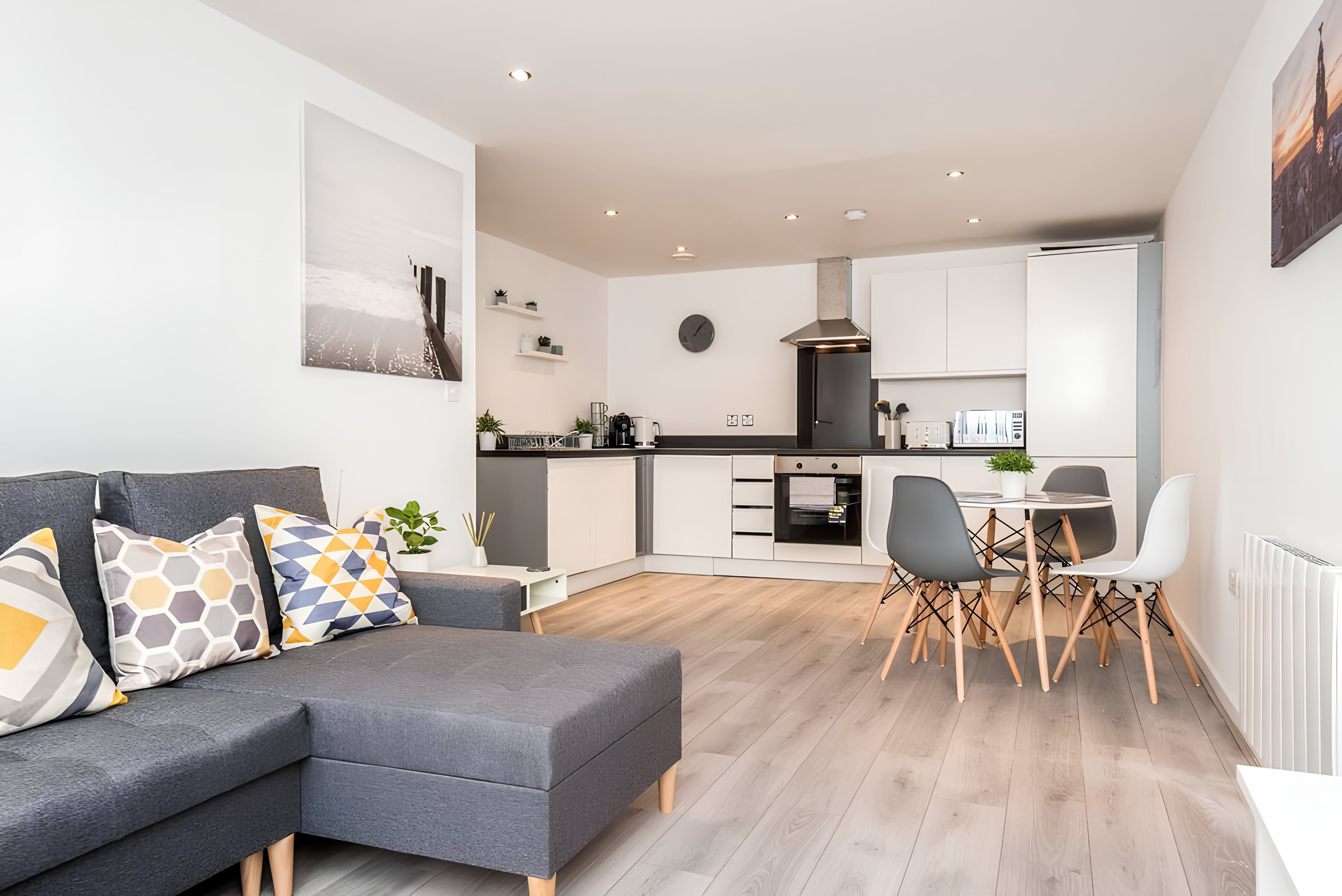 This modern apartment is the perfect base for exploring the city of Liverpool. It is located in the heart of the city centre, just a short walk from Liverpool One shopping district, Liverpool Lime Street train station and a whole host of fantastic restaurants, bars and shops. The apartment boasts a sleek open plan living/dining area and two spacious bedrooms.