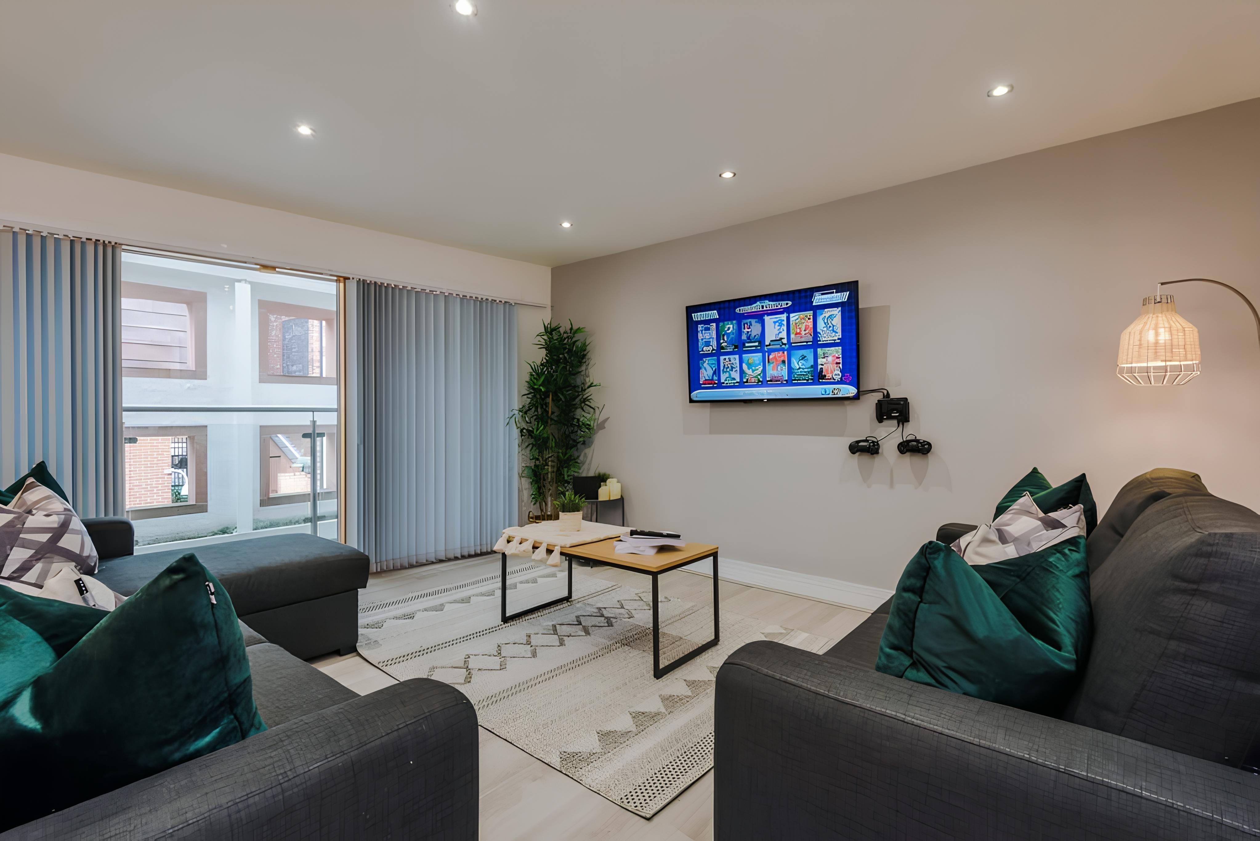 This spacious two bedroom apartment is the perfect homely base for those looking to explore Liverpool. The apartment is located in the heart of the city centre, just a short walk from the historic Bombed Out Church and the Georgian Quarter. Liverpool One and the beautiful Waterfront are only a 10 minute walk away. The apartment has everything you need for a comfortable stay, including a fully equipped kitchen, a washer and dryer, and a free WiFi connection. There is also a large selection of board games and a legendary mini-SEGA mega drive with over 40 classic games, making it the perfect base for families too!