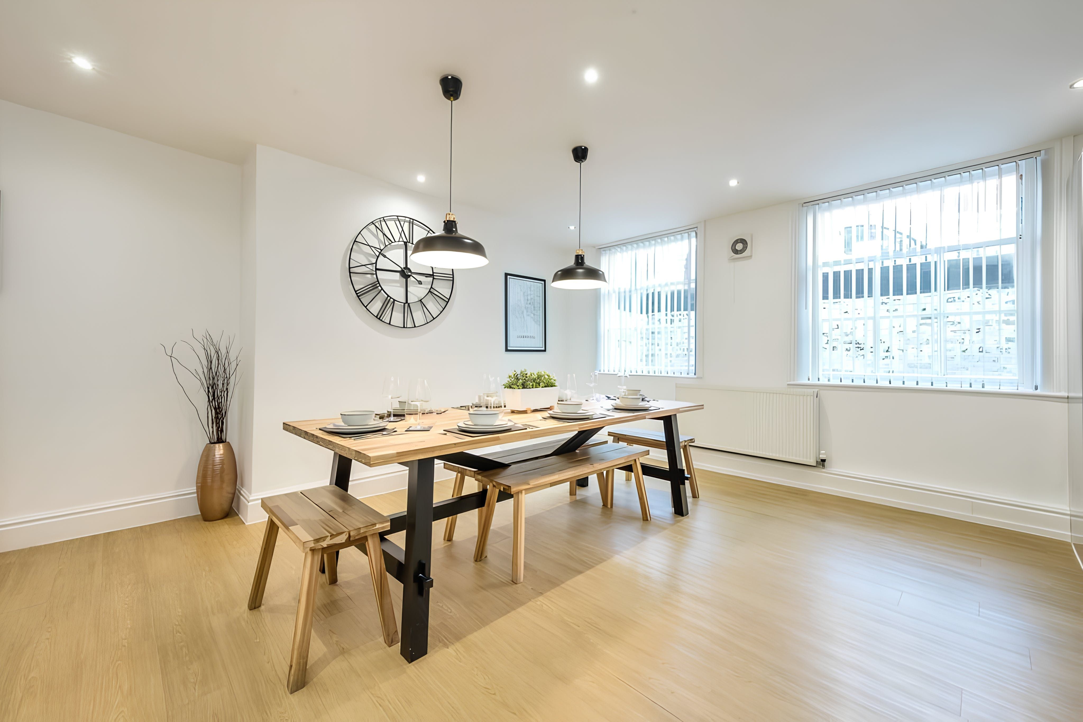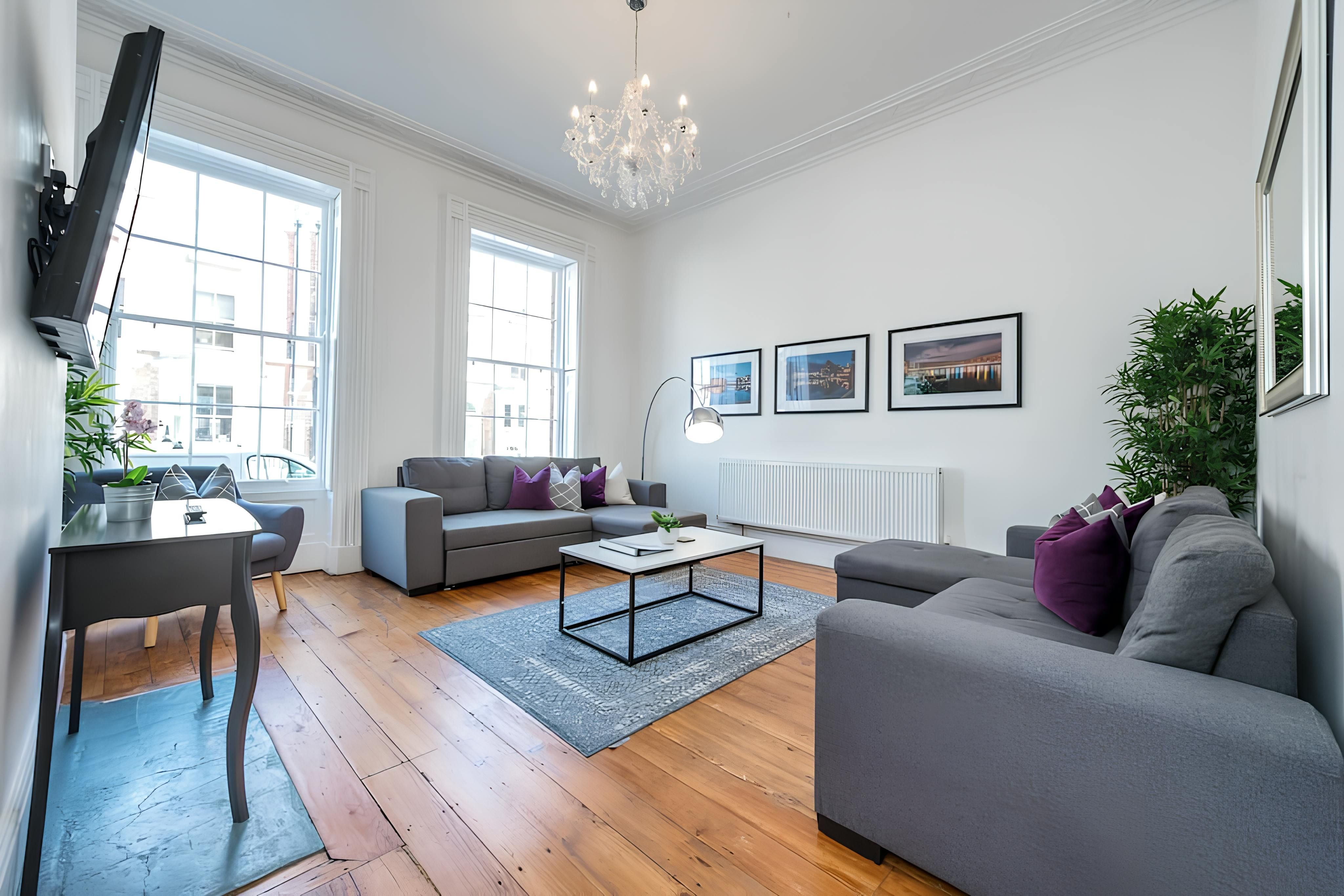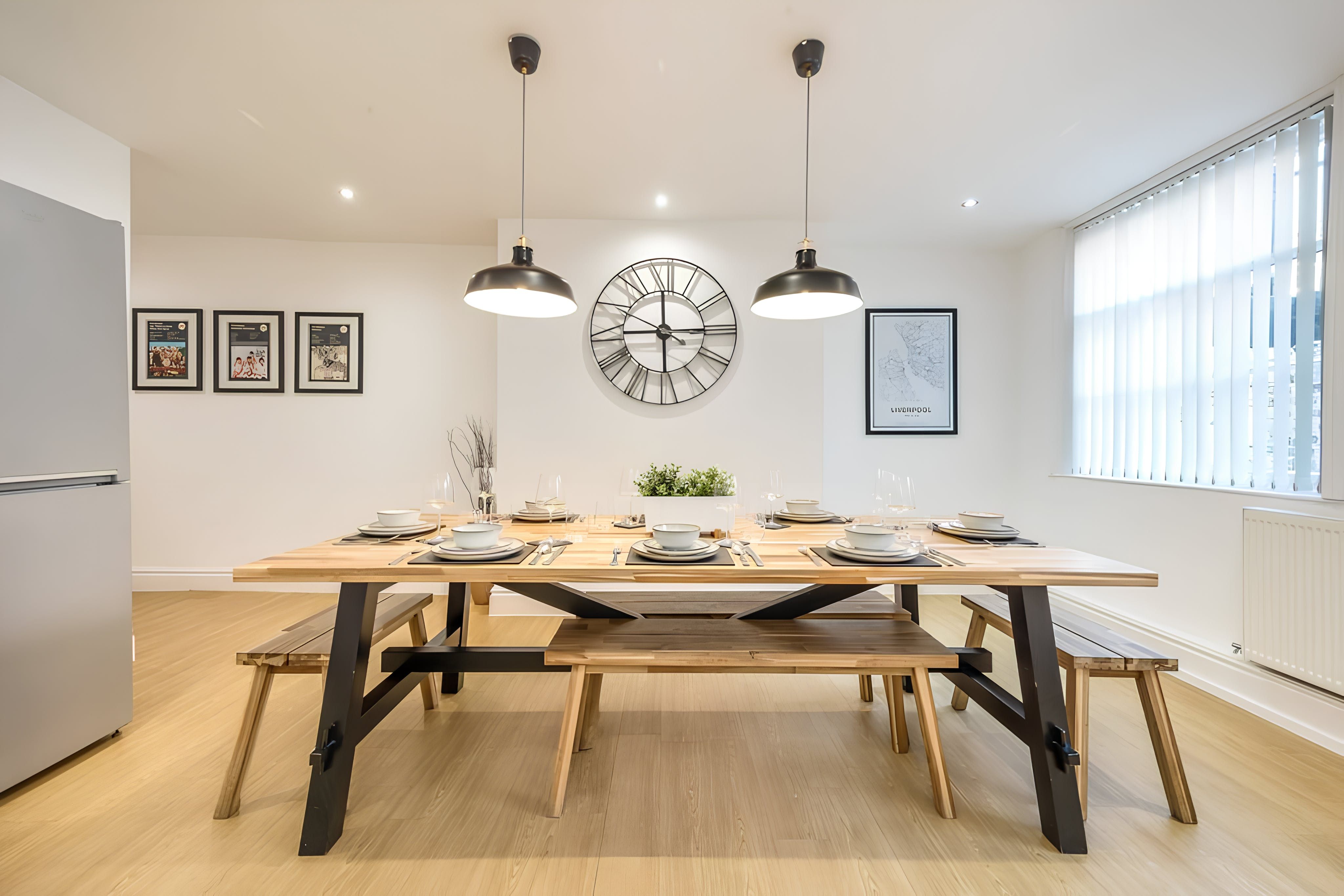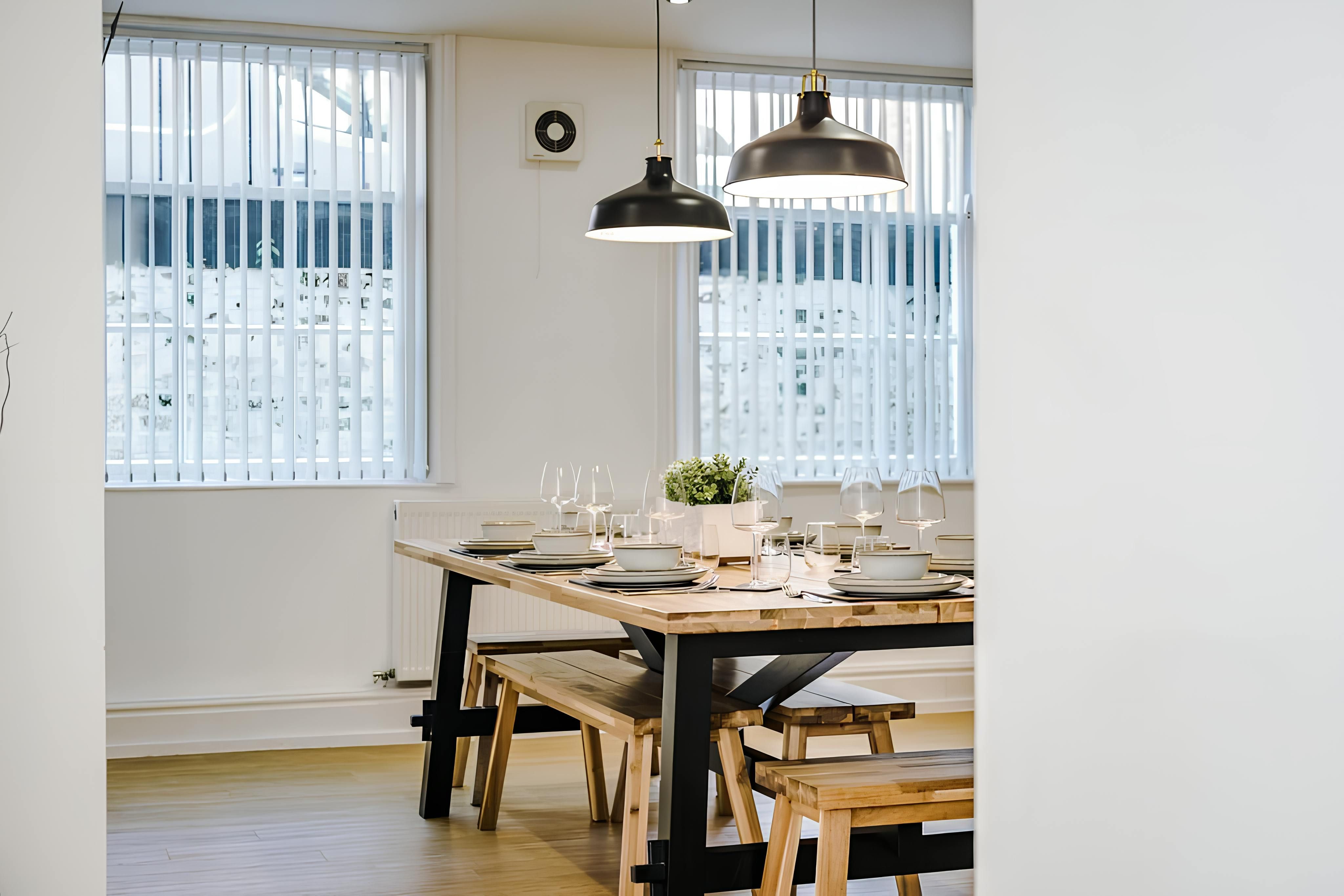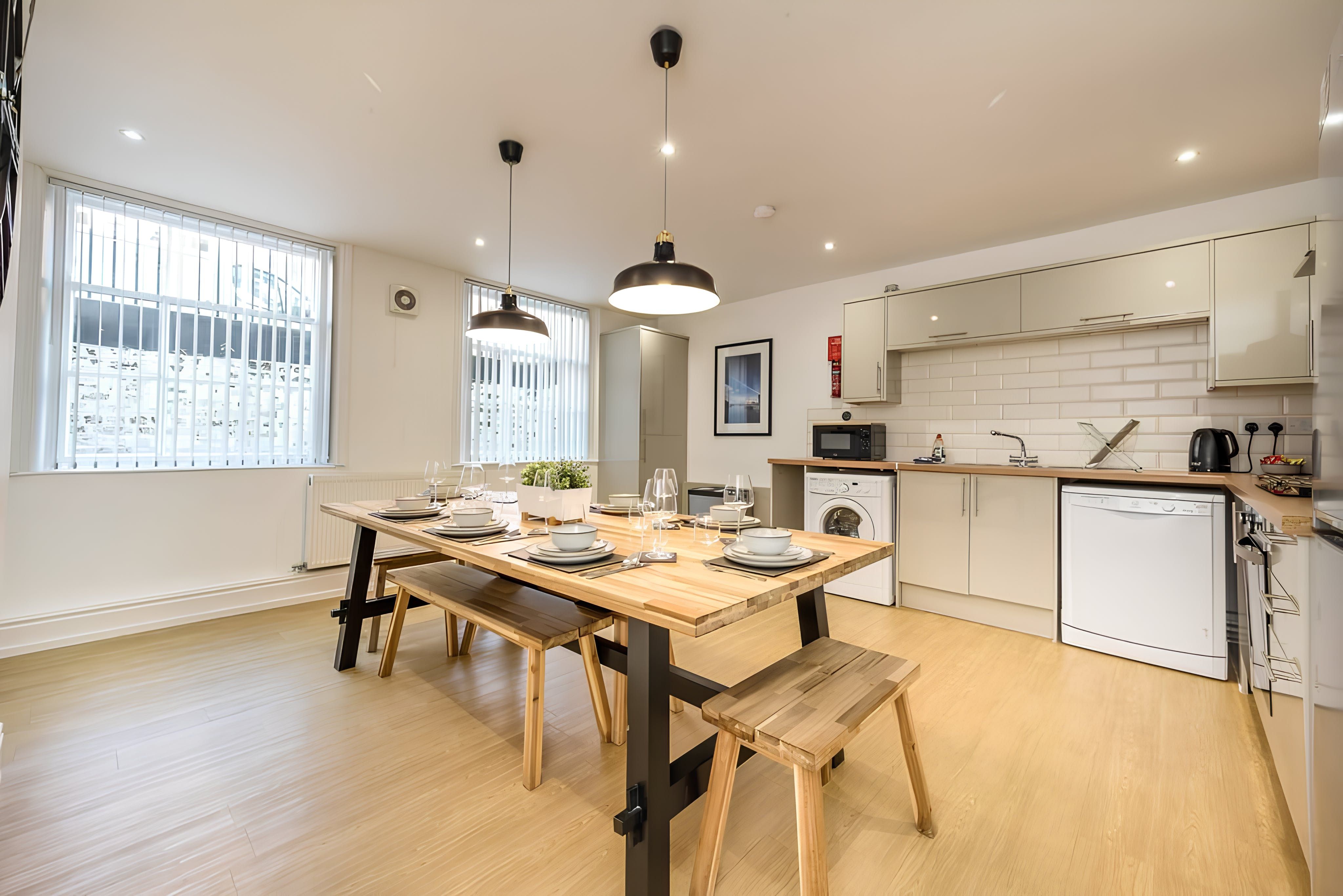 Stay in this stunning 2-bedroom duplex in Liverpool's Georgian Quarter, just a short walk from the city centre. This apartment is perfect for families who want to experience the true upscale Georgian living. The property has 2 spacious bedrooms, a fully equipped kitchen with a dining area, and a comfortable living room.