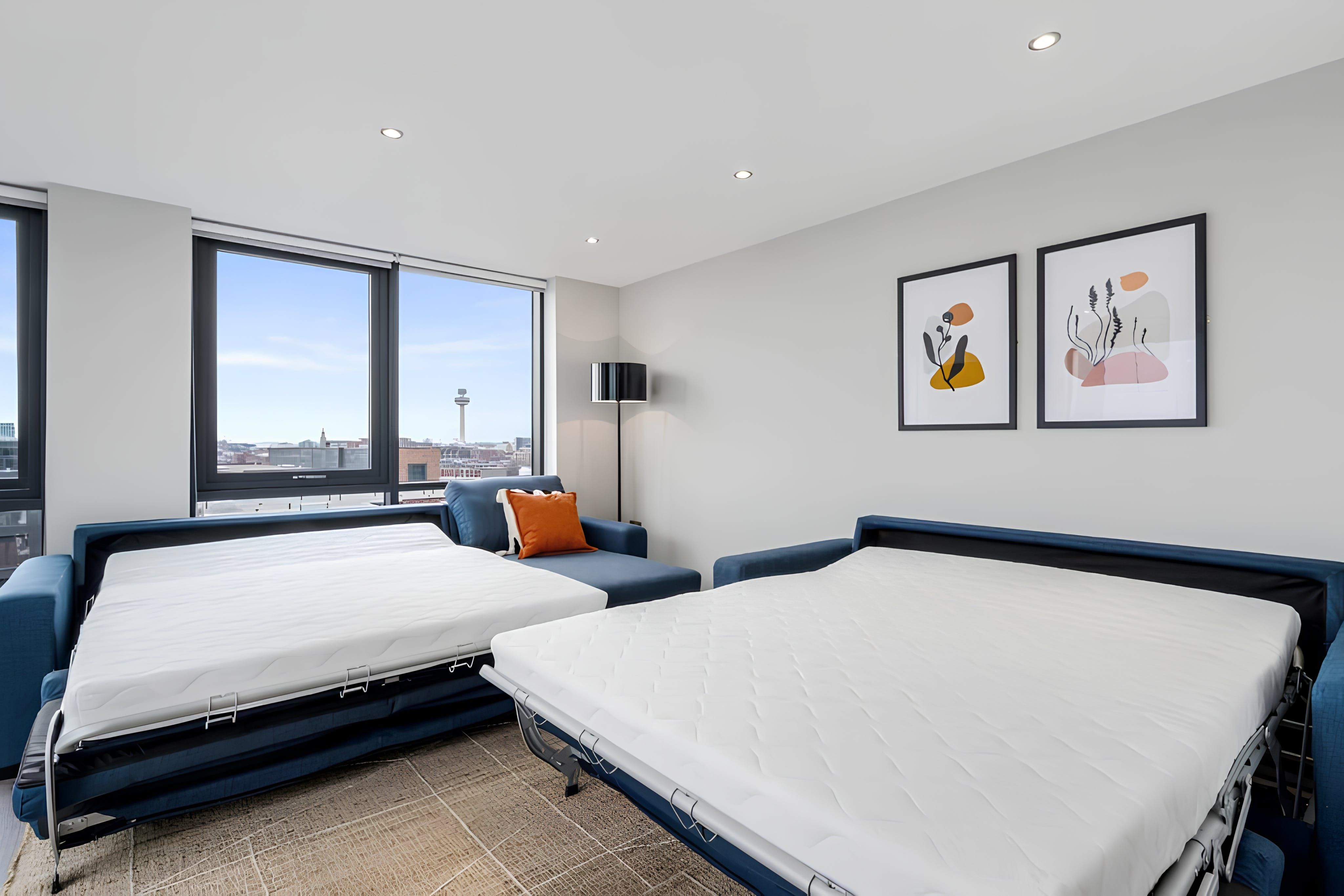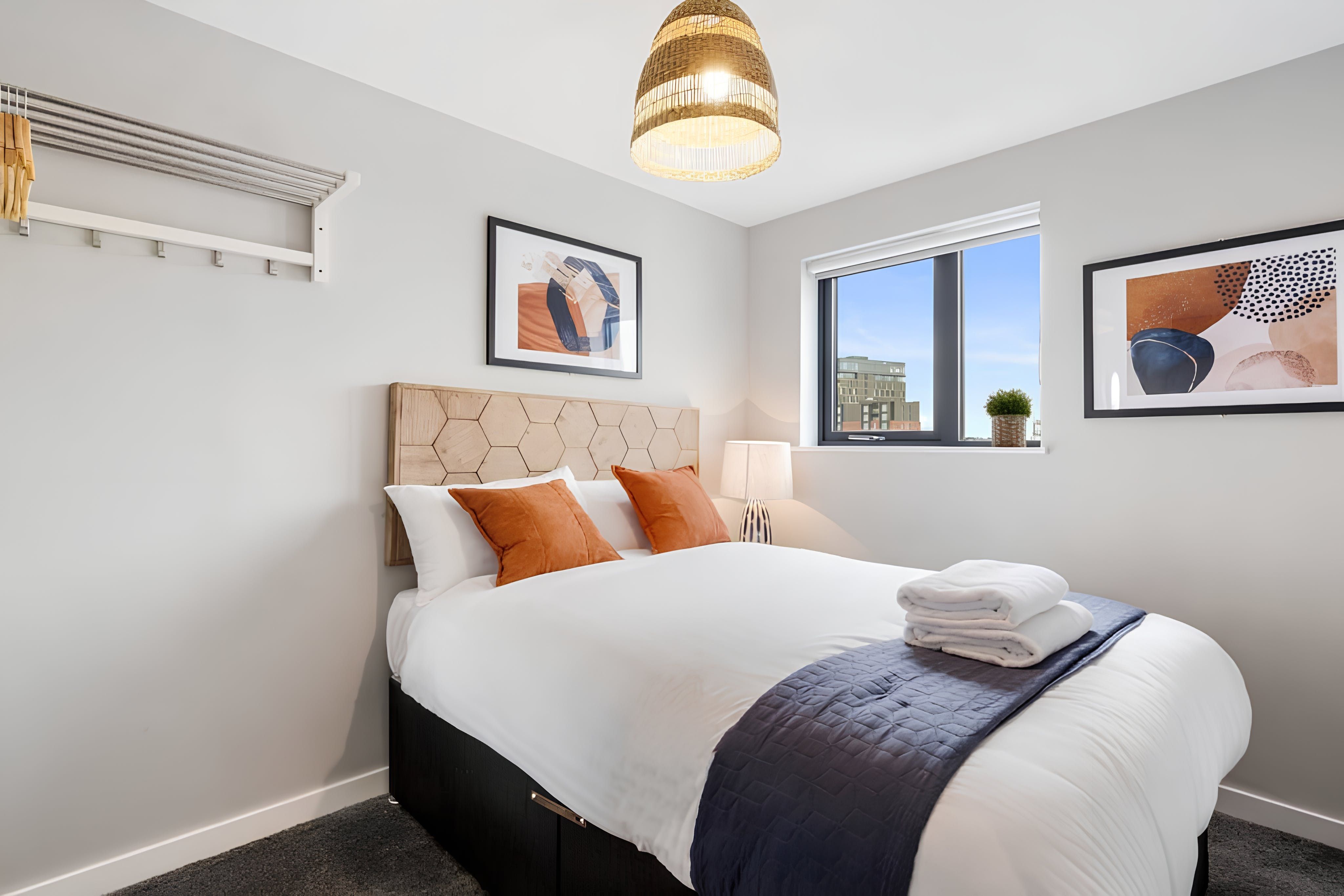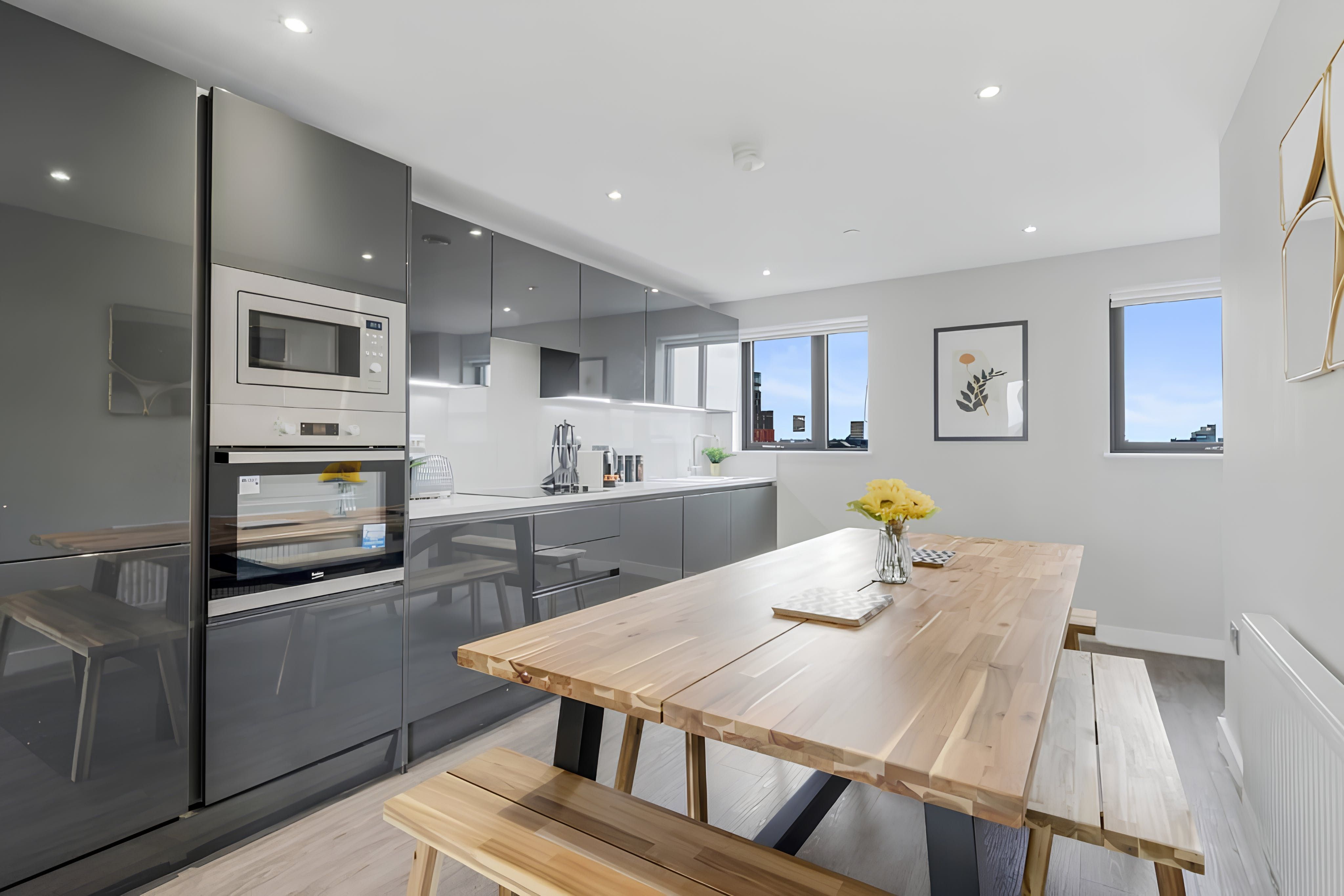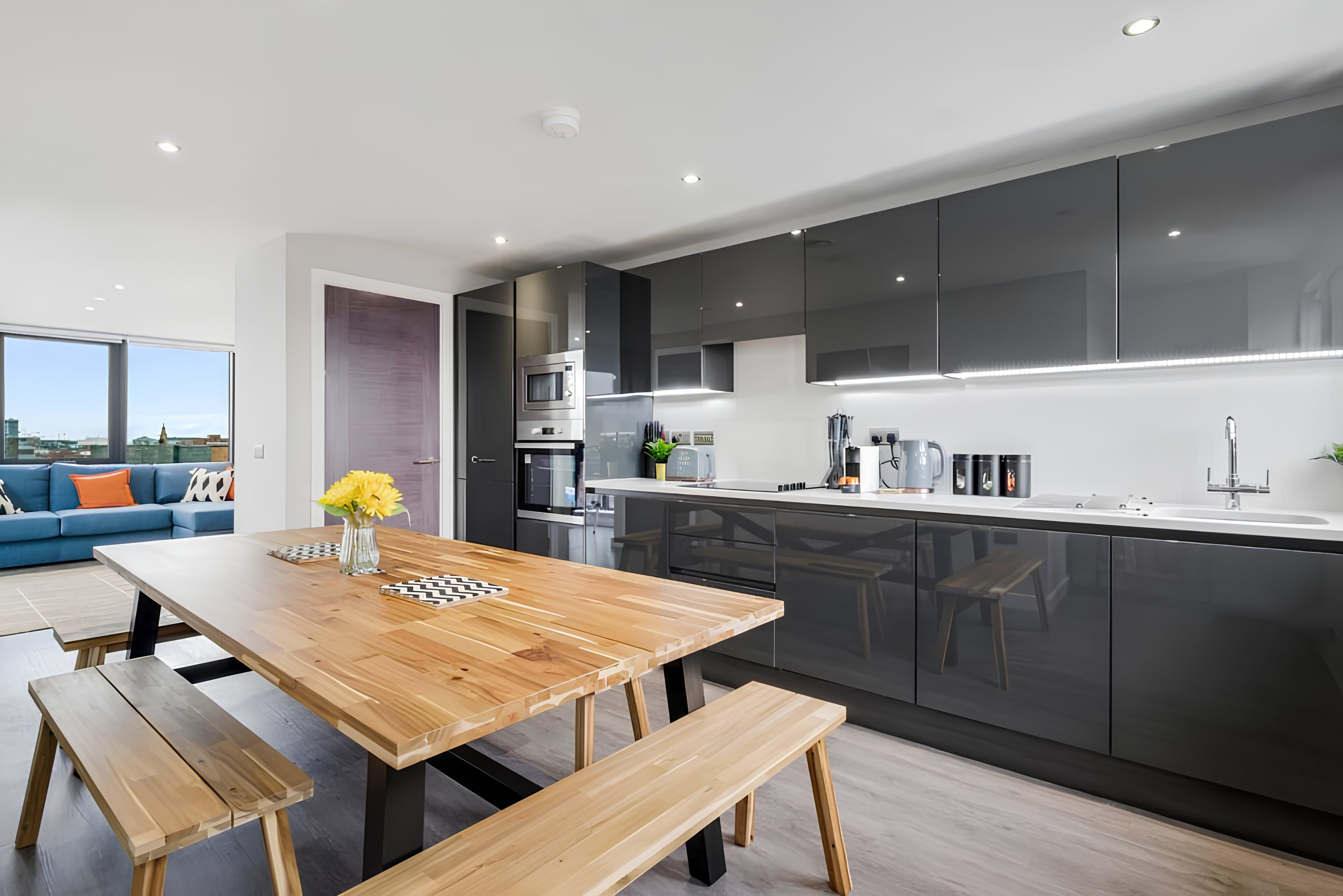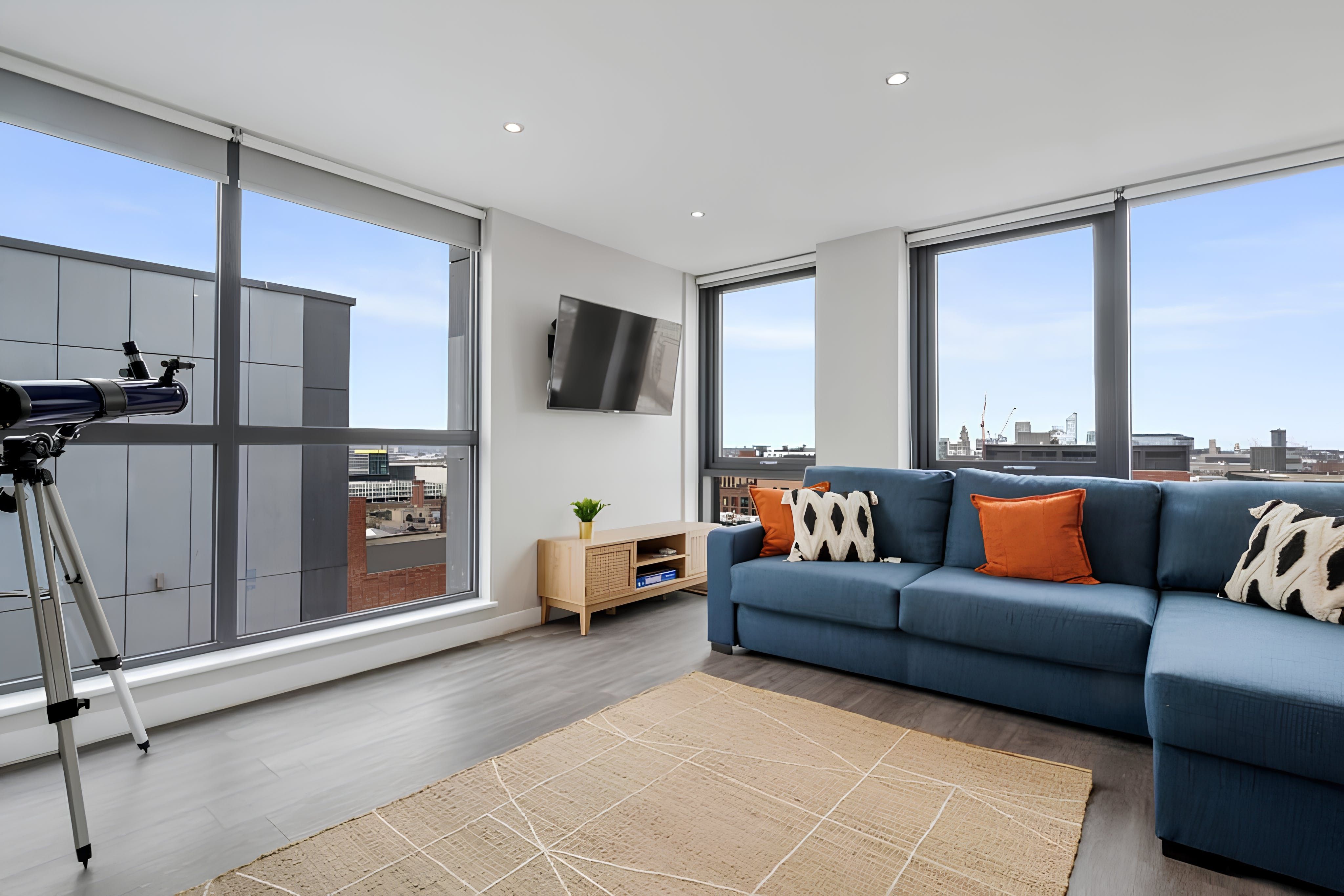 This is a stunning 2 bedroom duplex apartment located in the heart of Liverpool's Baltic Triangle district. The apartment is fully equipped with everything you need for a comfortable stay, including a fully equipped kitchen, a washer and dryer, and a free WiFi connection. The apartment also has a private terrace with stunning views of the city.