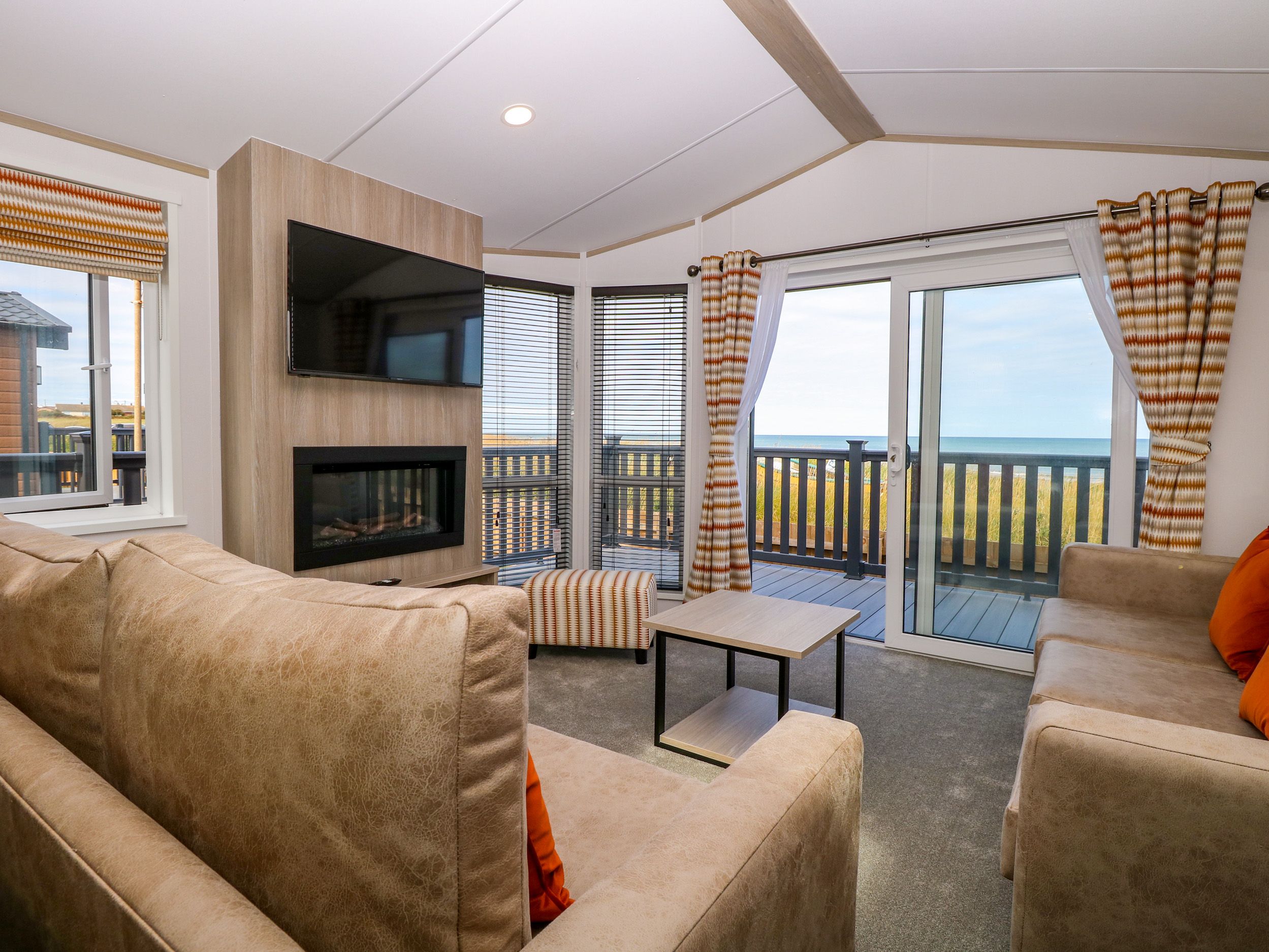 Holiday home Sherwood Lodge, a single-storey caravan, consists of a kitchen with electric oven, gas hob, microwave, fridge/freezer, dishwasher, coffee machine, kettle, and toaster, a utility with washing machine, a dining room, and a sitting room with Smart TV and electric fire. The bedrooms consist of a king-size with en-suite and twin. There is a bathroom with bath, shower over, basin, and WC, which twin room as Jack-and-Jill access to. WiFi, fuel, power, bed linen, and towels are included in the rent. Outside, there is an enclosed decking with furniture and off-road parking for one car. Sorry, no pets and no smoking. Shop 0.2 miles, pub 1.2 miles, beach 0.1 miles. Sherwood Lodge is a wonderful escape to Norfolk, whatever time of year. Note: Access from the property directly onto the beach.