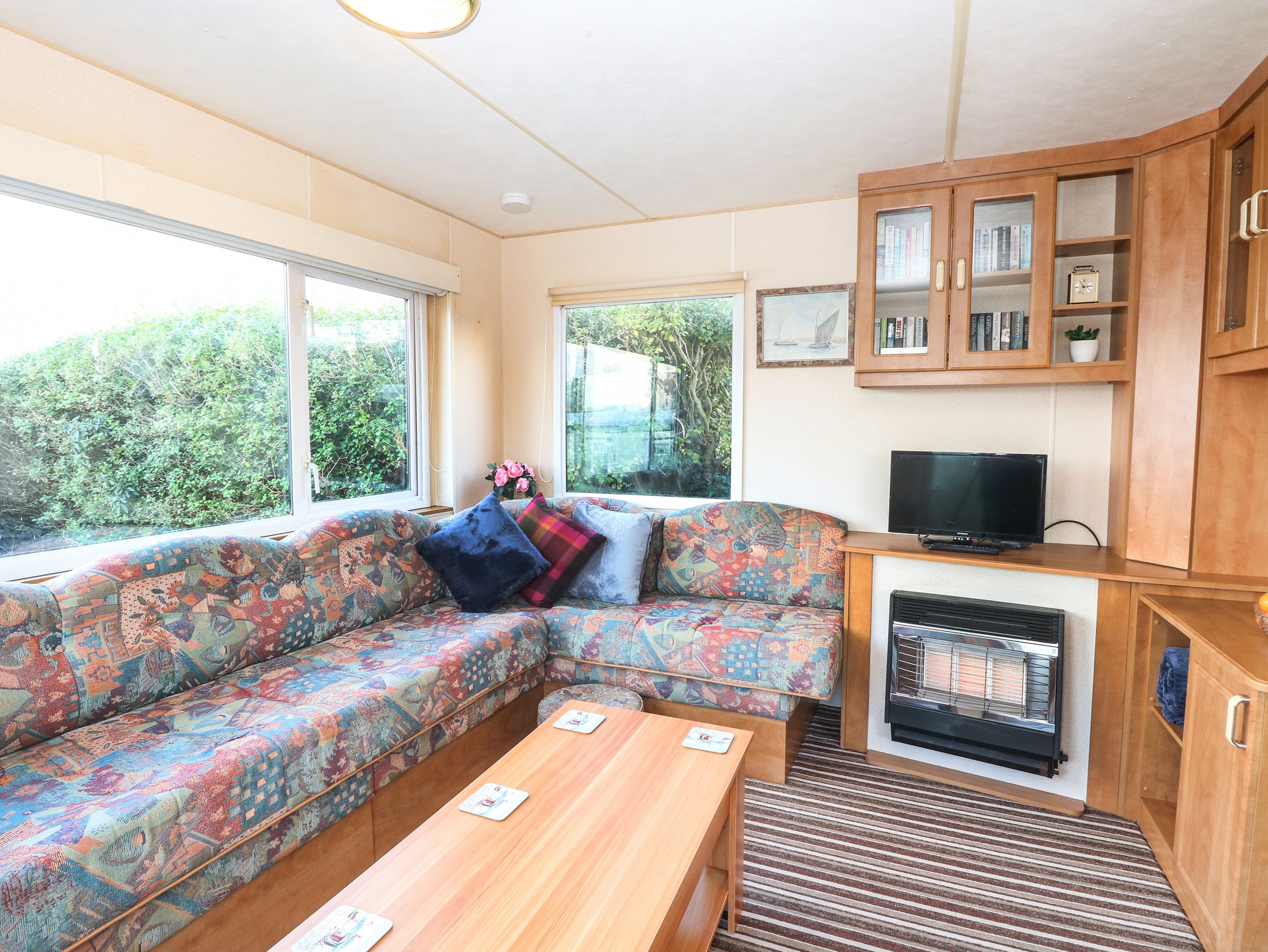 Accomodation Details Single-storey. Two bedrooms: 1 x double, 1 x twin. Shower room with walk-in shower and separate basin and WC. Open-plan living space with kitchen, dining and sitting area with gas fire. Shared laundry, the launderette is a 1 minute walk down the site