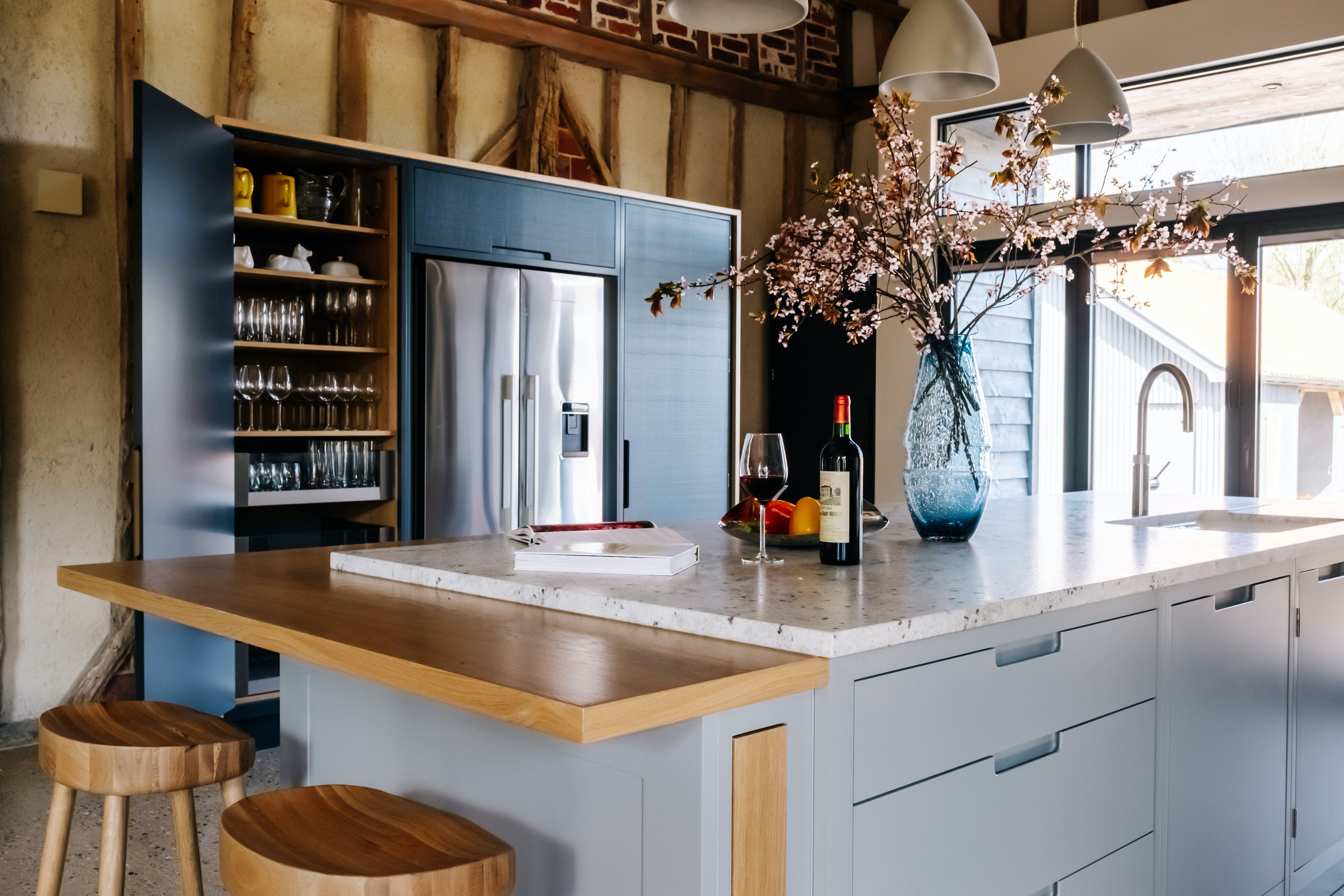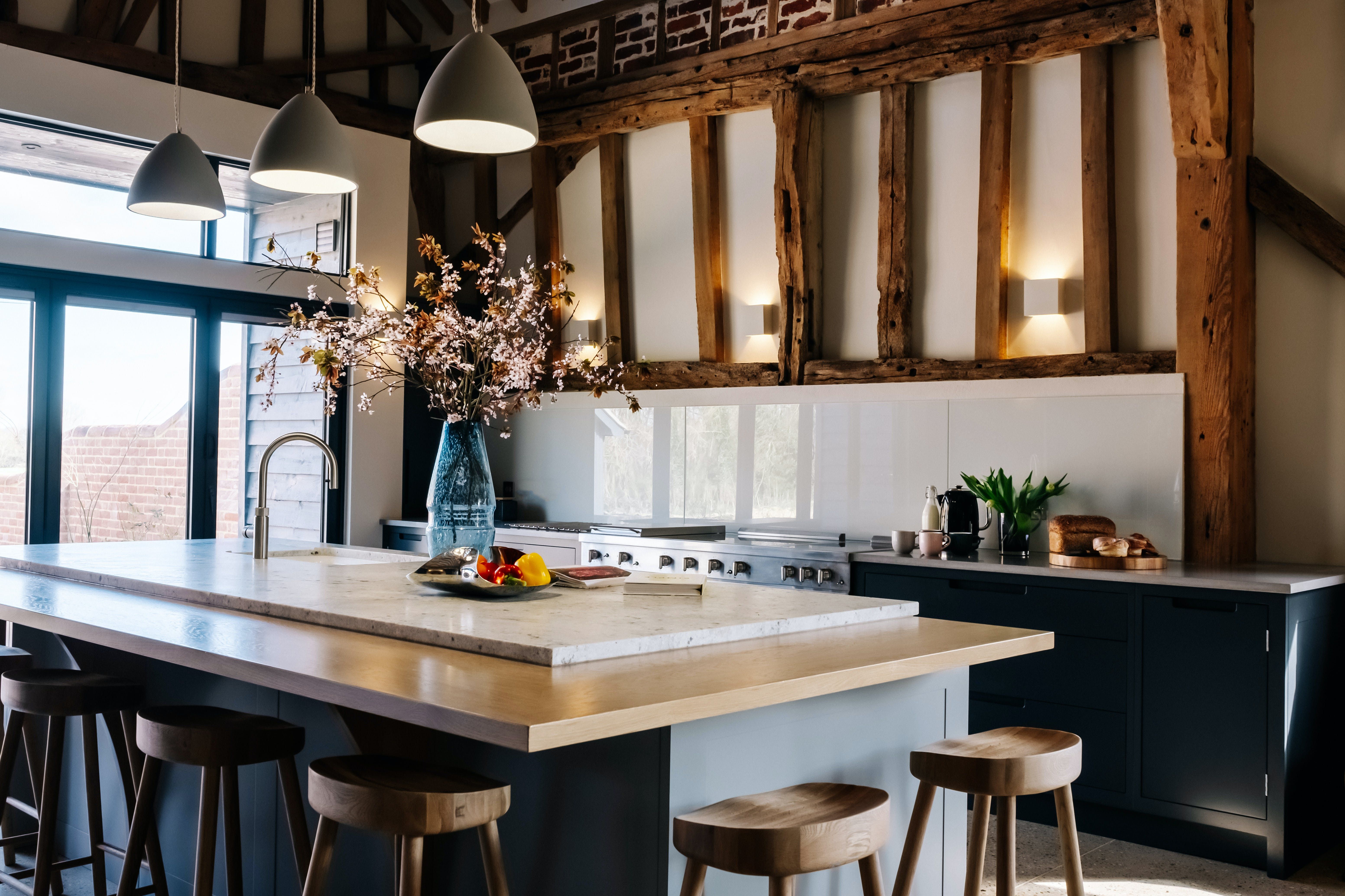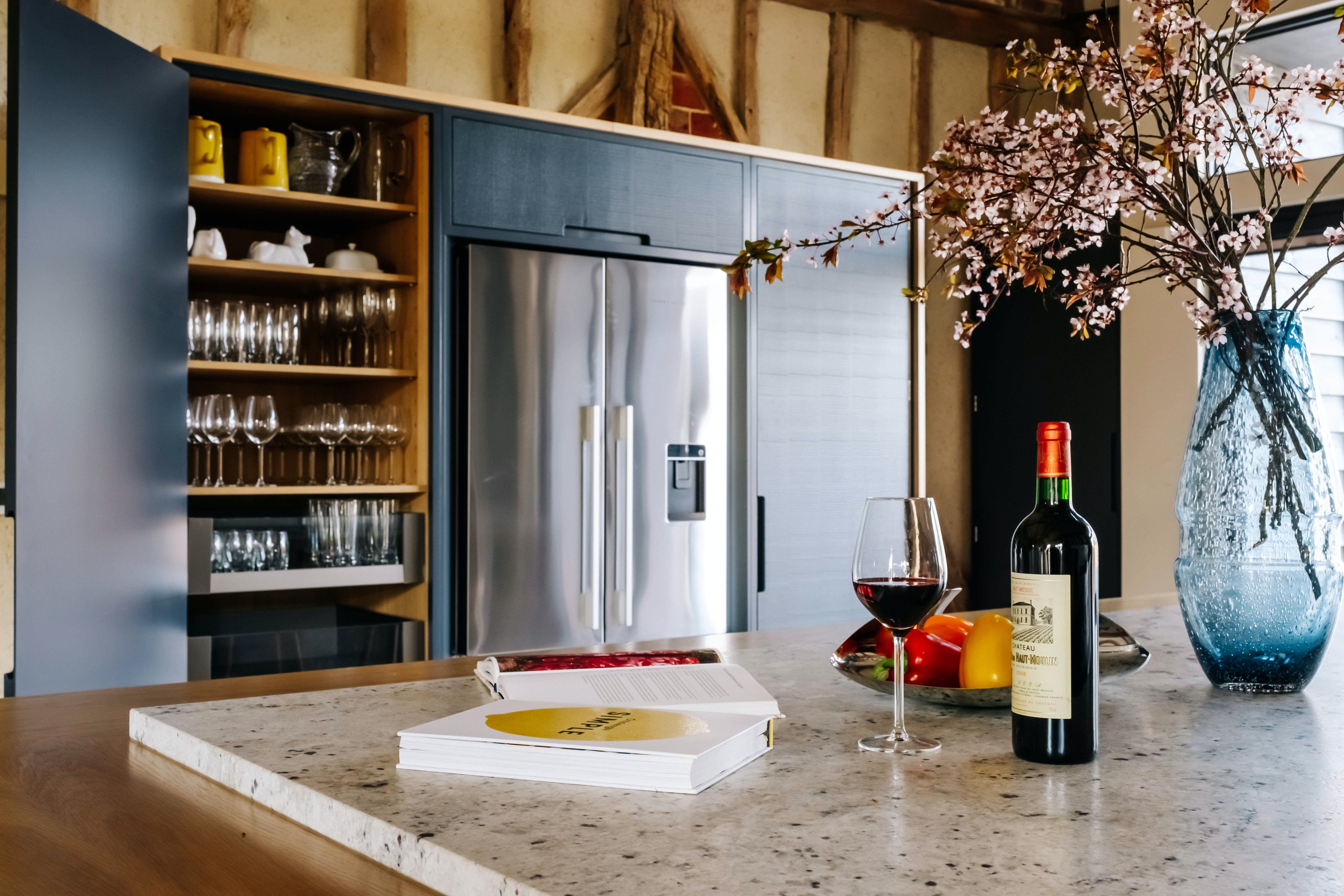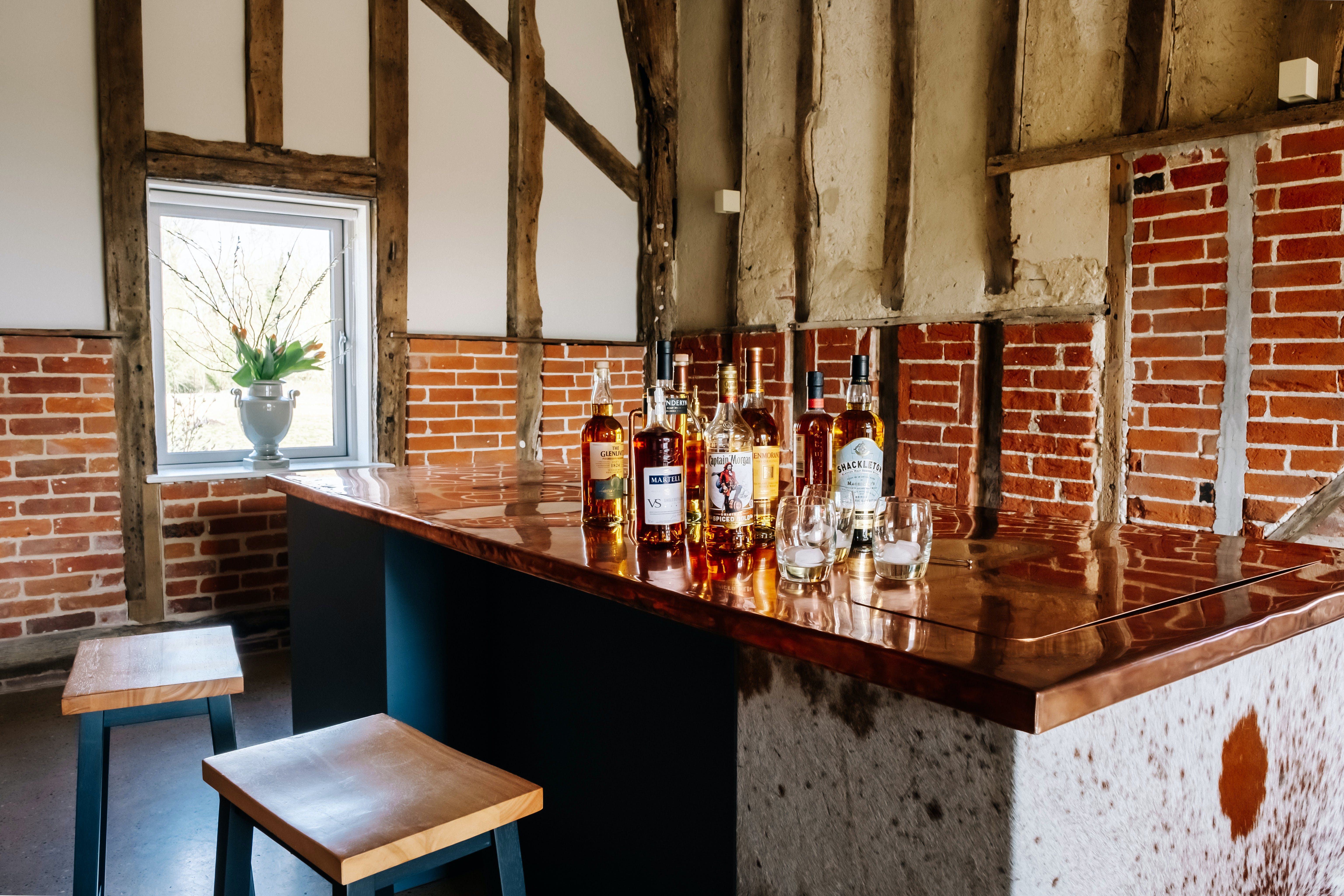 Step inside the vast open-plan space, and you'll find comfortable corner sofa seating, a beautiful rustic dining table, and a sleek custom kitchen, bookended by long stretches of folding doors that allow for seamless access to the outdoors. In addition, a stunning copper-topped bar is perfect for mixing up summer sundowners to sip out on the terrace, while a separate snug offers a secluded spot to get stuck into a good book.