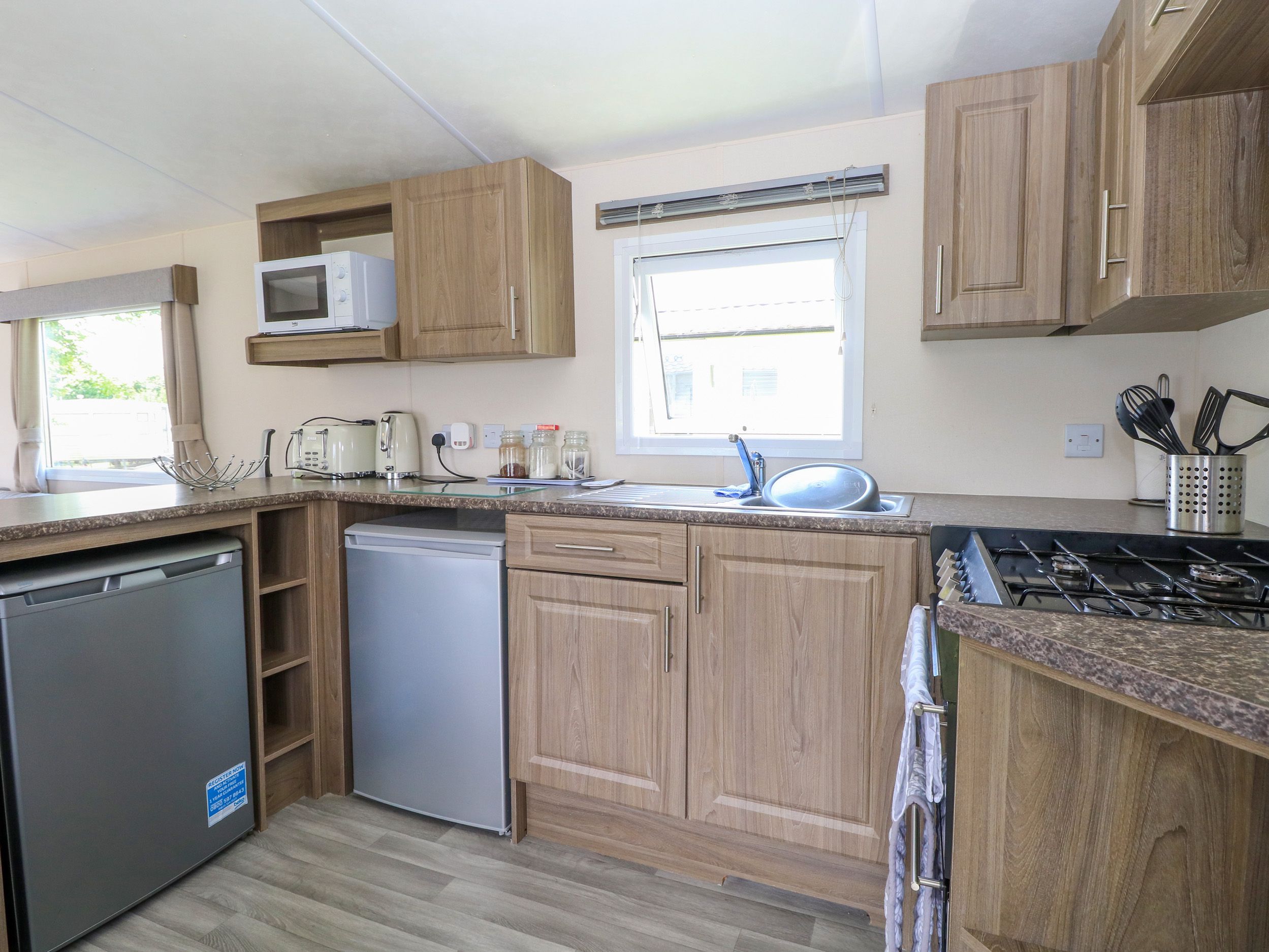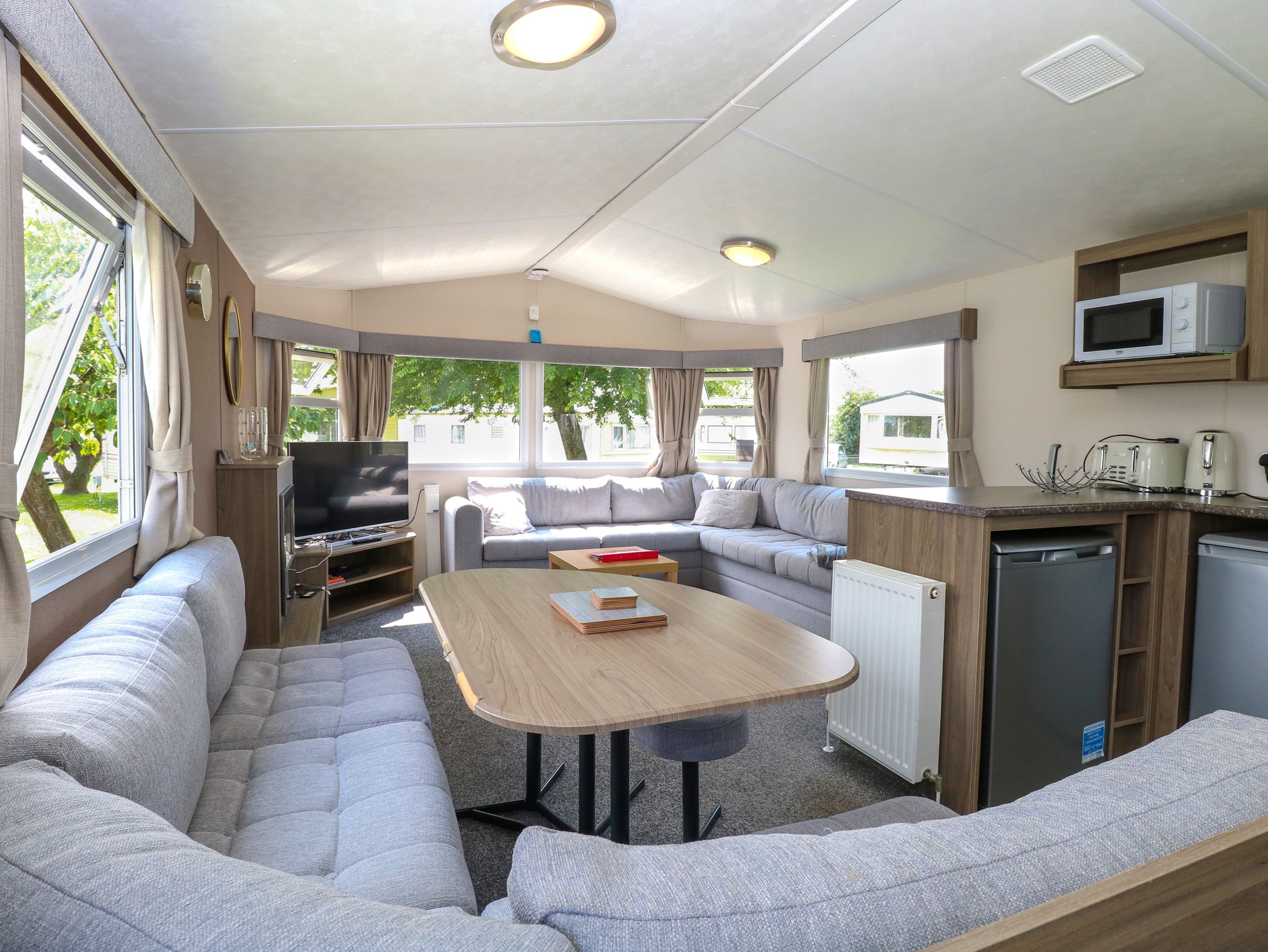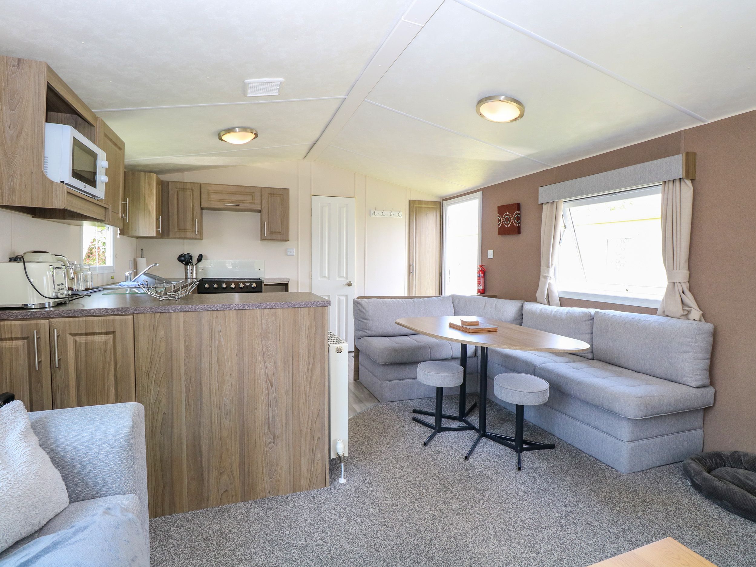 Gas central heating. Microwave, fridge, freezer, toaster, kettle. Smart TV, WiFi, DVD player. Fuel and power inc. in rent. Bed linen and towels inc. in rent. Highchair and travel cot available. Off-road parking for 2 cars. Non-enclosed wraparound lawn. Two well-behaved pets welcome. Sorry, no smoking. Shop 0.1 miles, pub 0.4 miles, beach 3.8 miles. Note: Although the property is single-storey, there are steps up to property, please take care. Note: Check-in from 4pm, check-out by 10am. Note: There is a charge for on-site facilities. Please note: From the 6th of December to the 3rd of January, there is a Winter Wonderland event at the site for those interested in winter festivities.