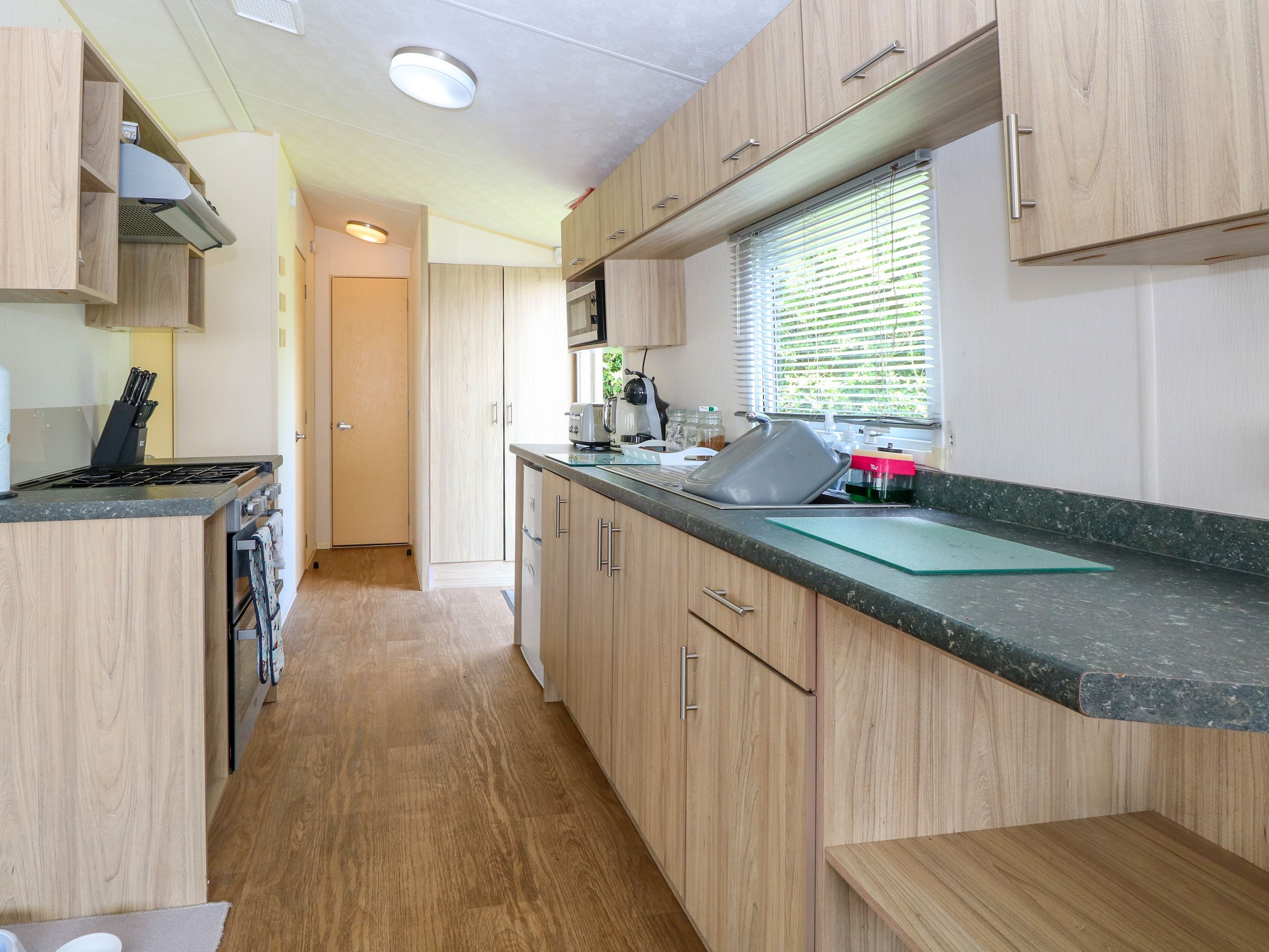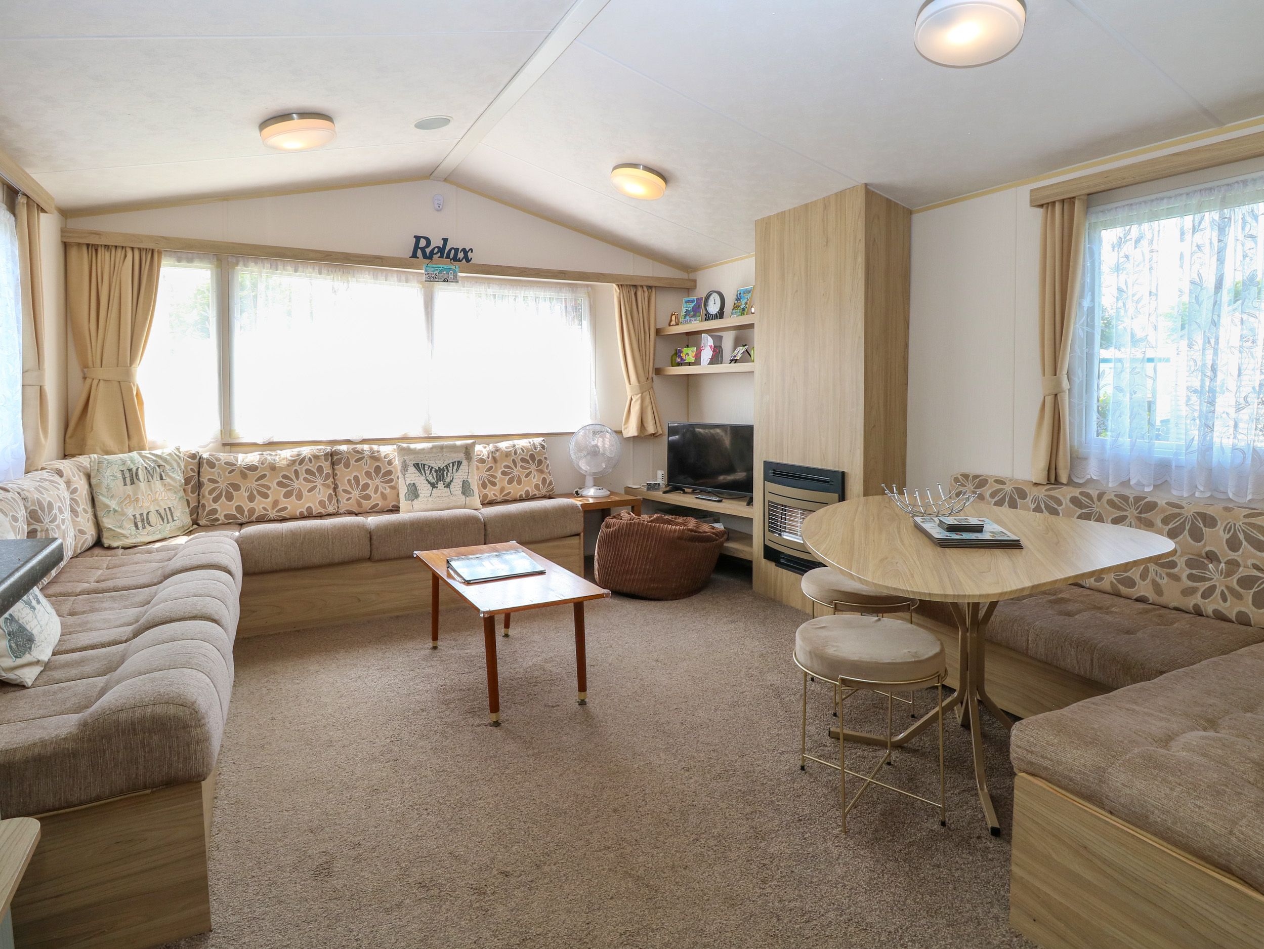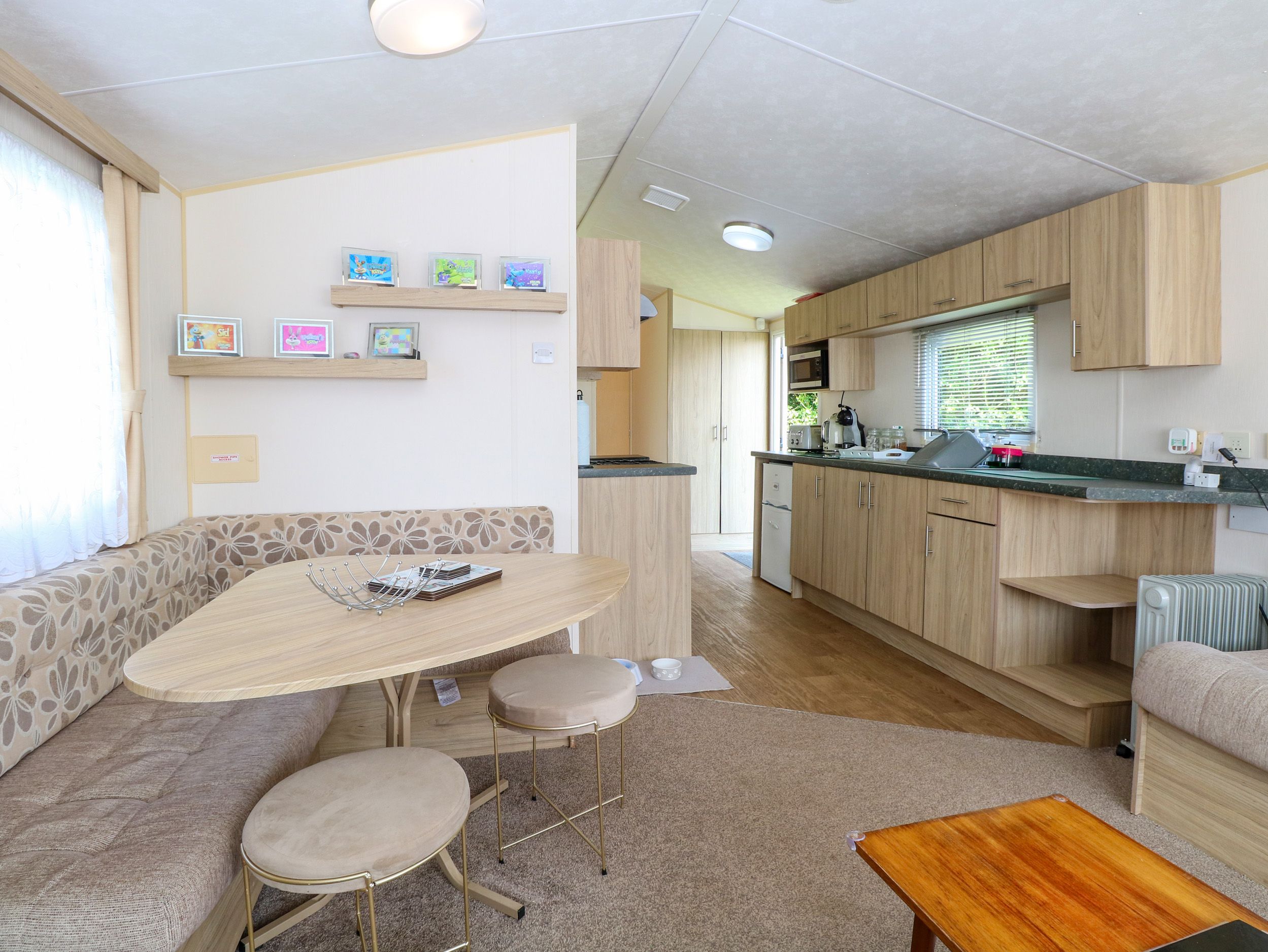 Electric heating. Gas oven and hob, microwave, fridge/freezer, coffee maker. Smart TV, selection of books, WiFi. Fuel and power inc. in rent. Bed linen and towels inc. in rent. Highchair, travel cot, and bed guard. Off-road parking. Non-enclosed front garden with lawn and furniture. Two well-behaved dogs welcome. Ideal for those travelling on business and contract workers. Sorry, no smoking. Shop 0.1 miles, pub 1.1 miles, beach 3.4 miles. Note: Though the property is single-storey, there are steps up to entrance. Passes for on-site facilities to be purchased separately. Please note: From the 6th of December to the 3rd of January, there is a Winter Wonderland event at the site for those interested in winter festivities