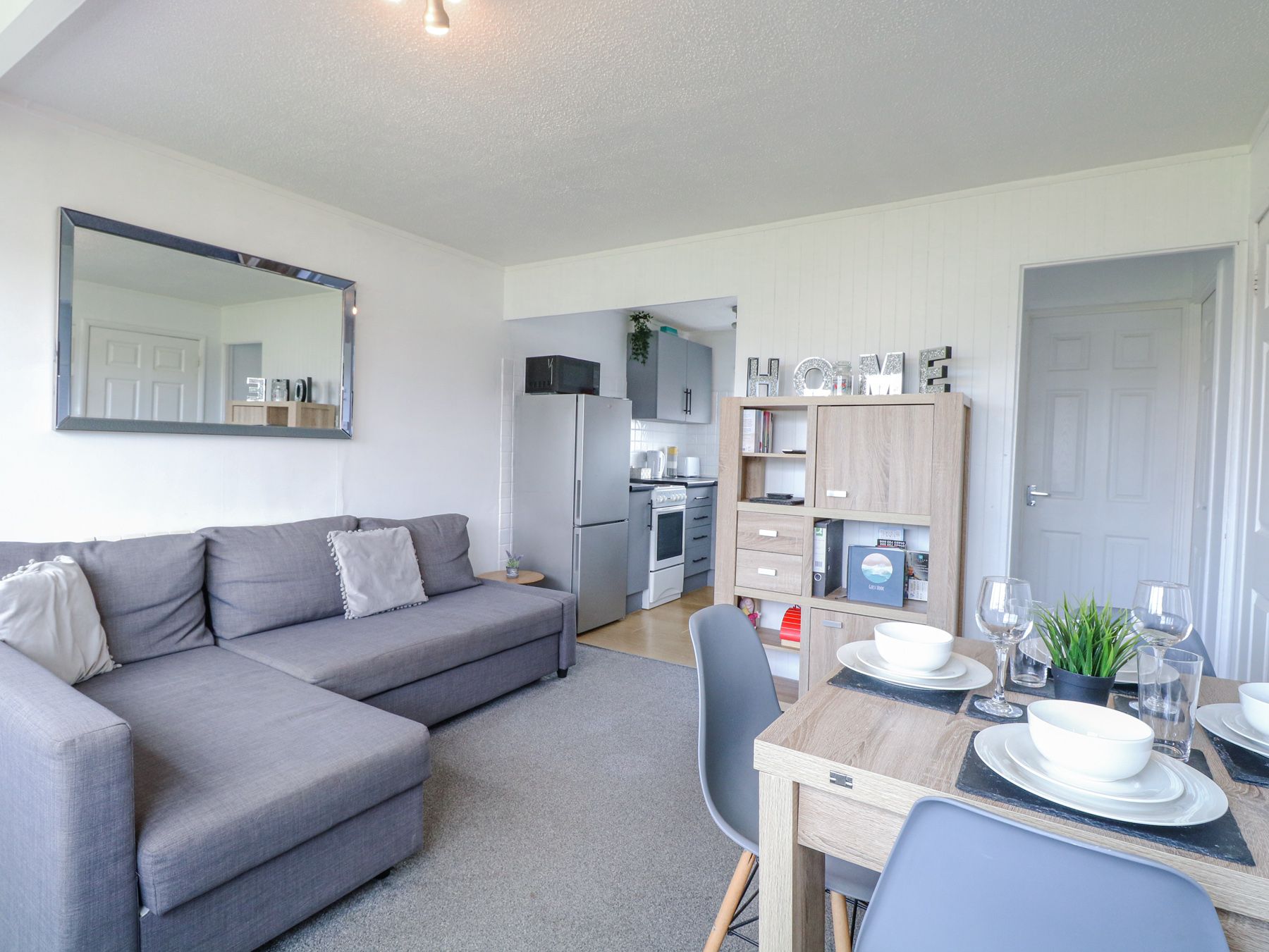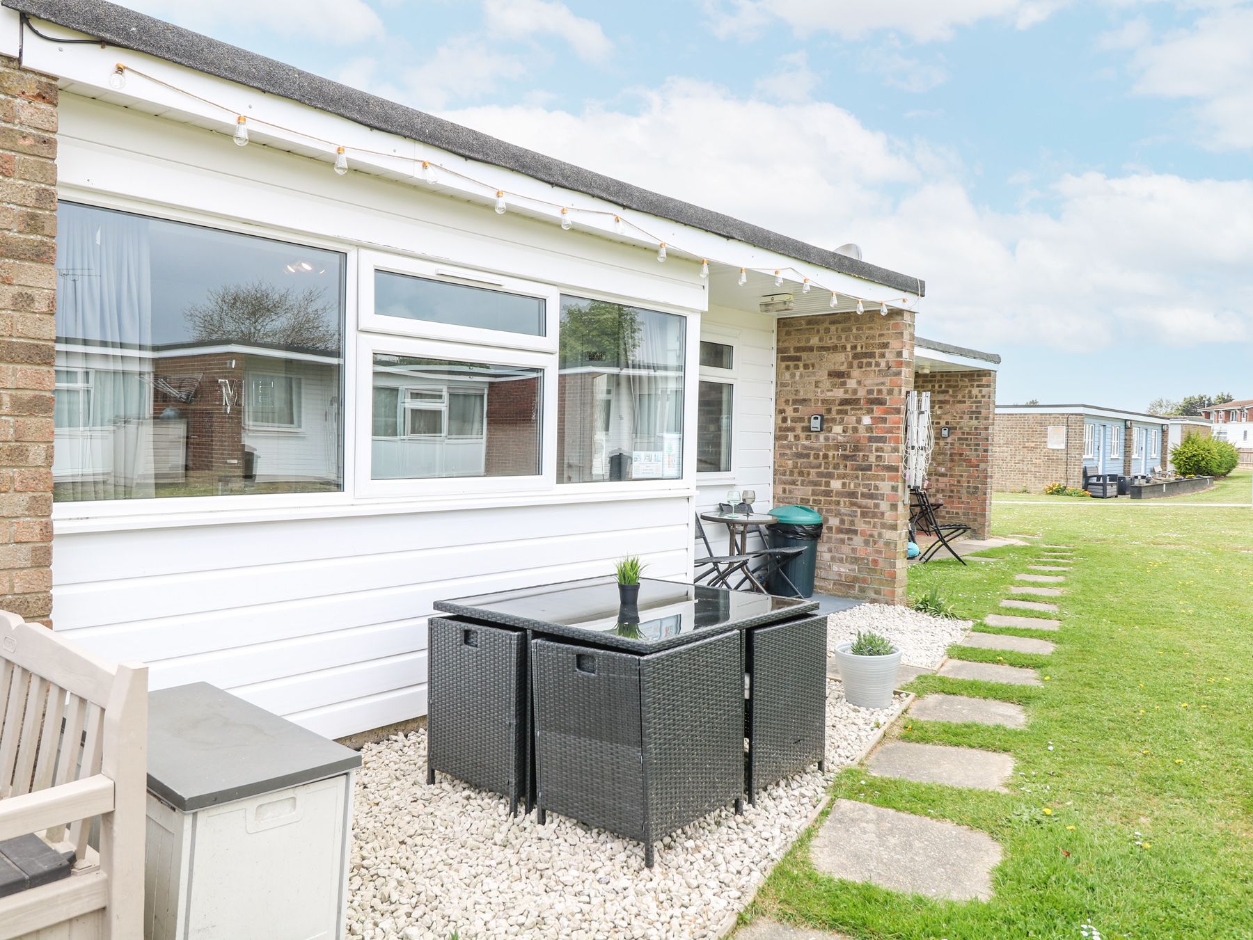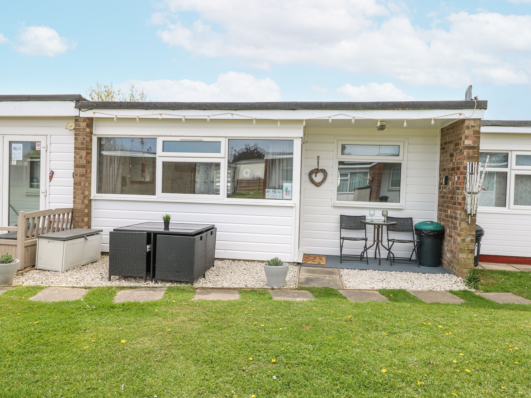 Amenities Electric central heating. Electric oven and hob, microwave, fridge/freezer, TV. Bed linen and towels inc. in rent. Travel cot and high chair available. This property has an electric meter that is located behind the sofa, £1 coins are needed to use this. Off-road parking available. Private patio with outdoor seating area and a lawned area. Use of shared heated indoor swimming pool (charge payable on site). Sorry, no smoking. Two well behaved dogs welcome. Shop and pub 0.1 mile, beach 0.3 miles.