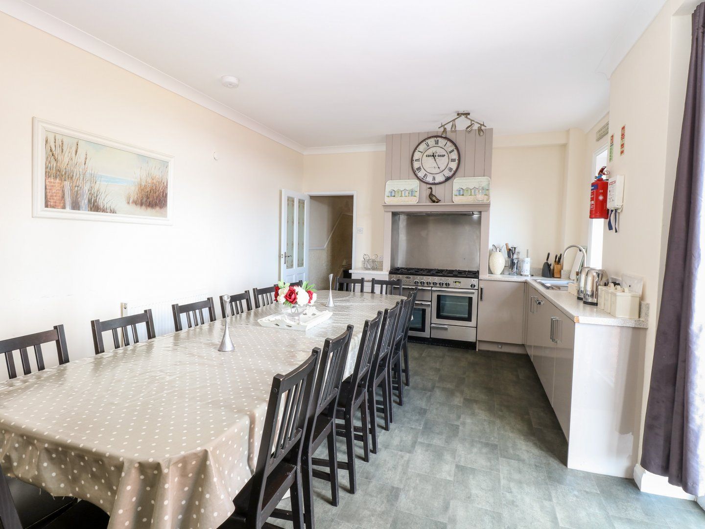 Holiday home Elwin House is a large, three-storey property just down the road from the beach in Cromer, Norfolk. The property is set over three floors and offers nine bedrooms: a family room with double and single bed, a second-floor double with en-suite shower room, another second-floor double, a double with en-suite shower and basin, a further double, three second-floor twins and a single, sleeping 18 guests. The property also hosts a second-floor bathroom, a shower room with separate WC, a first-floor cloakroom, a utility with WC and washing machine, a kitchen/diner, breakfast room and two sitting rooms. Outside there is a small balcony and patio area. There is off street parking in the rear forecourt of Elwin House for a minimum of 2 cars. Customers can also park in Alfred Road, it has no restrictions or yellow lines. Elwin House is great for family or group gatherings in the centre of Cromer. Arrivals Friday and Monday only. Friday arrivals 3 or 7 nights. Monday arrivals 4 nights.