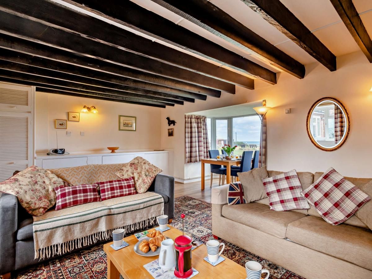 Lose yourself in panoramic sea views from almost every window of this family-friendly traditional brick and flint cottage nestled in the heart of Mundesley.