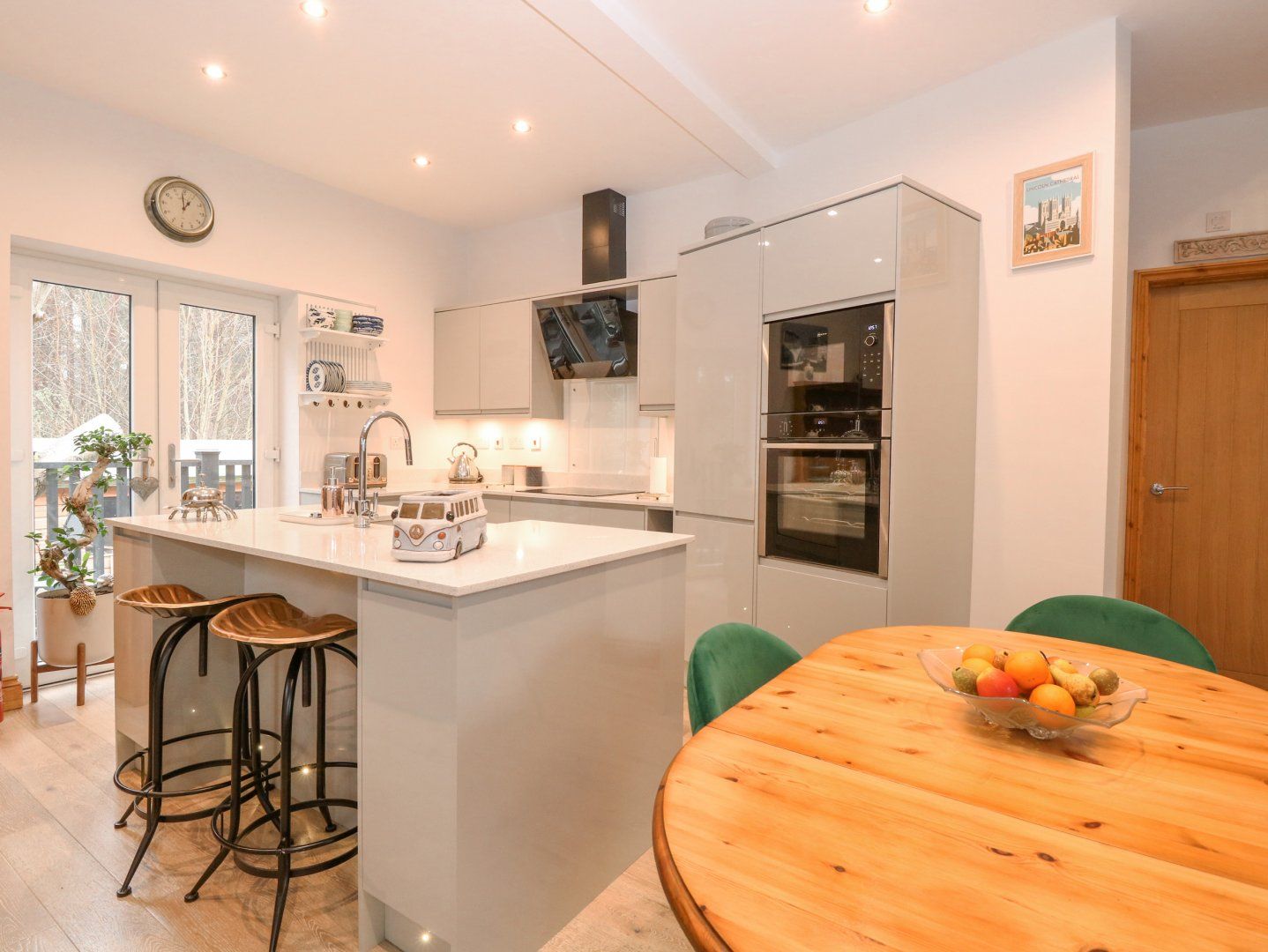 Accomodation Details Single-storey annexe. Two bedrooms: 1 x king-size with TV, 1 x double. Bathroom with freestanding bath, walk-in shower, basin and WC. Open-plan living space with kitchen, dining area and sitting area with balcony and woodburning stove