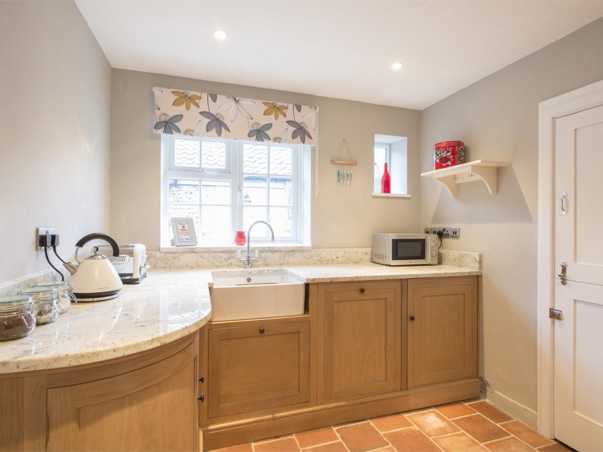 From the moment you step inside, you’ll notice the airy and sophisticated interiors with a wooden-beamed ceiling in the neutral-toned lounge containing a feature fireplace, comfortable sofas and a traditional cottage charm.