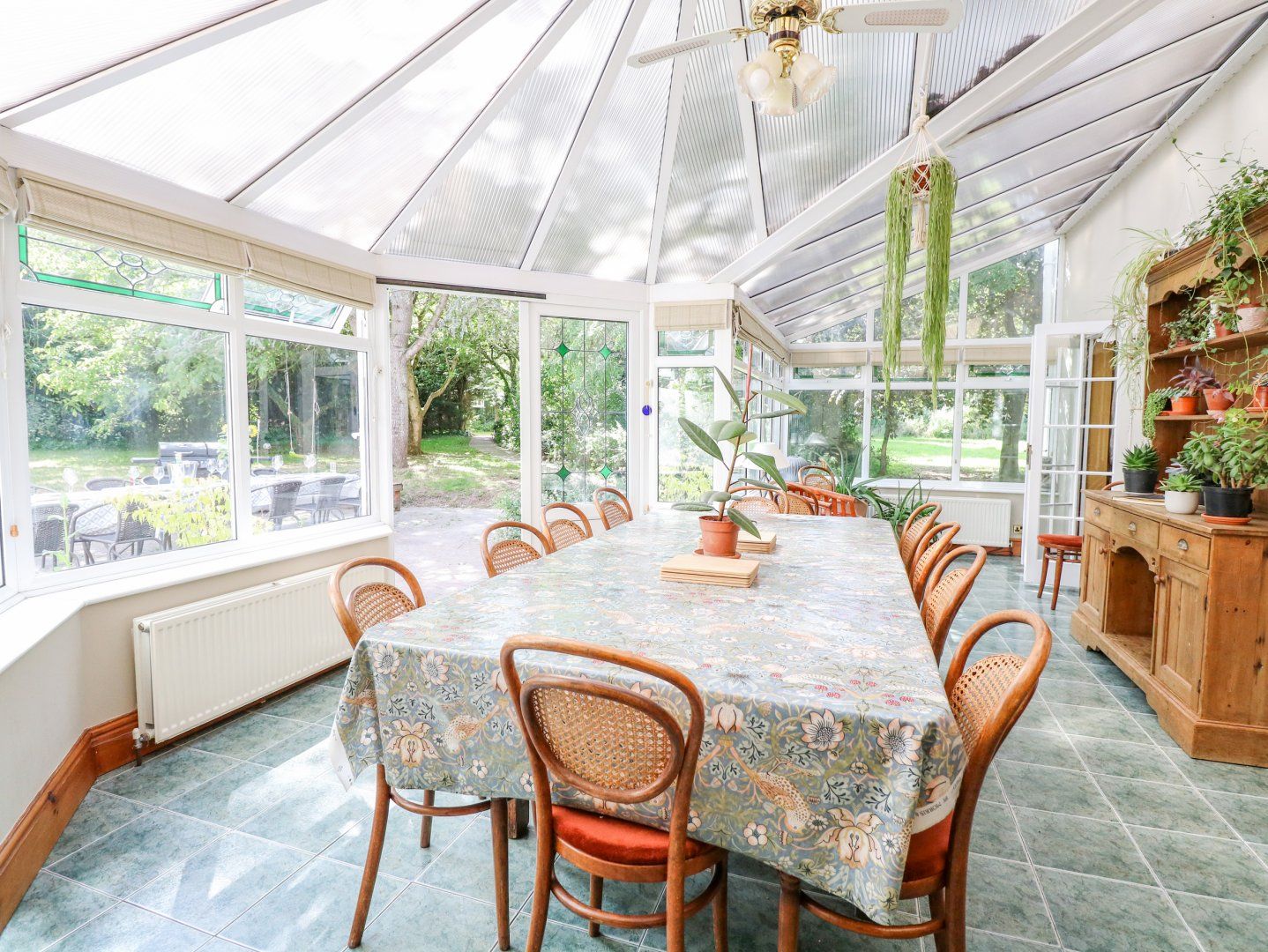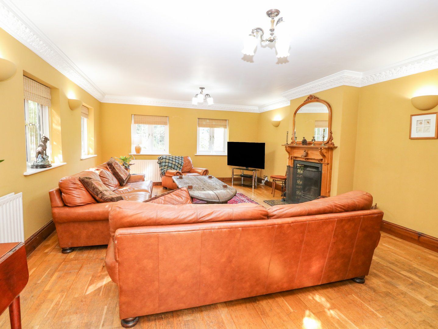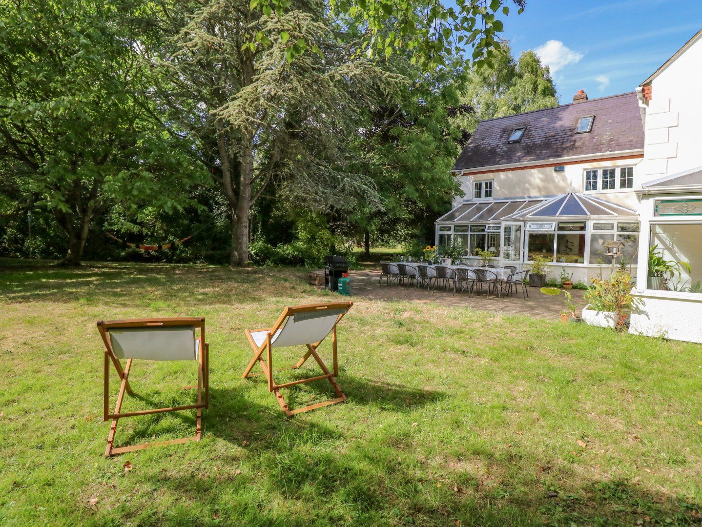 Over three floors. Six bedrooms: King-size with en-suite bathroom with bath, walk-in shower, basin and WC, 2 x king-size, 1 x second-floor king-size, 1 x twin, 1 x second-floor twin. Bathroom with bath, walk-in shower, basin and WC. Shower room with walk-in shower, basin and WC. Cloakroom with basin and WC. Kitchen/diner. Utility. Dining room. Sitting room. Conservatory. Library with double sofa bed