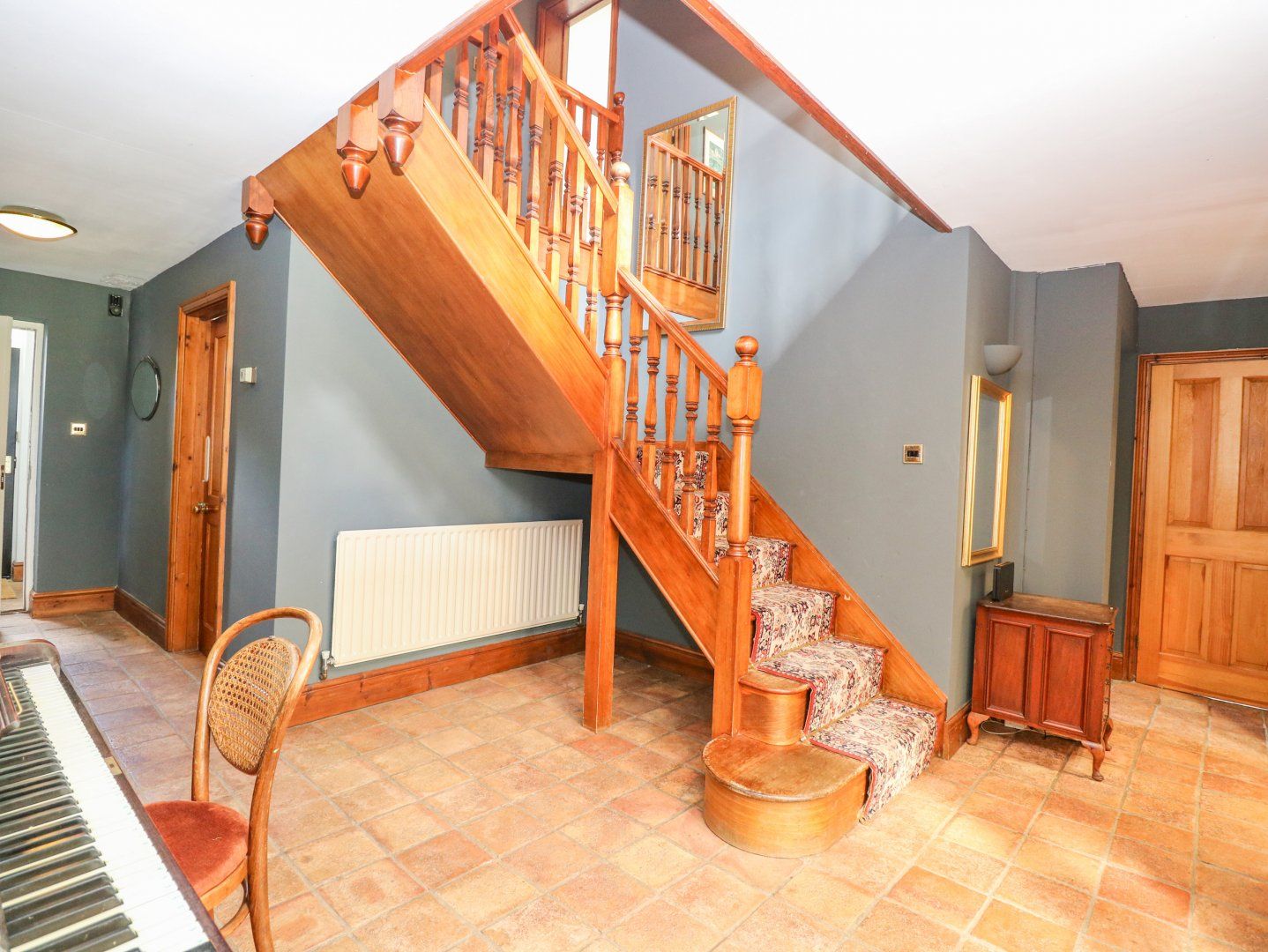 Oil central heating. Range style cooker with Electric oven and hob, microwave, fridge/freezer, washing machine and dishwasher. Smart TV with Netflix and Disney+, WiFi, selection of books and board games. Fuel and power inc. in rent. Bed linen and towels inc. in rent. Off-road parking available. Large, private garden with lawn, patio, orchard and barbecue. Two well-behaved pets welcome. Sorry, no smoking. Shop 3.5 miles and pub 2.8 miles. We are situated next door to a beautiful Glamping and wedding venue, and unless the site is booked exclusively our guests are free to use their facilities include Cocktail bar, Pizzas restaurant, Fields, double decker vintage bus, mini football pitch, play area. Note: Dogs must be kept on a lead at all times, as the garden is not enclosed and there is a main road at the bottom of the drive. Note: Dogs are not allowed upstairs. Note: Dogs are never to be left in the property alone. Note: There is a wedding venue in the fields behind the property which is licensed until 12am. Note: No stag or hen parties. Please note this property only accepts 7-night stays over Christmas and New Year weeks