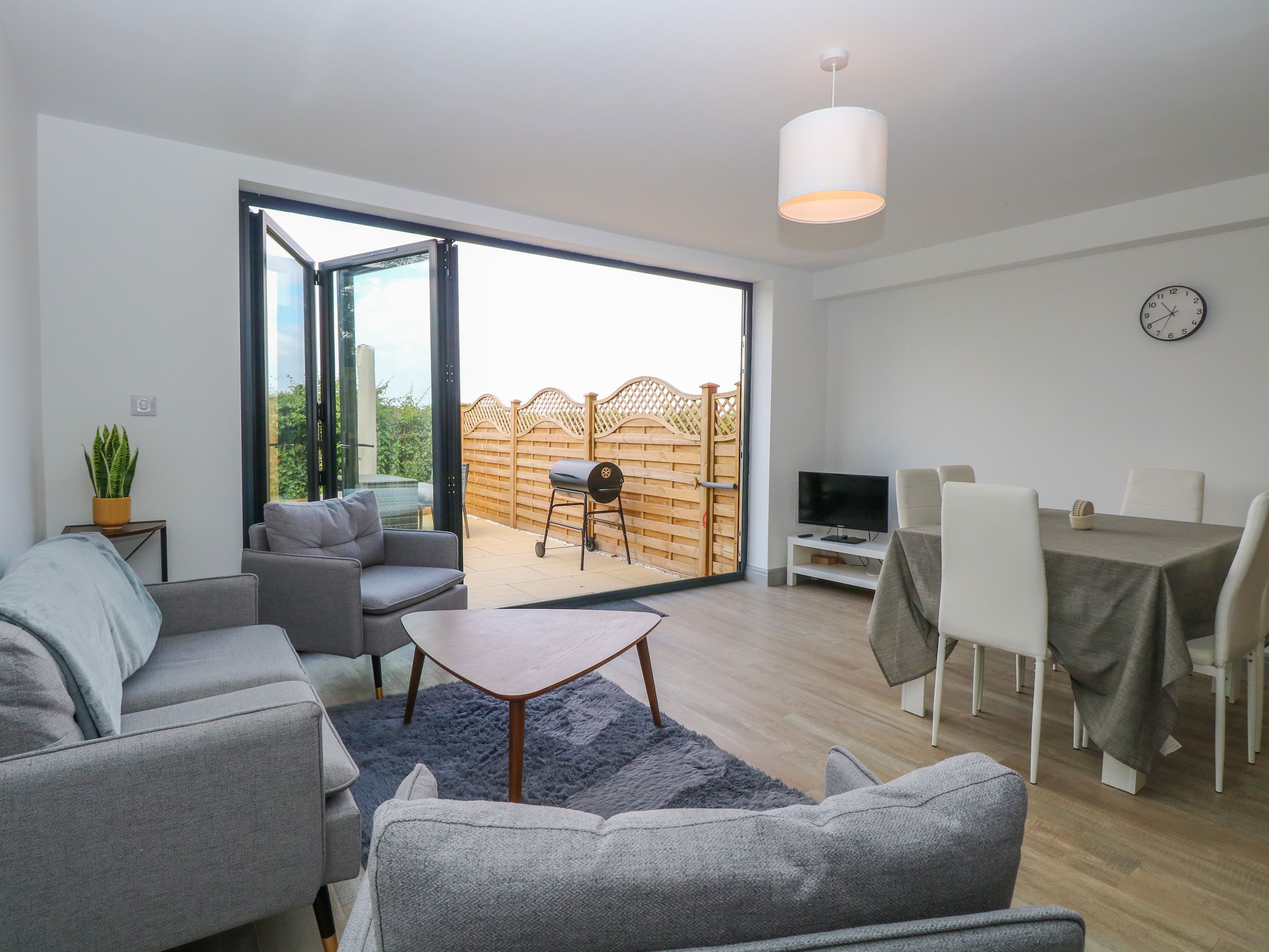 Amenities Air source heat pumps, solar panels. Electric oven, induction hob, microwave, fridge/freezer, dishwasher, air fryer, coffee maker. Smart TV with Amazon Fire Stick, WiFi, hair dryer. Fuel and power inc. in rent. Bed linen and towels inc. in rent. Private, off-road parking for 2 cars. Enclosed, rear, west-facing garden with patio, hot tub, barbecue, pizza oven, and countryside views. Two well-behaved dogs welcome. Sorry, no smoking. Shop 0.1 miles, pub 0.2 miles. Note: Check-in from 3pm, check-out by 11am. Note: Charge of £20 for bringing dog