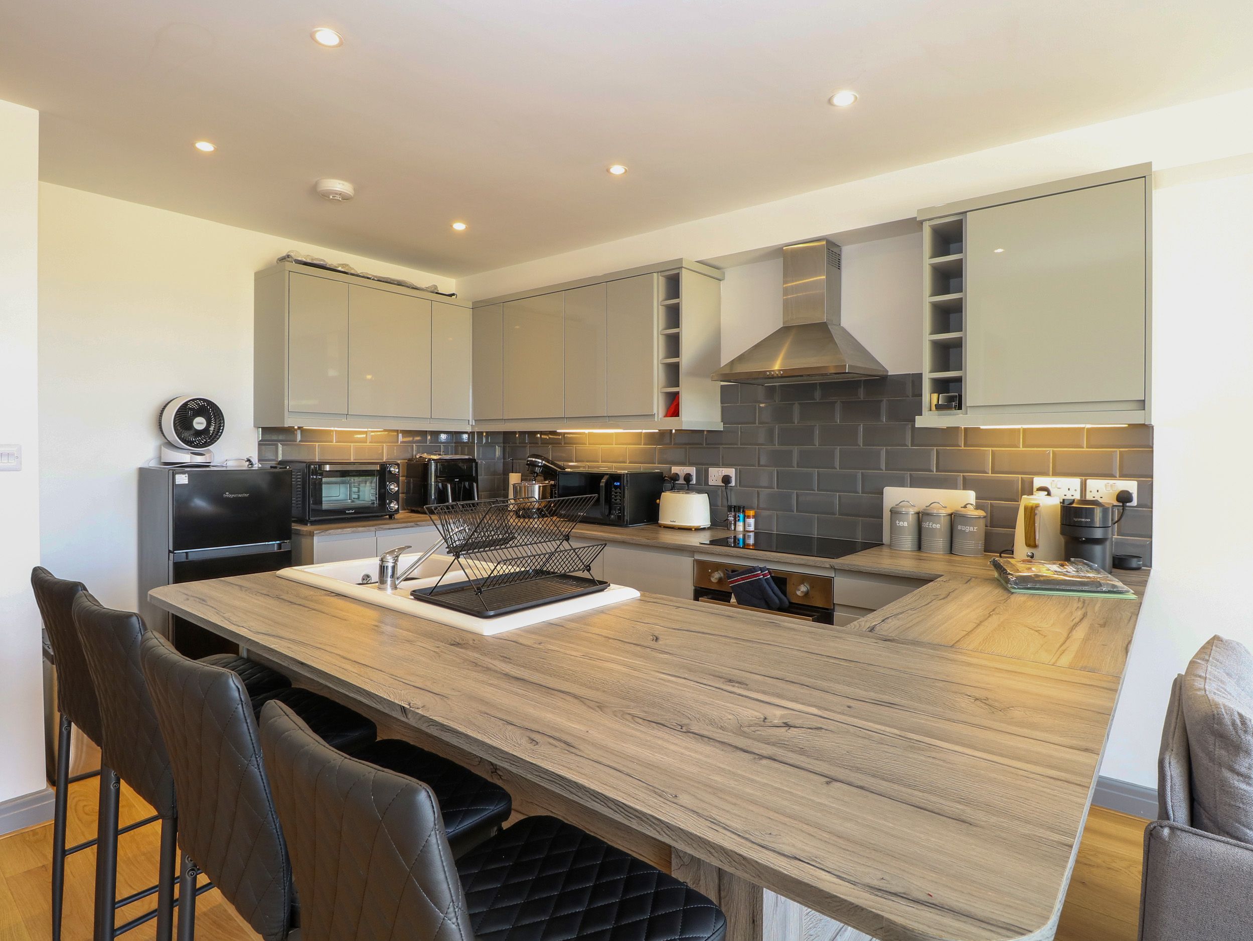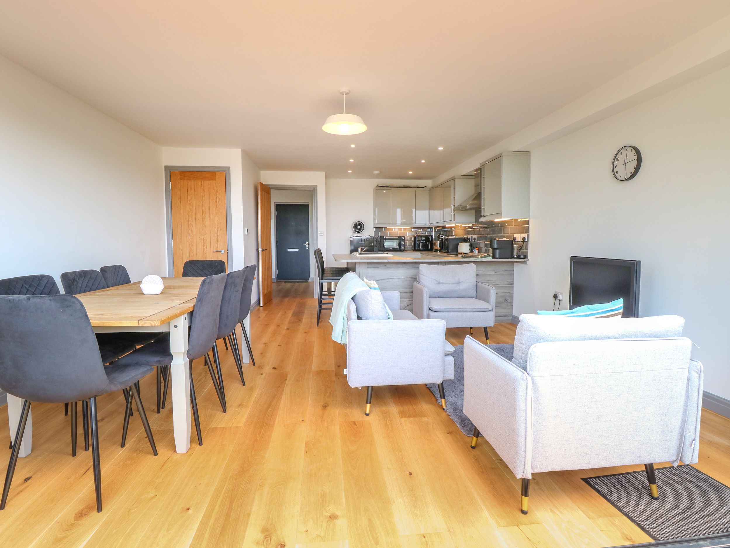 Accomodation Details Over three floors. Four bedrooms: 1 x second-floor double with en-suite with walk-in shower, basin, and WC, 2 x double, 1 x bunk bed. Bathroom with bath, shower over, basin, heated towel rail, and WC. Ground-floor shower room with walk-in shower, basin, heated towel rail, WC, and washing machine. Open-plan living space with kitchen, dining area, and sitting area