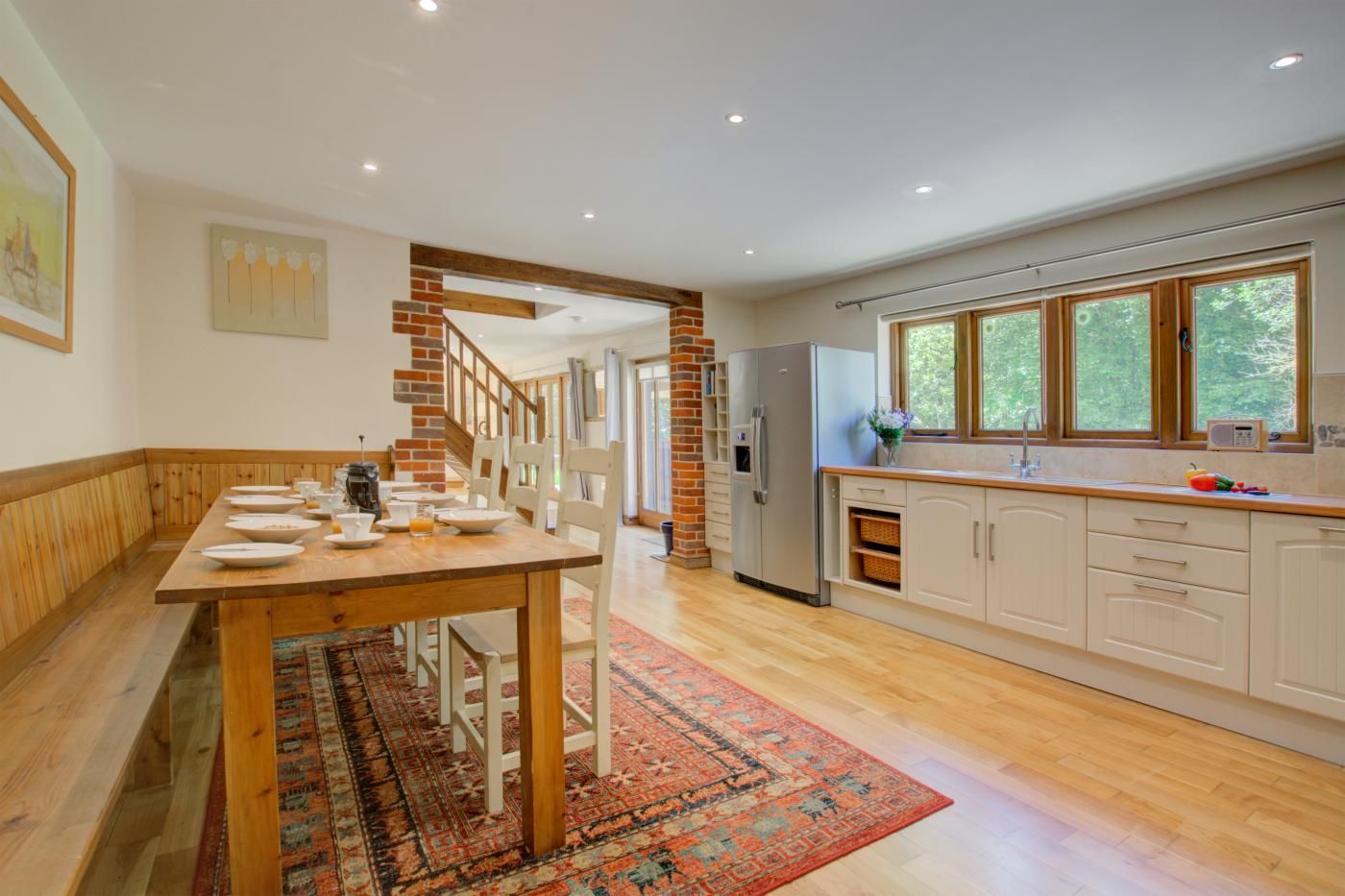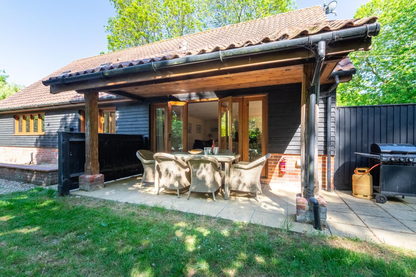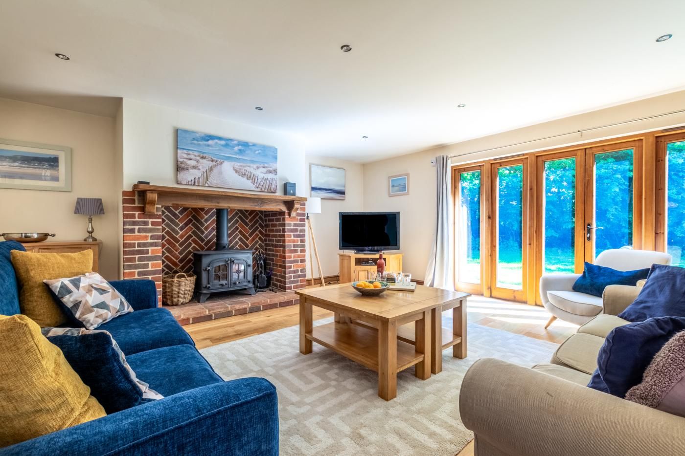 Escape to the Norfolk countryside for a tranquil retreat with up to five other guests in this charming lodge, with characterful features like a grand brick inglenook fireplace with a wood burner, wide bi-folding doors which connect the lounge to the garden, and a spacious farmhouse-style kitchen/diner.