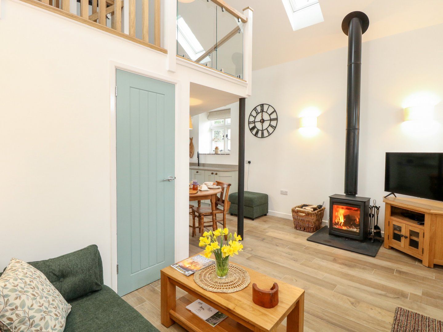 Accomodation Details One mezzanine king-size bedroom with Smart TV. Ground-floor bathroom with bath, shower over, basin, heated towel rail and WC. Open-plan living space with kitchen, dining area and sitting area with woodburning stove