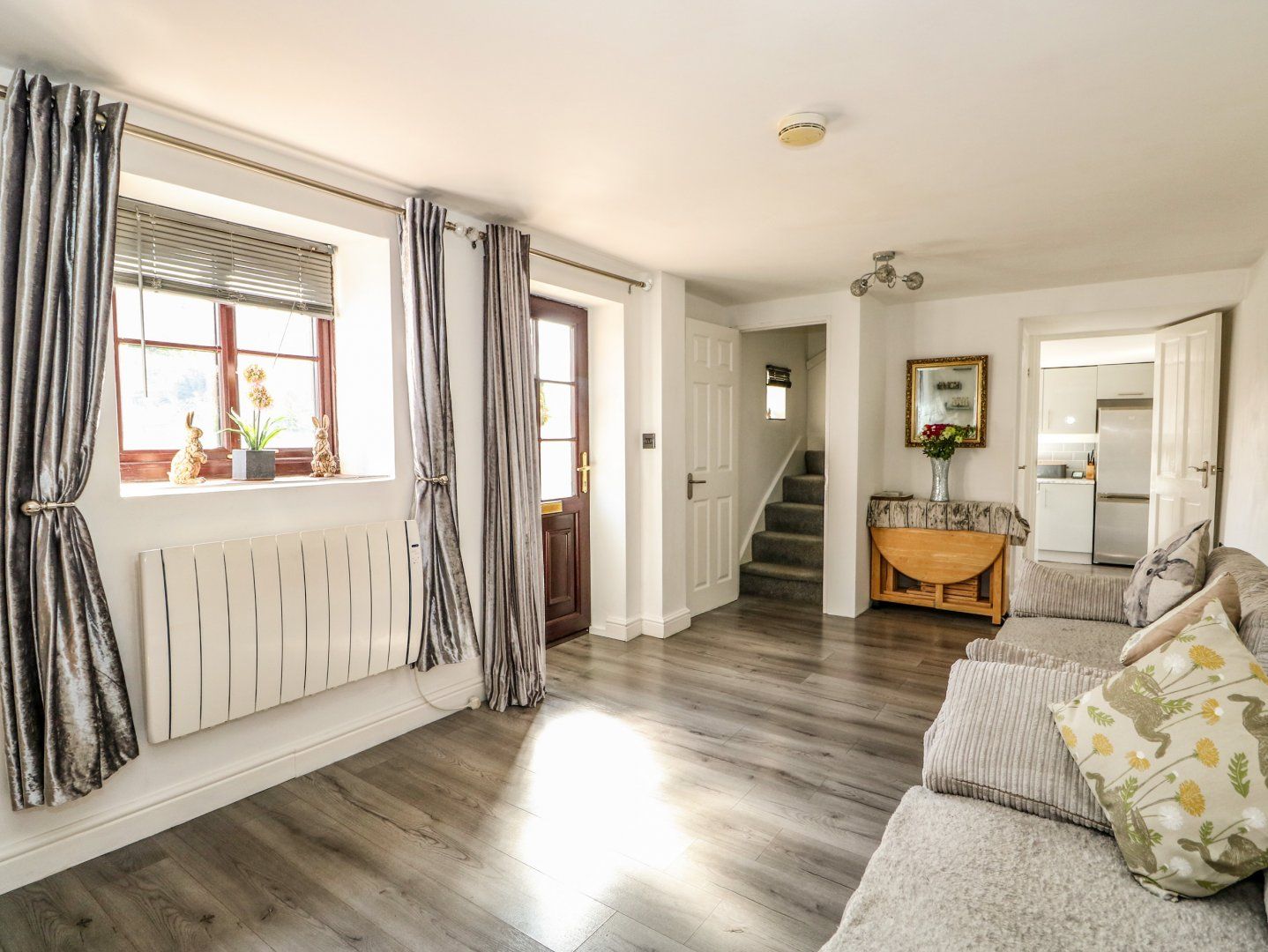 Amenities Electric central heating with woodburning stove. Electric oven and hob, microwave,fridge/freezer, washing machine, iron, ironing board and hoover. 48” TV with Sky Q Freeview , super-fast WiFi. Fuel, power and starter pack for woodburning stove inc. in rent. Bed linen and towels inc. in rent. Roadside parking for 2 cars, with additional off-road parking for 2 adjacent to property. Enclosed garden with decking, lawn and furniture. Two well-behaved pets welcome. Sorry, no smoking. Shop 3.7 miles, pub 0.1 miles. Note: The garage is not available to guests. Please note that property can only take bookings for Saturdays, including short breaks. Please note: no stag/hen or similar. Note: There is a Premier convenience store 150 yards from the property. Note: Check-in time is 4 pm
