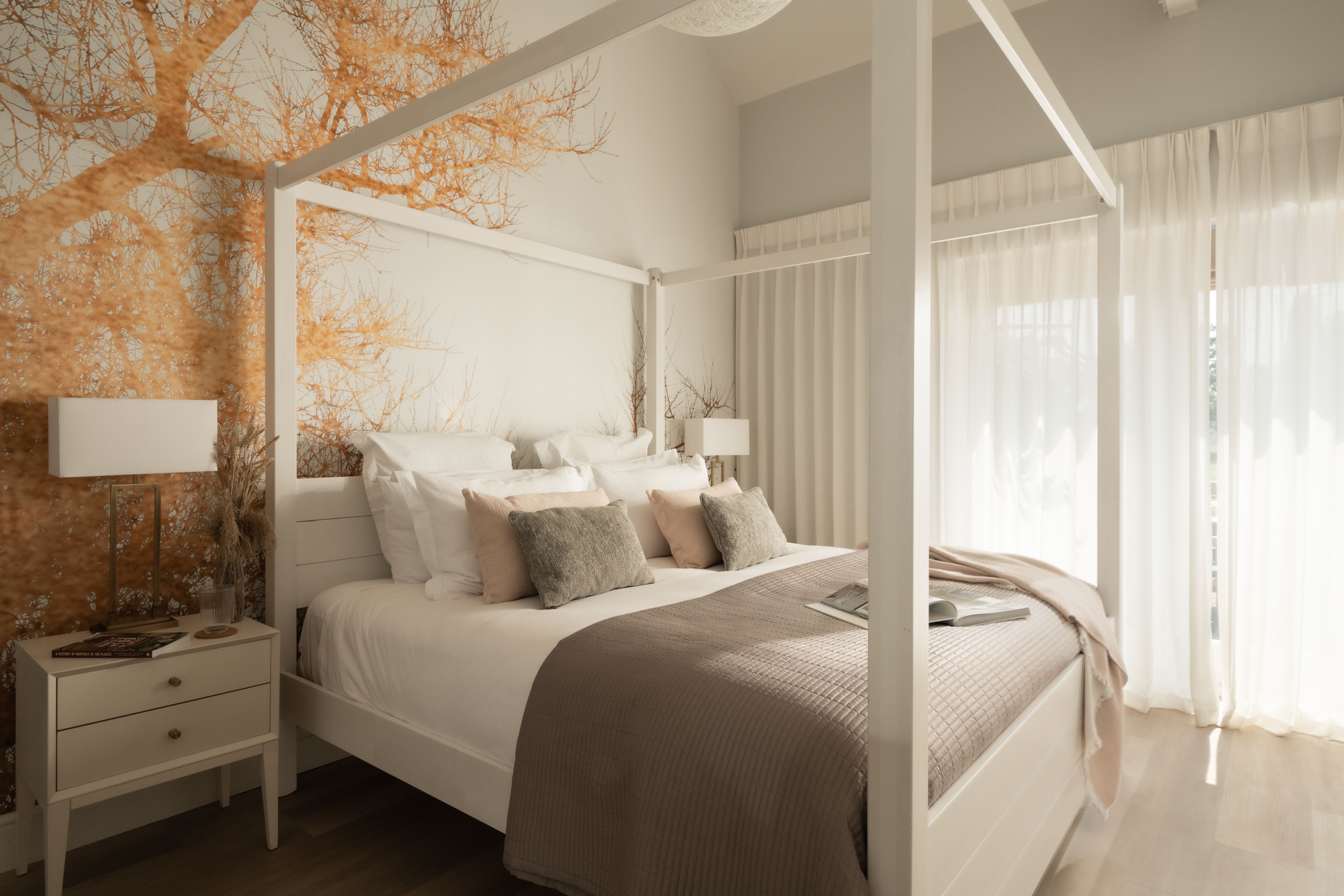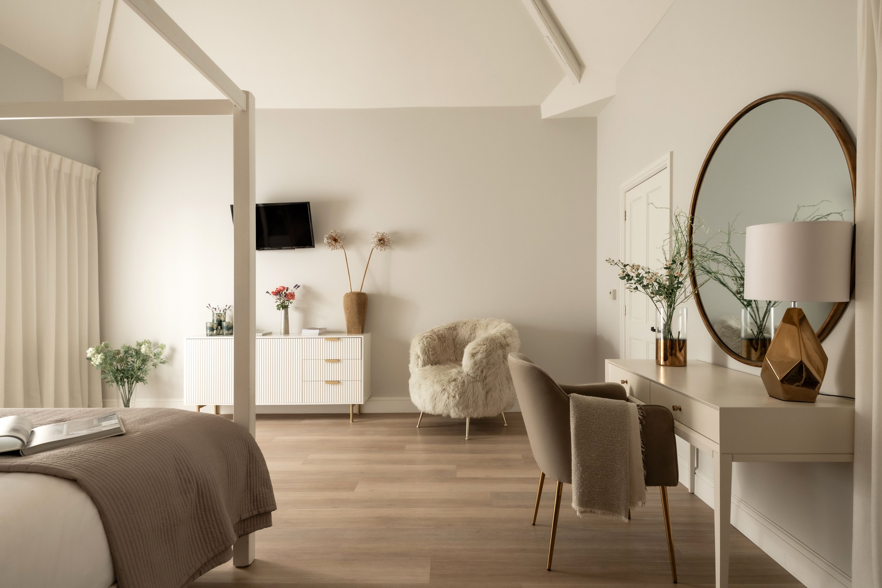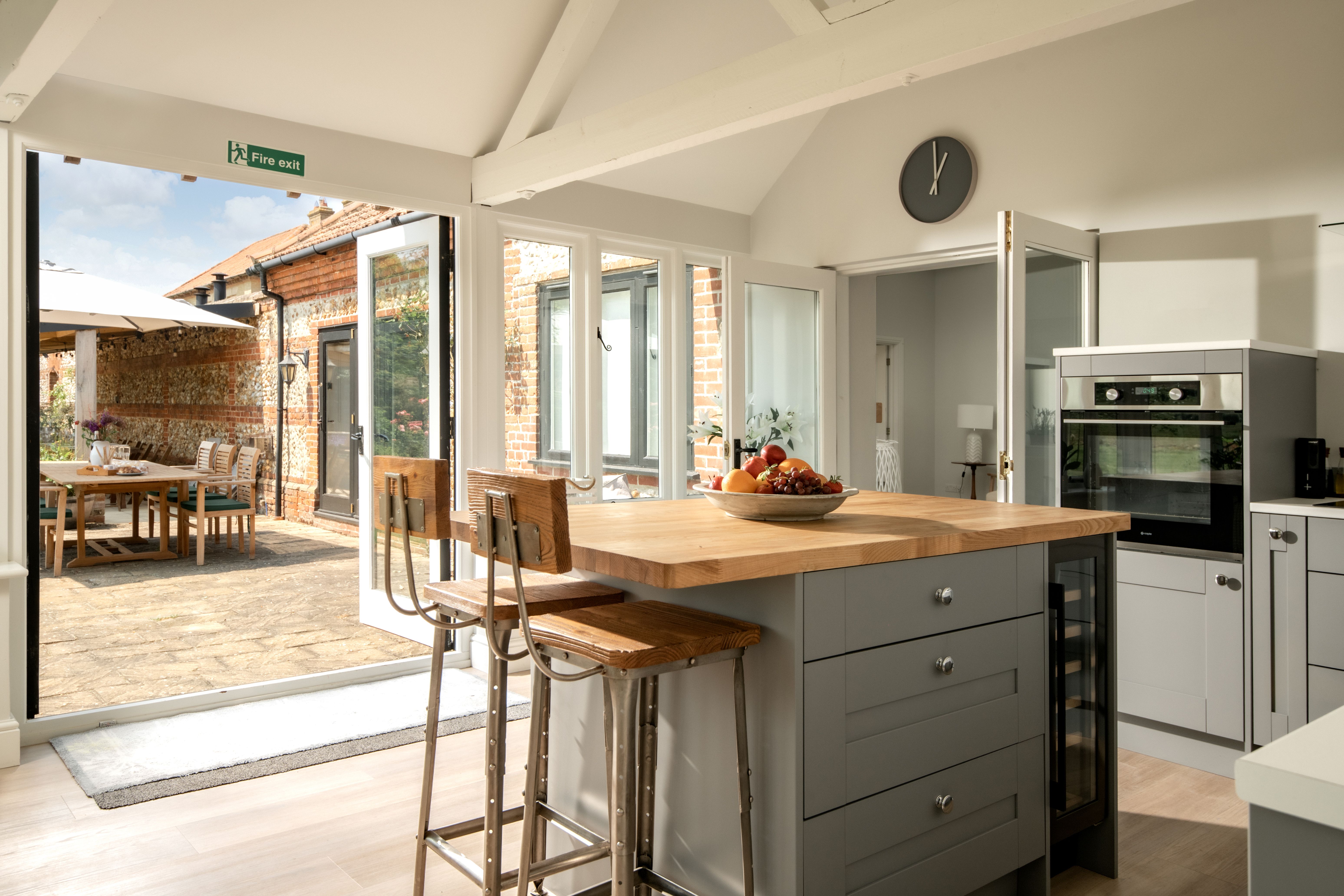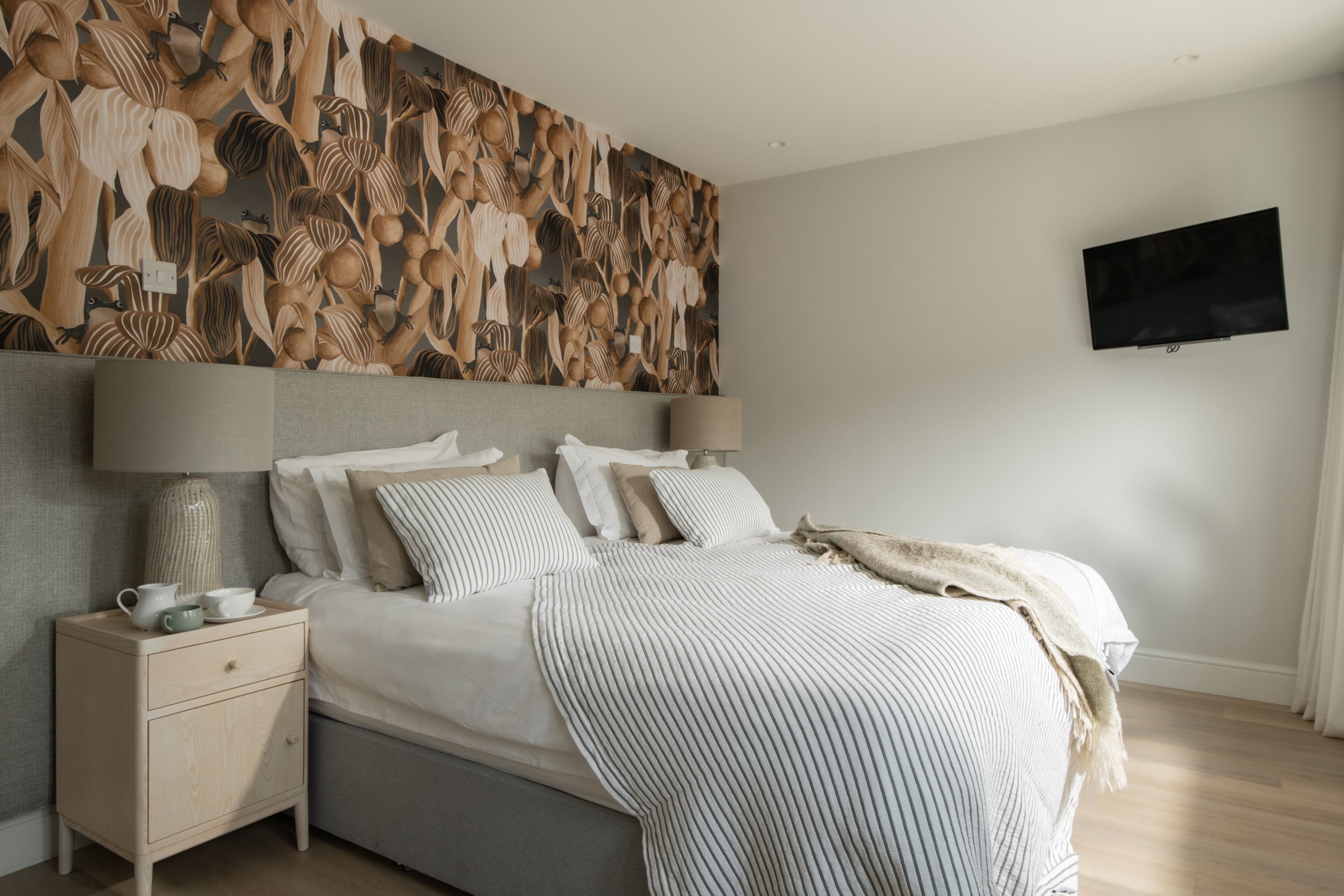 Set within 100 acres of parkland, these former stables put open countryside walks and wildlife on your doorstep. Wander across the fields to the deserted medieval village of Godwick, where a ruined church tower juts out from the ground. It’s also a half-hour drive to Wells-Next-the-Sea, a pretty seaside town in the Norfolk Coast AONB. The 19th-century stable block has been transformed into a cosy country bolthole for a family or group of friends. You can spot the village’s old church tower from your private garden, where a patio provides a place to sit in the sun and fire up the gas barbecue, and a vast lawn stretches before you. Or, head inside to the sunny kitchen diner where dining is set for the whole group. Scandi-chic interiors make for a relaxing living room, set around a traditional wood-burning stove should the weather turn chilly. Bedrooms blend in with the estate’s wonderful ladscape, with autumnal tree motifs on feature walls lulling you off to sleep. The only sounds around here are the swish of towering trees and birdsong in the morning.