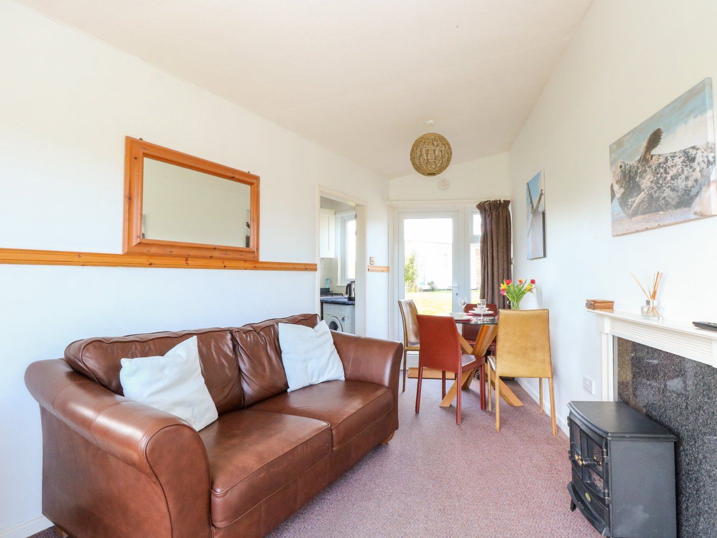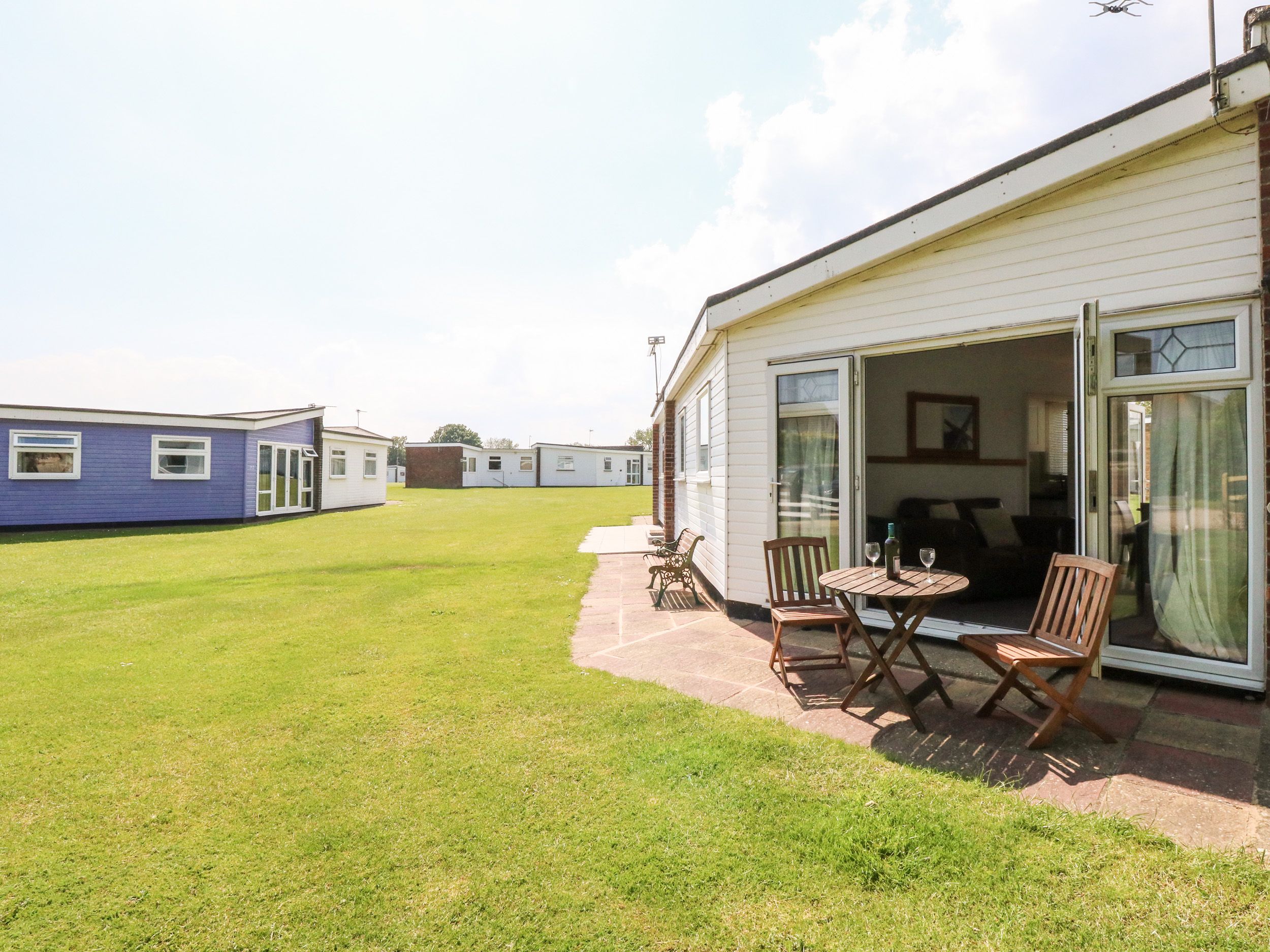 Amenities Electric fan heaters with electric fire. Oven and hob, microwave, fridge/freezer, washing machine, dishwasher and smart TV. WIFI. Fuel and power inc. in rent. Bed linen and towels inc. in rent. Off-road parking for two cars. Patio with seating and communal lawn. One well-behaved dog welcome. Sorry, no smoking. Shop 1.2 miles, pub 1 miles, beach 0.2 miles. Note: this property can only accept bookings with a minimum of 3 nights. Please note: smoke detectors are audible and visual (LED lights flash) they wouldn't wake a hearing impaired person. One of very few chalets on the estate which offers WIFI. Whilst phone signal is generally good - this does vary depending on site occupancy.