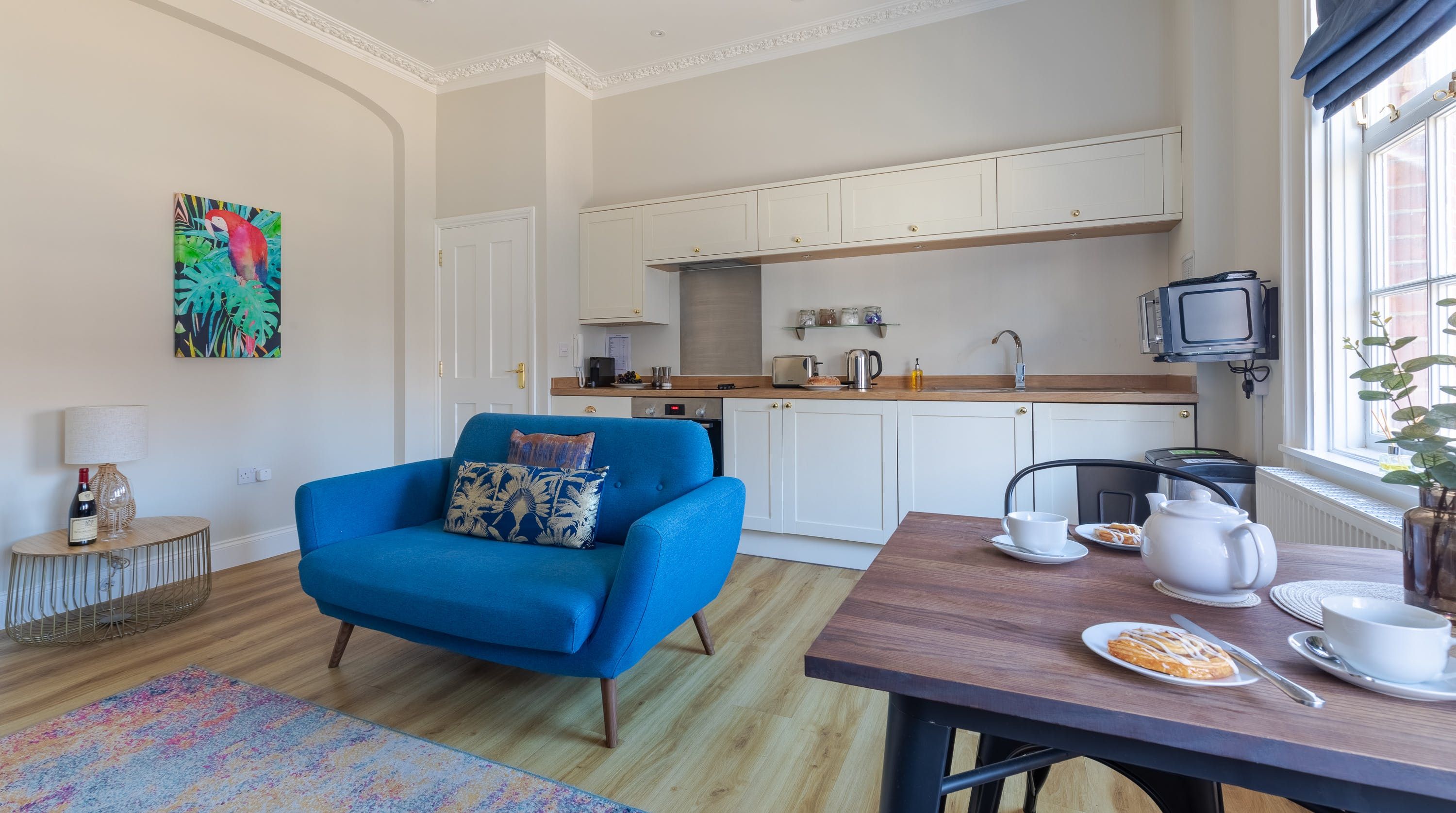 This charming apartment found in Norfolk is a fantastic rest point during your adventures away. The large windows in the living space light up every corner, allowing you to get cosy on the sofa as you open up that brand new book. Pop the TV on to binge the latest Netflix series or watch a classic on Disney+. Homecooked meals can be enjoyed by the windows with a lovely view of the surrounding buildings as you tuck into breakfast, lunch, or dinner. Head to the balcony to unwind with an energising cup of coffee or even a bottle of red – treat yourself. If you're fancying a duvet day, you can swing open the balcony door in the bedroom to feel that cooling breeze.