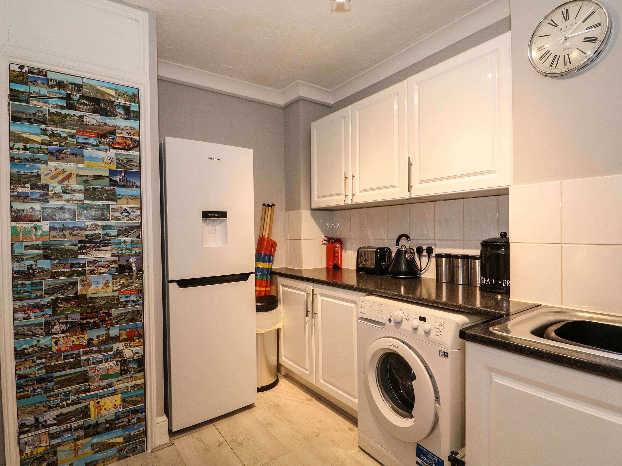 Amenities Electric central heating. Electric oven and hob, microwave, fridge/freezer, washing machine. Freeview TV, DVD player, WiFi. Fuel and power inc. in rent. Bed linen and towels inc. in rent. Off-road parking for 1 car. Patio with furniture. One well-behaved pet welcome. Sorry, no smoking. Shop, pub and beach 0.2 miles.