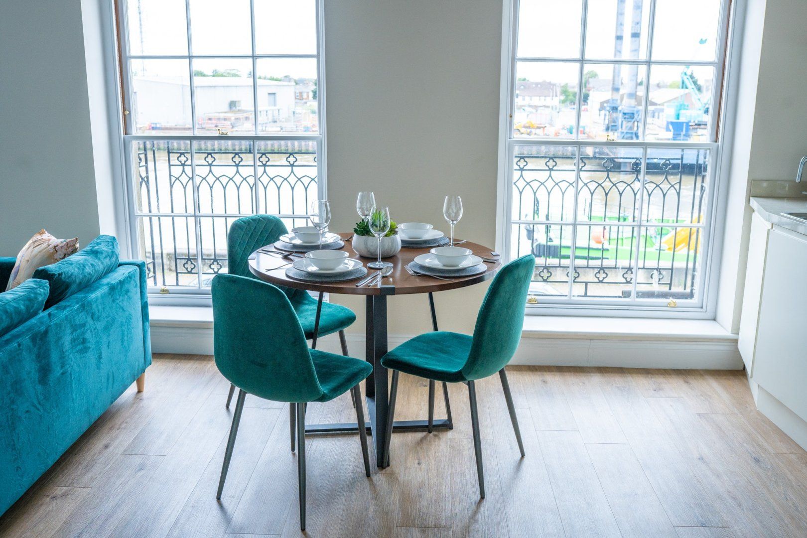 Great Yarmouth has been enticing holidaying Brits with its seaside charms since the 1700s. Housed in an Edwardian building overlooking the River Yare, this one-bedroom penthouse apartment is here to show you exactly why. Step inside, and despite the largely modern interior, there's still plenty of period charm on show. Take a seat on the blue velvet sofa beneath the exposed beam ceilings, gaze out at the river through the elegant sash windows, or take a seat on the ledge behind the stunning wrought-iron railings. Thanks to its many windows, the open-plan living room/kitchen is well illuminated, with a minimalist modern kitchen on hand for any budding chefs. A trip to Great Yarmouth is a trip back in time to the heyday of the British seaside resort. In addition to the requisite stretch of sandy beach, there's a Pleasure Beach for that nostalgic fairground atmosphere, the Hippodrome Circus for retro seaside shows, and the Elizabethan House Museum filled with centuries-old furniture, clothing and even armour. Slightly further afield, explore the beauty of the Norfolk Broads, or visit the charming cathedral city of Norwich.
