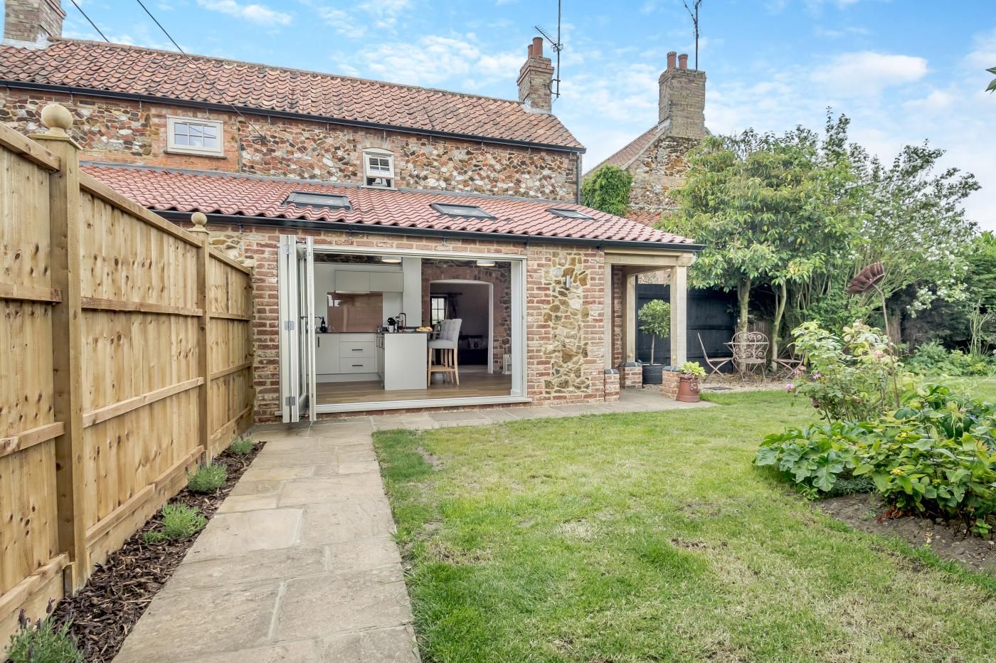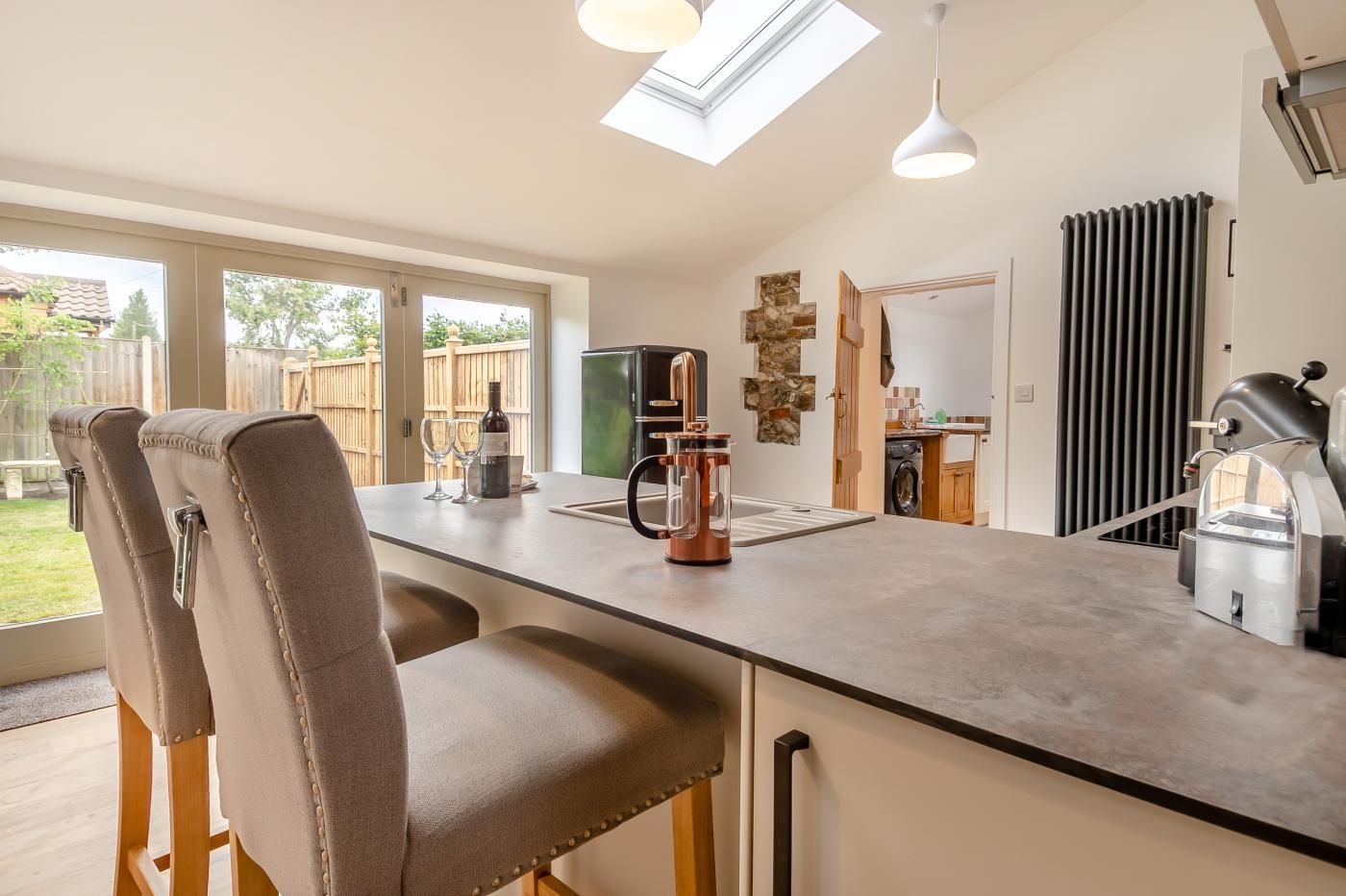 Carrstone Cottage is a detached former farmworkers' cottage that is now newly refurbished with a fantastic open plan kitchen with a brick archway opening into a family dining room.