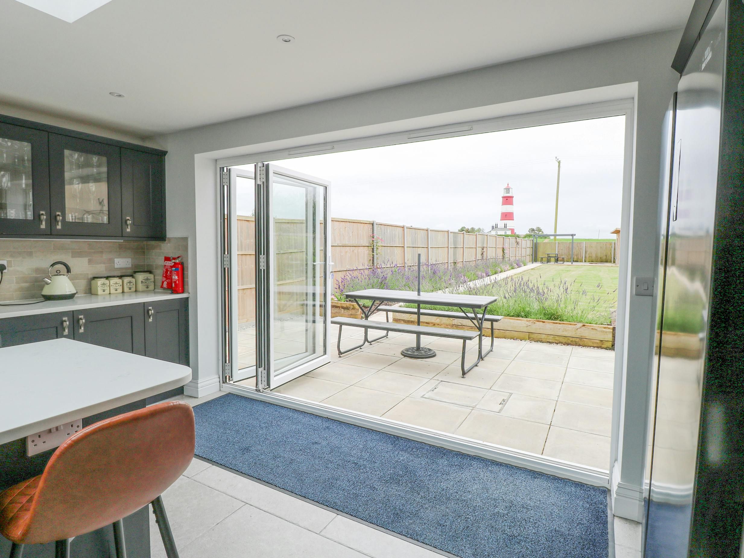 A splendid spot for a seaside break, this home is ideal for a family. It’s in the picturesque village of Happisburgh, with Happisburgh Beach a stone’s throw away. Admire sea views and breathe in that fresh coastal air from the garden, where you can spot a colourful lighthouse. The open-plan kitchen and dining space is the heart of the home, perfect for spending time together – fish and chips, anyone? After dinner, take your drinks to the games room for an evening of pool, or curl up in the cosy sitting room.
