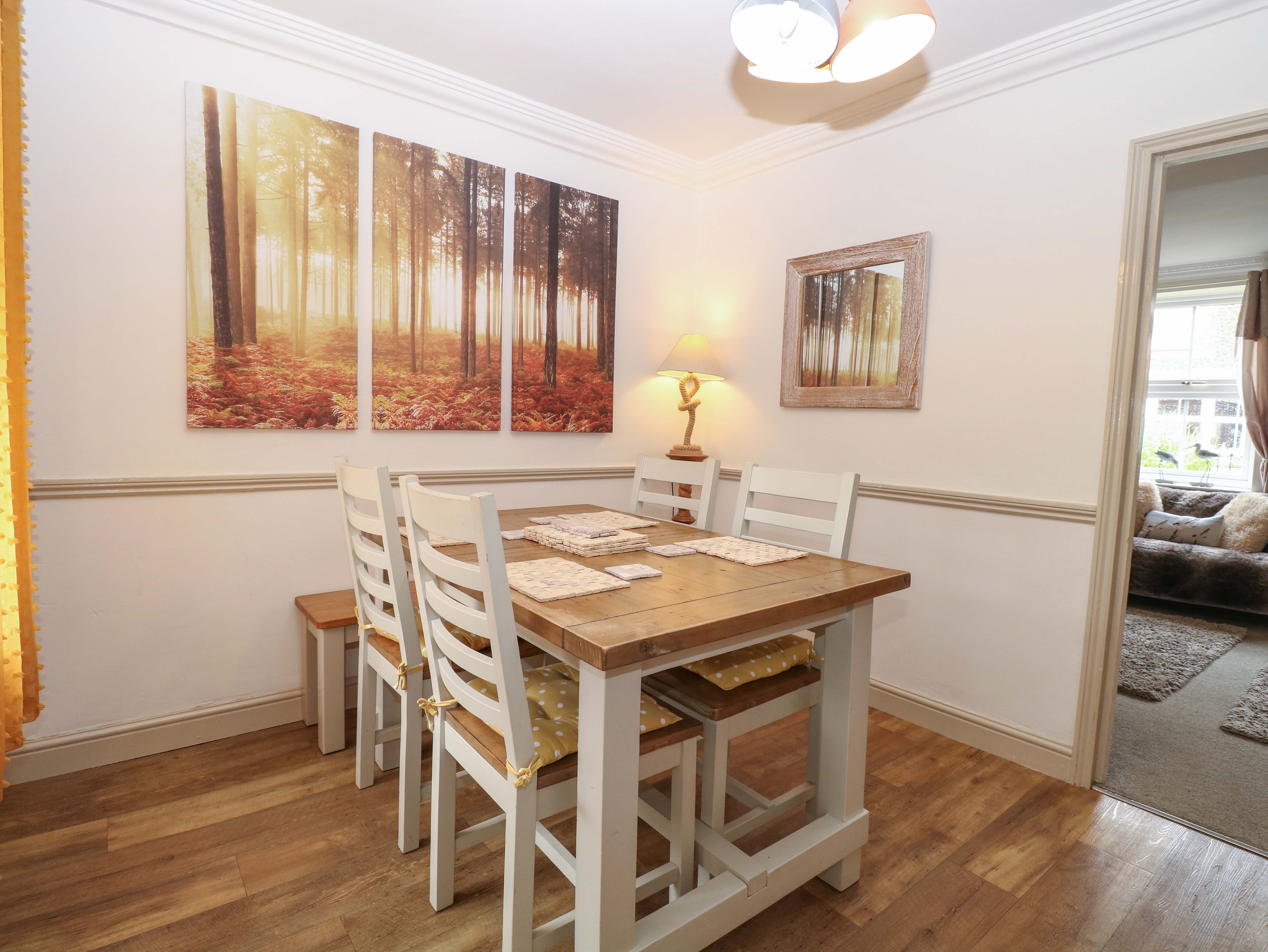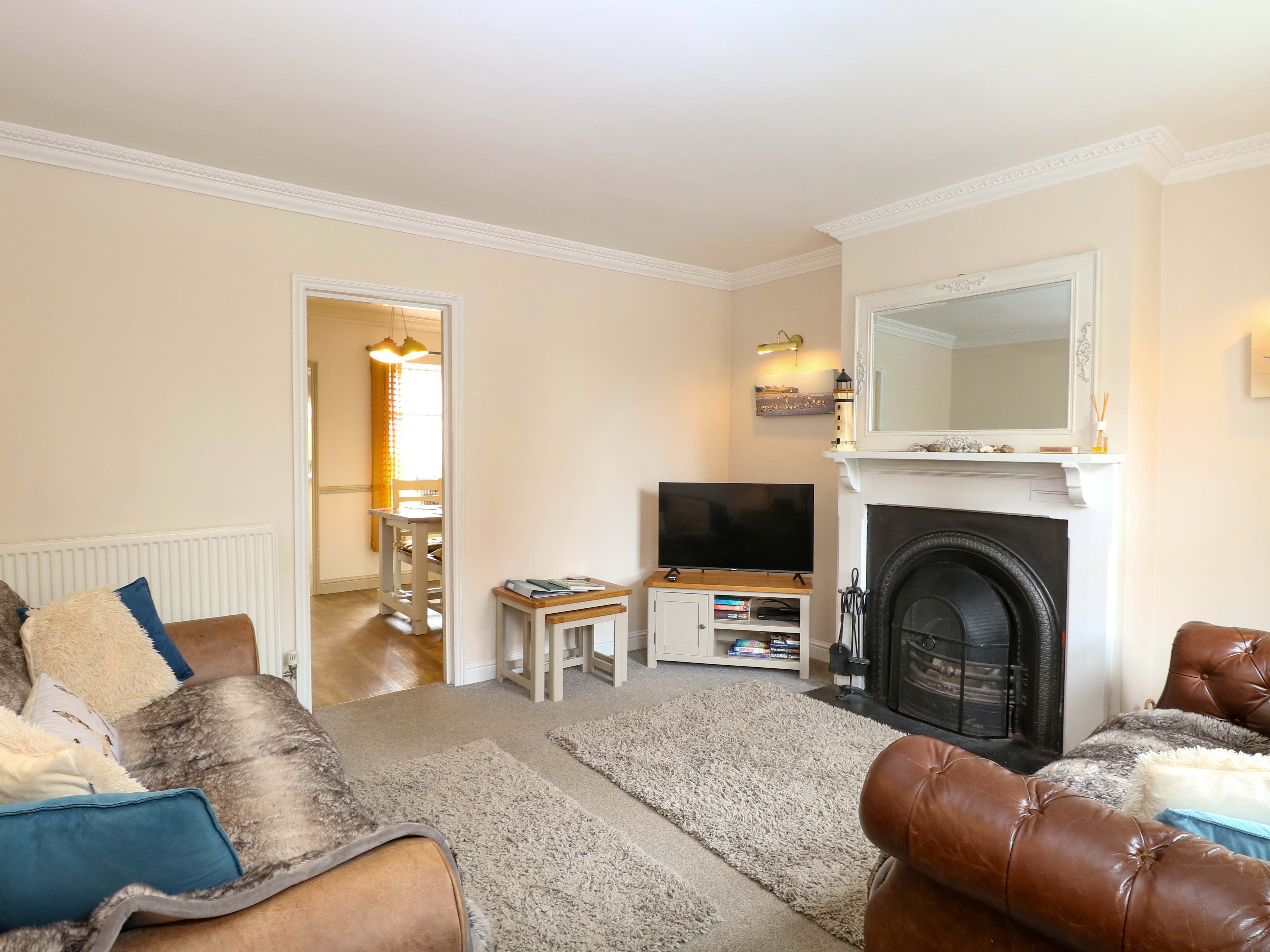 Amenities Gas central heating and open fire. Electric oven and hob, microwave, washing machine, dishwasher, fridge/freezer, TV with Freesat, DVD, Wii, WiFi, selection of books, games and DVDs. Fuel, power and starter pack for open fire inc in rent. Bed linen and towels inc in rent. Travel cot and highchair on request. Off road parking for 1 car but access can be limited at times so not guaranteed. Enclosed garden with patio furniture and summerhouse with furniture. Two well-behaved pets welcome. Sorry, no smoking. Shop, pub and restaurant 5 mins walk. Coast and beach 1 mile. Note: There are steep stairs in the property. Please Note: This property doesn't accept any other check in day than a Saturday only