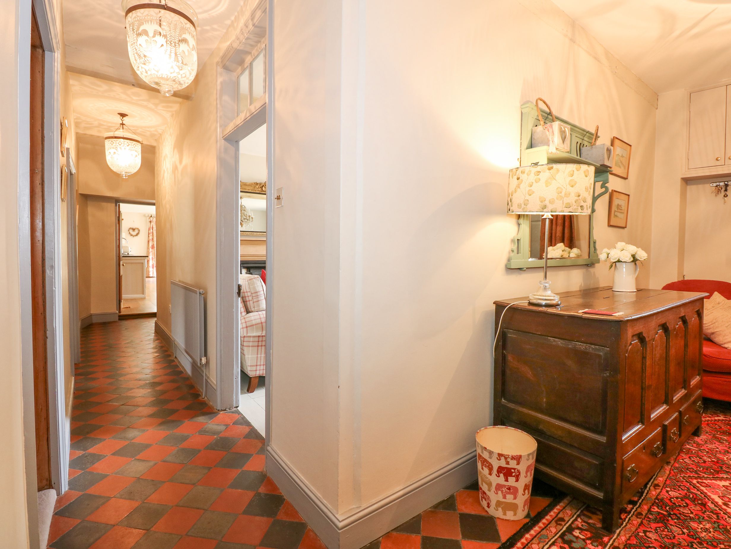 Accomodation Details Over three floors. Five bedrooms: 1 x California-king-size with en-suite walk-in shower, basin, and WC (reachable via a flight of stairs from bedroom), 1 x king-size with en-suite walk-in shower, basin, and WC, 1 x double, 1 x second-floor twin with en-suite walk-in shower, basin, and WC, 1 x single. Bathroom with bath, shower over, basin, and WC. Cloakroom with basin and WC. Kitchen/diner. Utility. Sitting room with open fire. Snug
