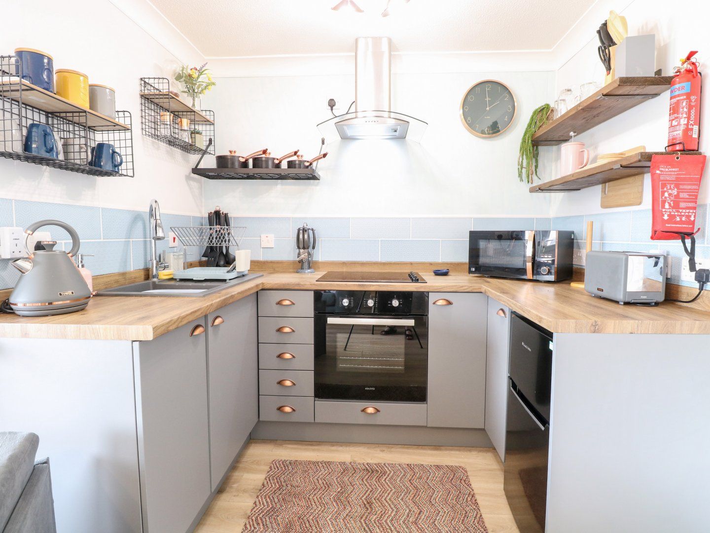 Amenities Pay as you go electric heating (first £15 covered). Electric oven and hob, microwave, fridge/freezer, kettle, toaster. TV. Fuel and power inc. in rent. Bed linen inc. in rent. Off-road parking available. Communal lawn. One well-behaved dog welcome. Sorry, no smoking. Shop and pub 0.2 miles, beach 0.4 miles. Note: Pets welcome at a charge of £25 per dog. Note: Towels are not provided