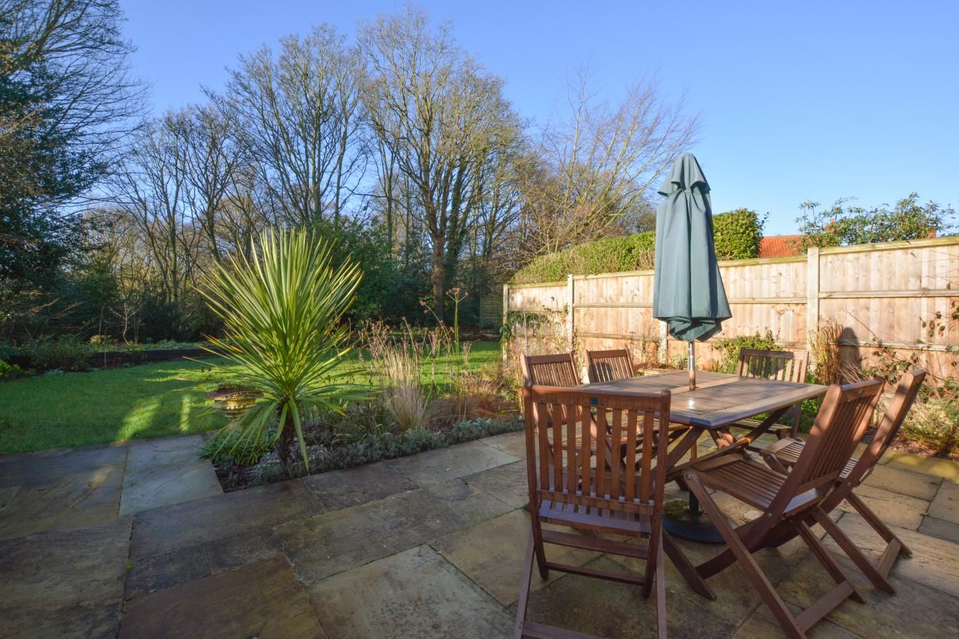 Soak up the sunshine and watch the birds in the trees as you relax in the leafy garden of this cottage on the edge of Holt.