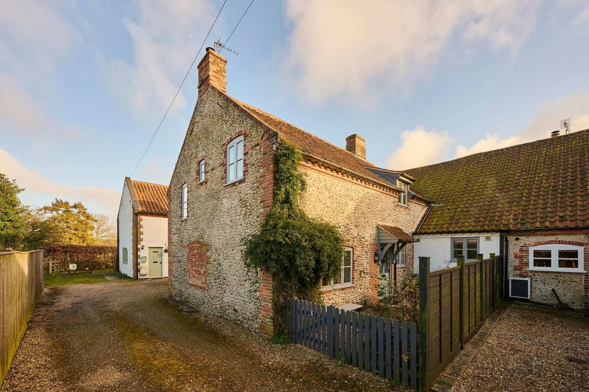 This Grade II listed cottage in Holt contains centuries of history within its walls. Built as a workhouse in 1779, the traditional brick-and-flint exterior creates the perfect first impression – as does the stylish living room once you step inside. Curl up by the fireplace, gather for family meals in the rustic kitchen, or enjoy a quiet cuppa or glass of wine in the courtyard garden. The location is just as appealing. A short stroll takes you into the heart of Holt, with its independent shops and quaint eateries, and the Norfolk Coast is only a quick drive away. Characterful, welcoming, and well-placed – no wonder it caught our eye.