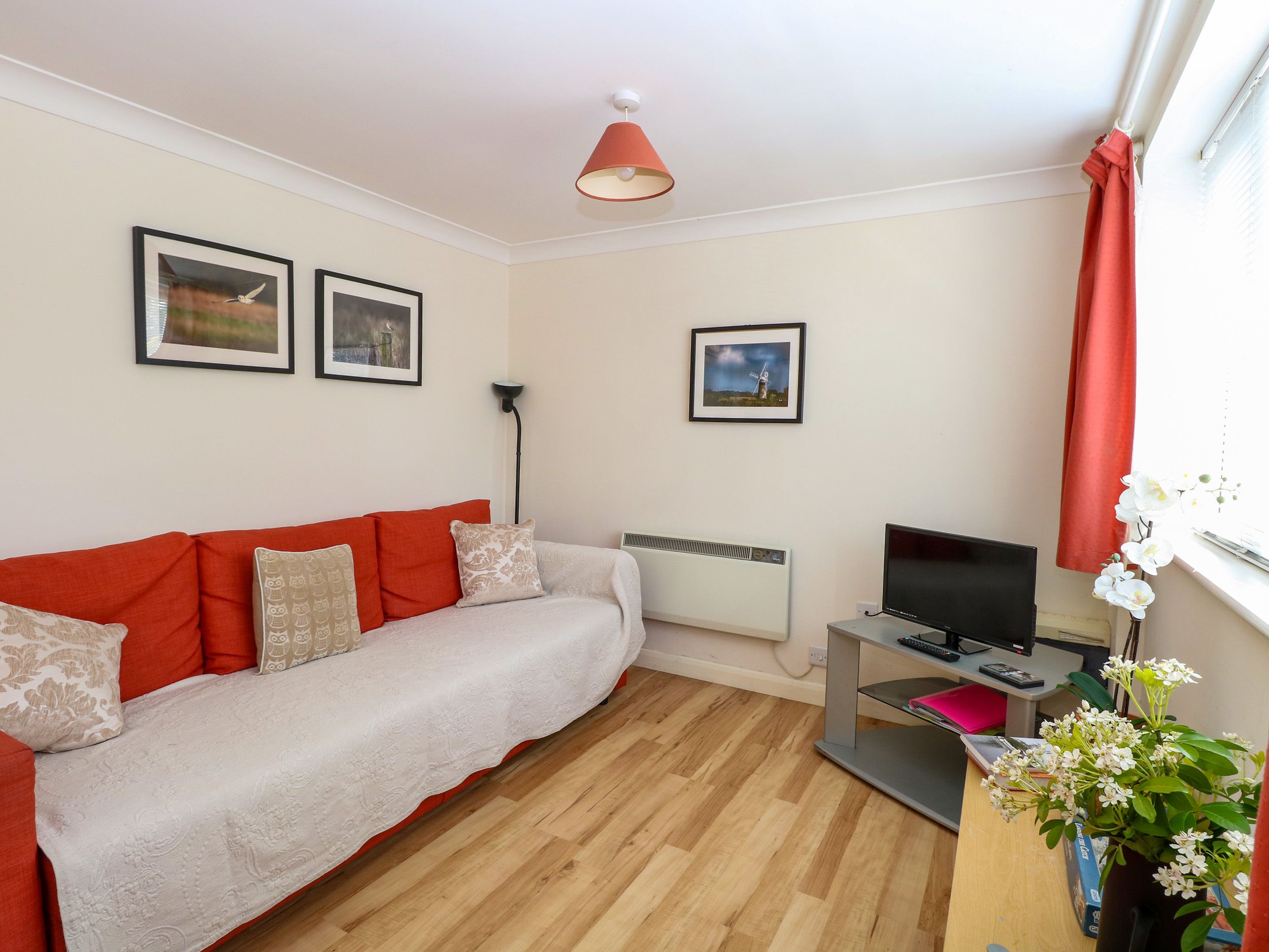 Holiday home Paws-A-While, a single-storey abode consists of an open-plan living space including a kitchen with an electric oven and hob, microwave with grill, fridge/freezer, washing machine, dining area, and sitting area with a sofa bed and TV. The bedroom consists of one king-size (zip/link) with en-suite walk-in shower. Outside, there is an enclosed side patio with furniture and off-road parking for one car. Two well-behaved dogs welcome. Sorry, no smoking. Shop and pub 0.8 miles. WiFi, fuel, power, bed linen and towels are all included in the price. Enjoy a trip to Norfolk by booking Paws-A-While. Note: Although the road is not a main road next to property, during peak times it can be busy, and may be some noise. Note: check-in from 1pm, check-out by 10am. Note: There is a step up to property, please take care. Please note: This property accepts stays with a minimum duration of 3 nights.