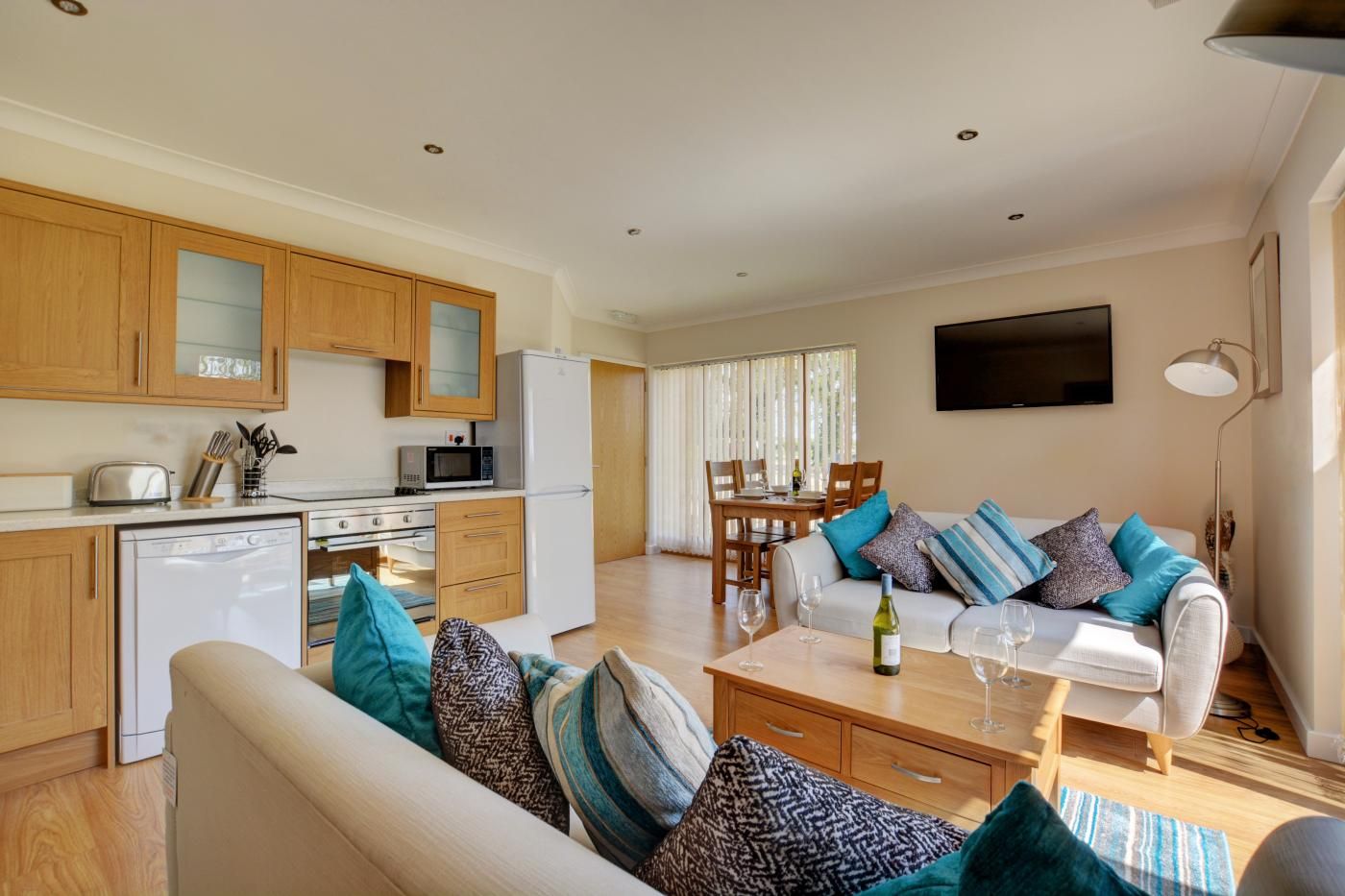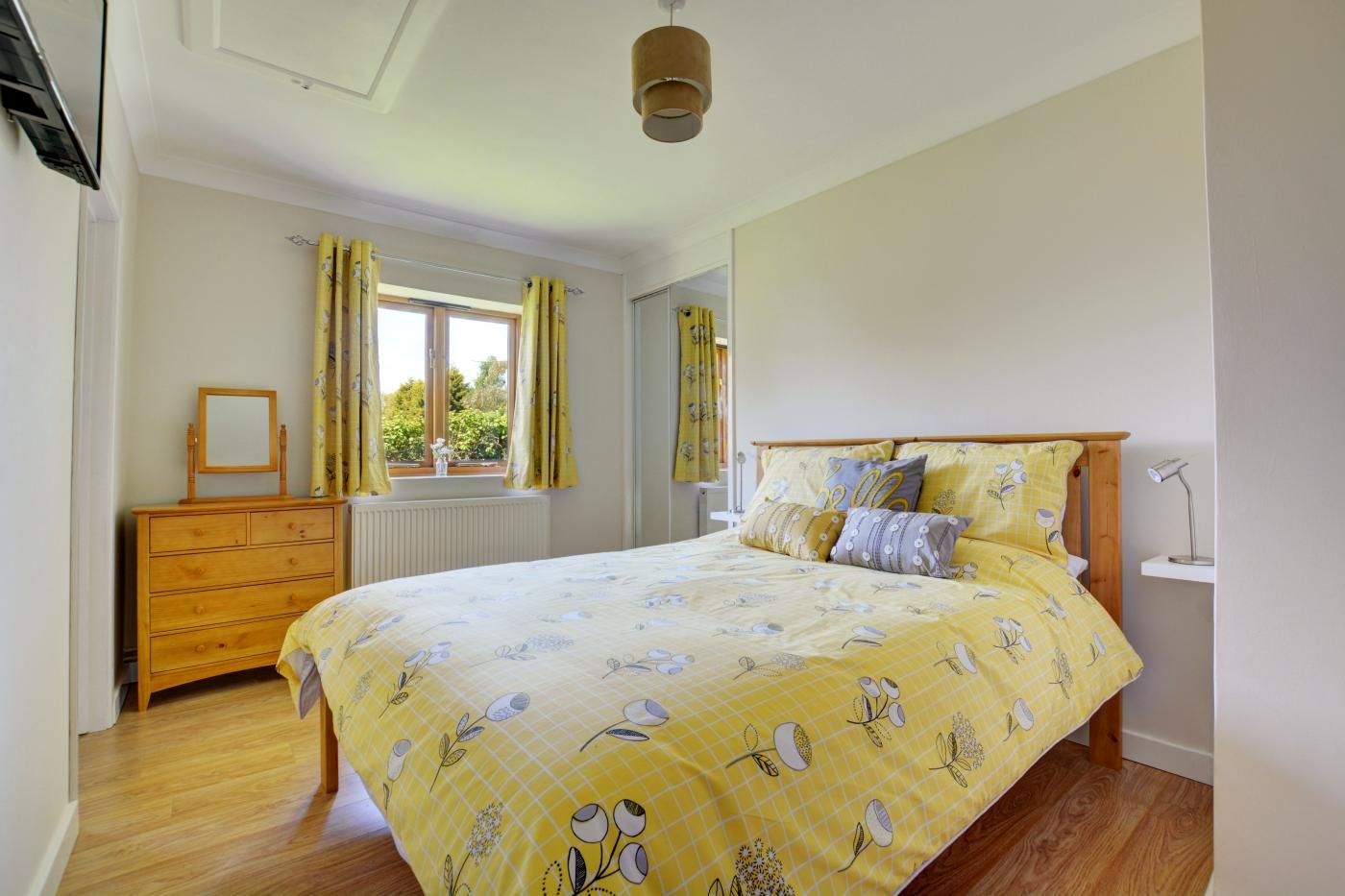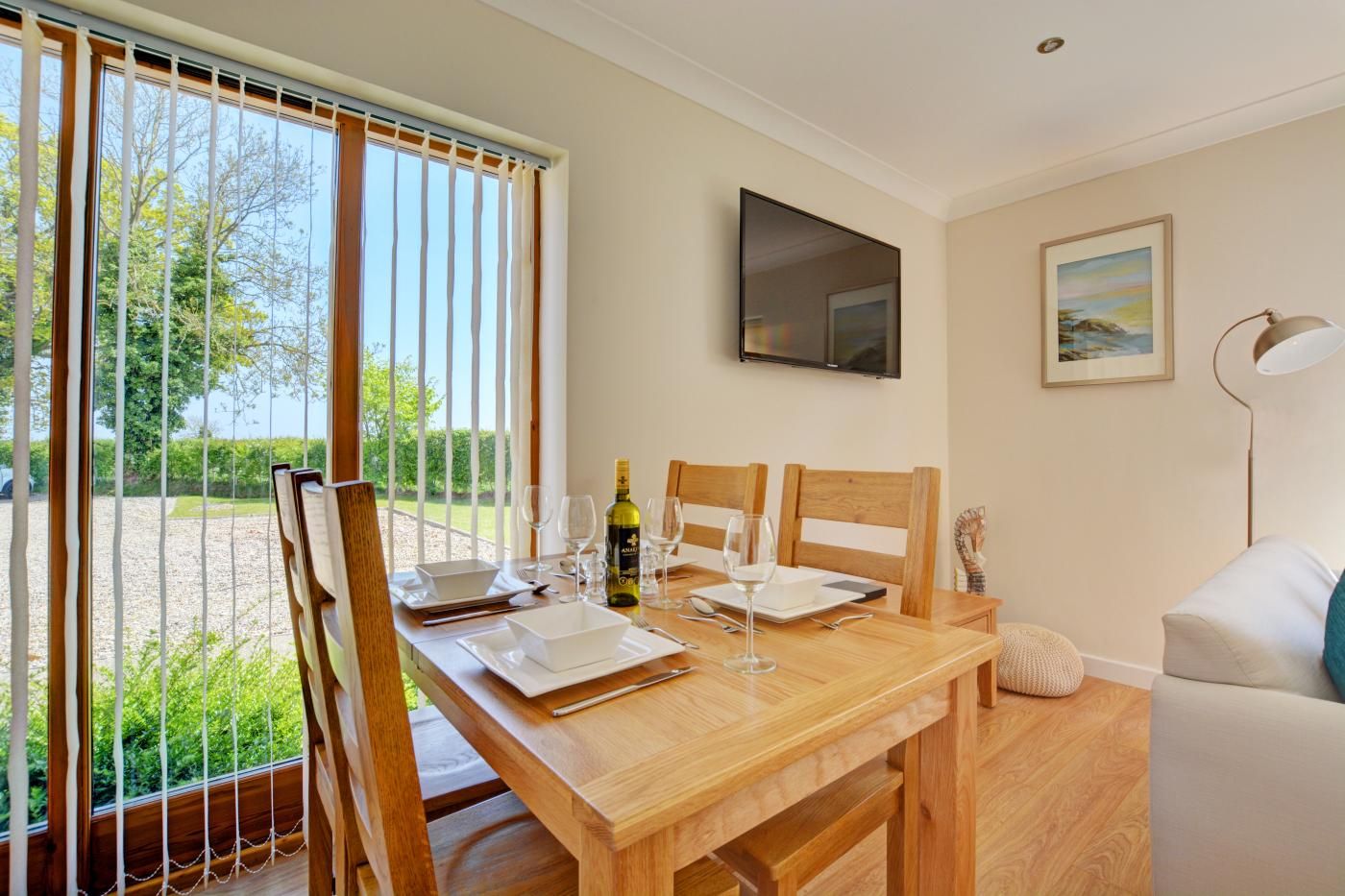 After exploring your surroundings, no better welcome is the light-filled open-plan lounge/kitchen/diner, which beckons you to relax on the comfy sofas whilst admiring views across the rolling countryside or watch the smart TV, cook up a storm in the contemporary kitchen and enjoy making special family memories seated around the rustic dining table. As day turns to dusk and you can’t resist the call of bedtime, you have two beautifully presented bedrooms which feature lovely views to retire to for a well-earned rest before tomorrow’s adventure.
