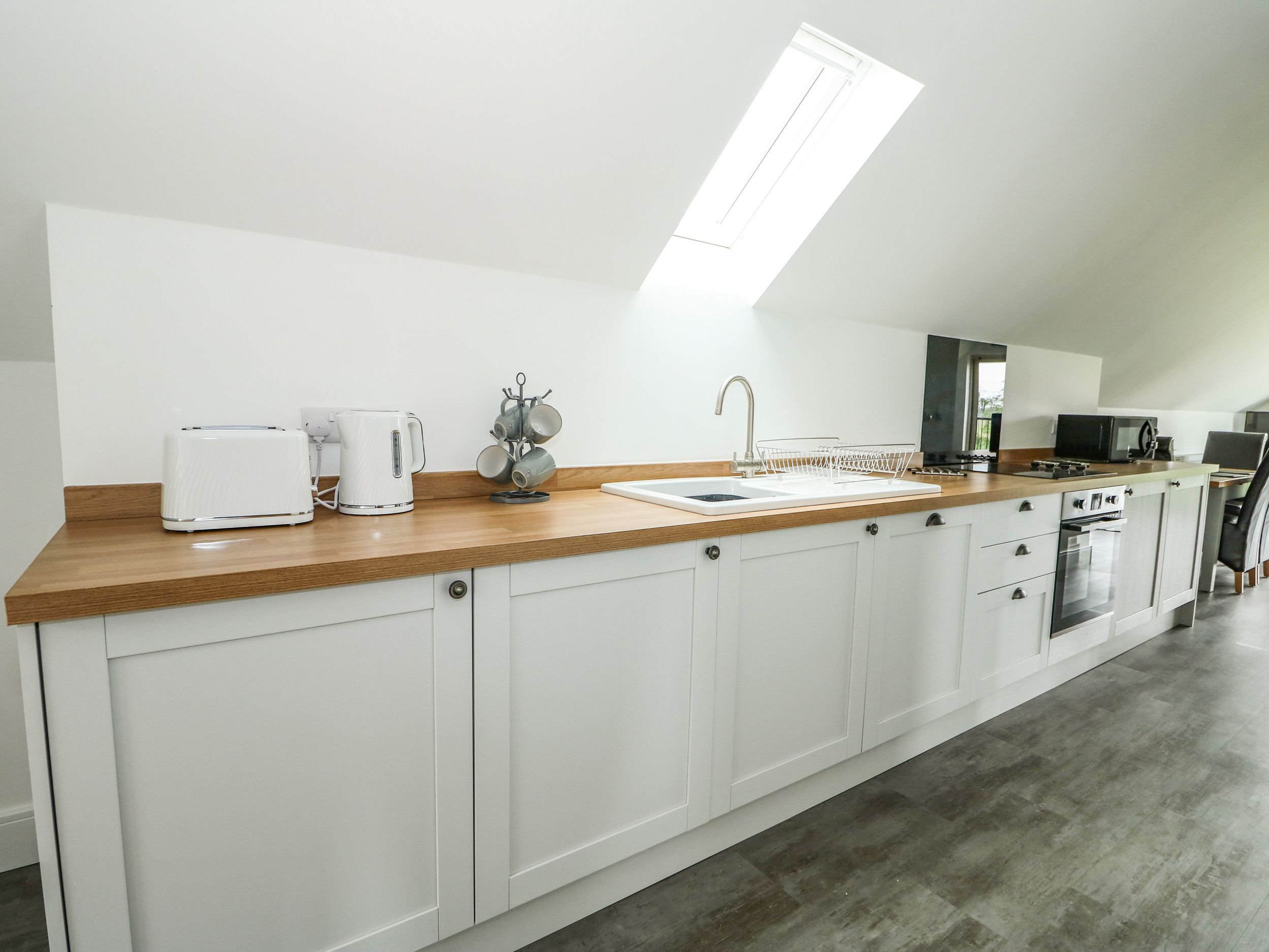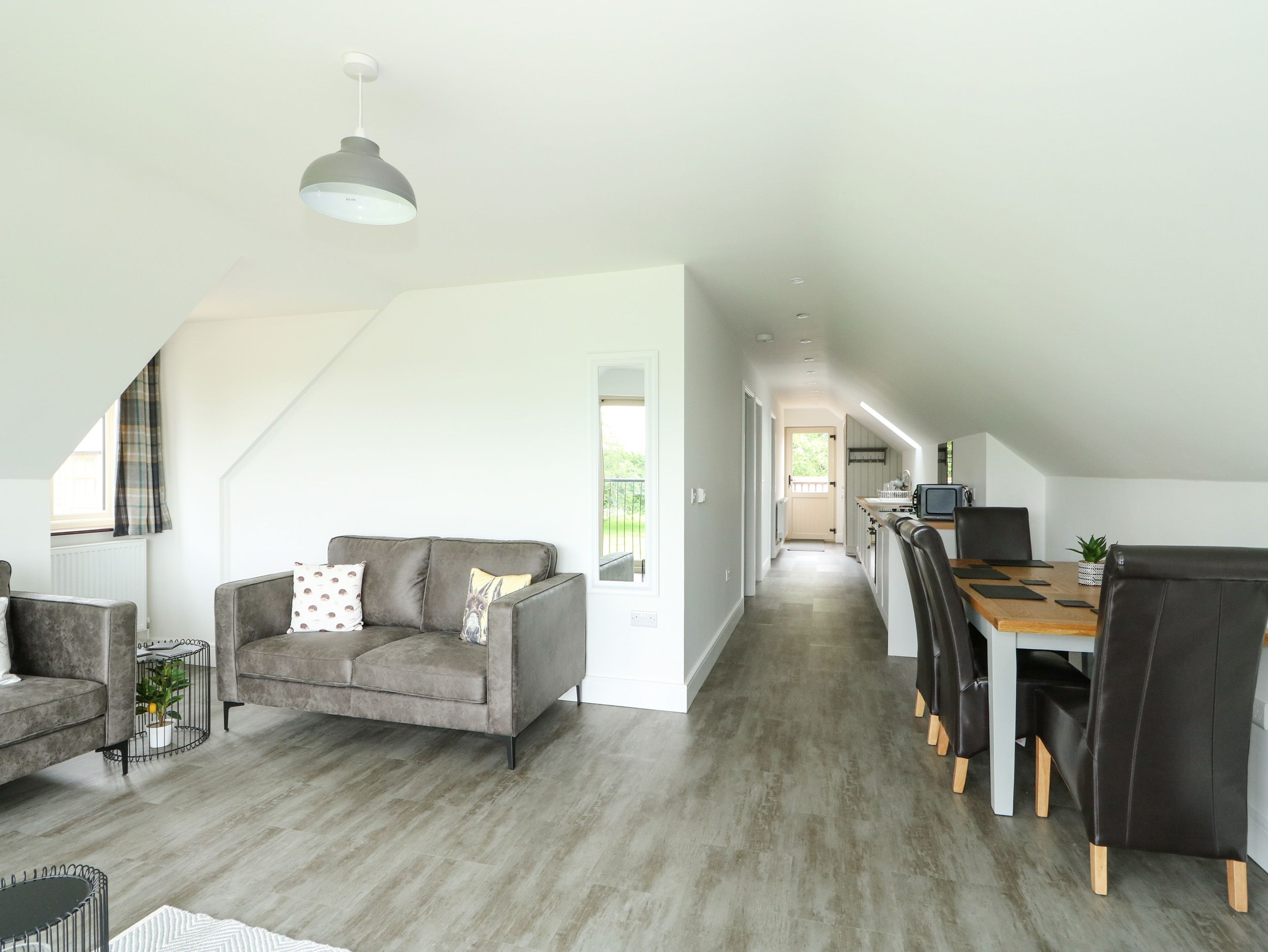 Accomodation Details First-floor. Two bedrooms: 1 x double, 1 x twin. Shower room with walk-in shower, basin, heated towel rail and WC. Open-plan living space with kitchen, dining and sitting area