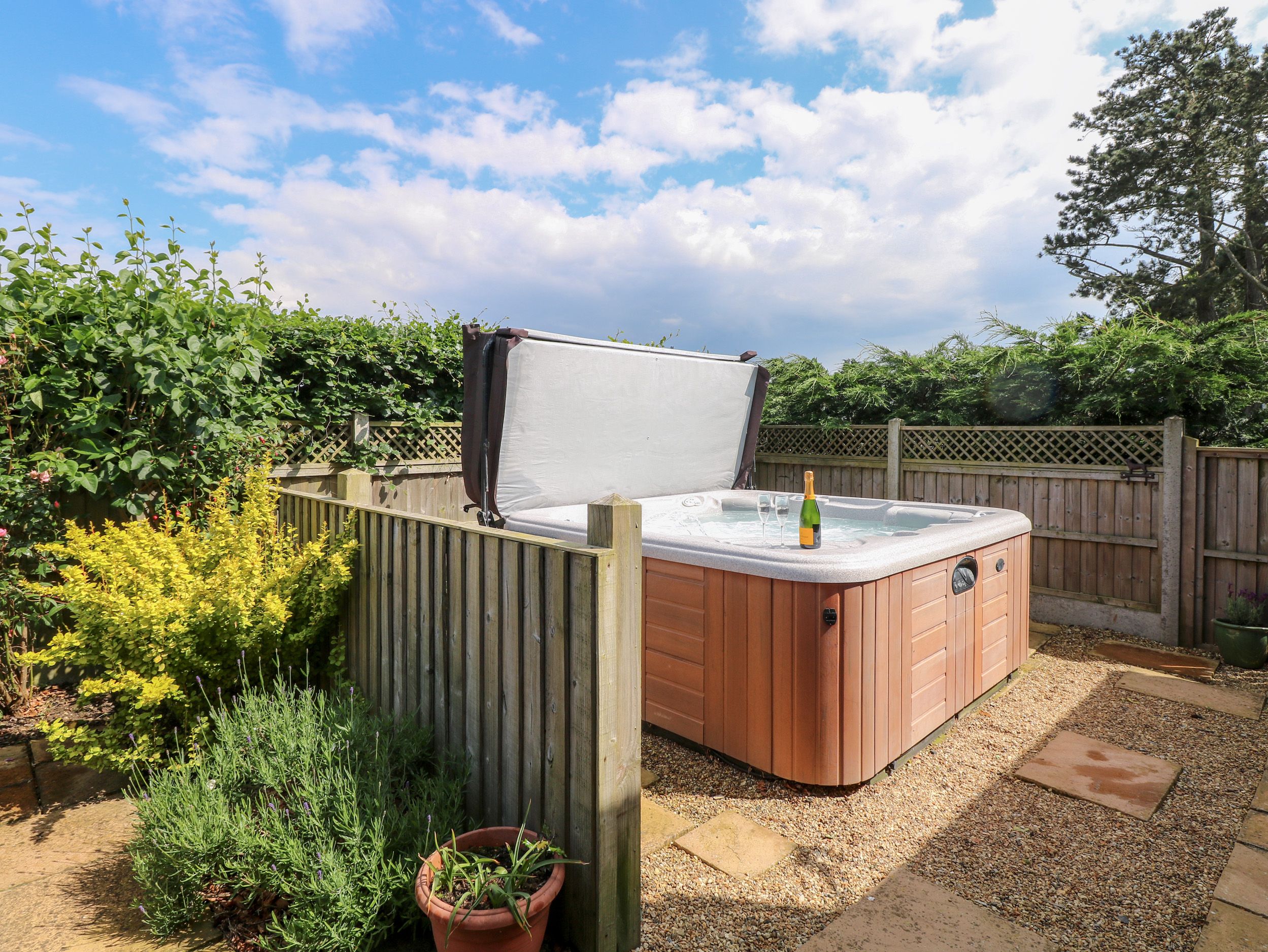 Amenities Central heating. Oven and hob, microwave, fridge, airfryer, tessimo coffee machine, TV, selection of games, welcome pack on arrival. Fuel and power inc. in rent. Bed linen and towels inc. in rent. Off-road parking one car. Enclosed private patio with furniture and hot tub. Balcony with furniture. One dog welcome. Sorry, no smoking, no electric car charging. Shop 1.4 miles, pub 1.3 miles. Note: This property is not suitable for children. Note: The property is near a main road but set back so some associated noise may be heard