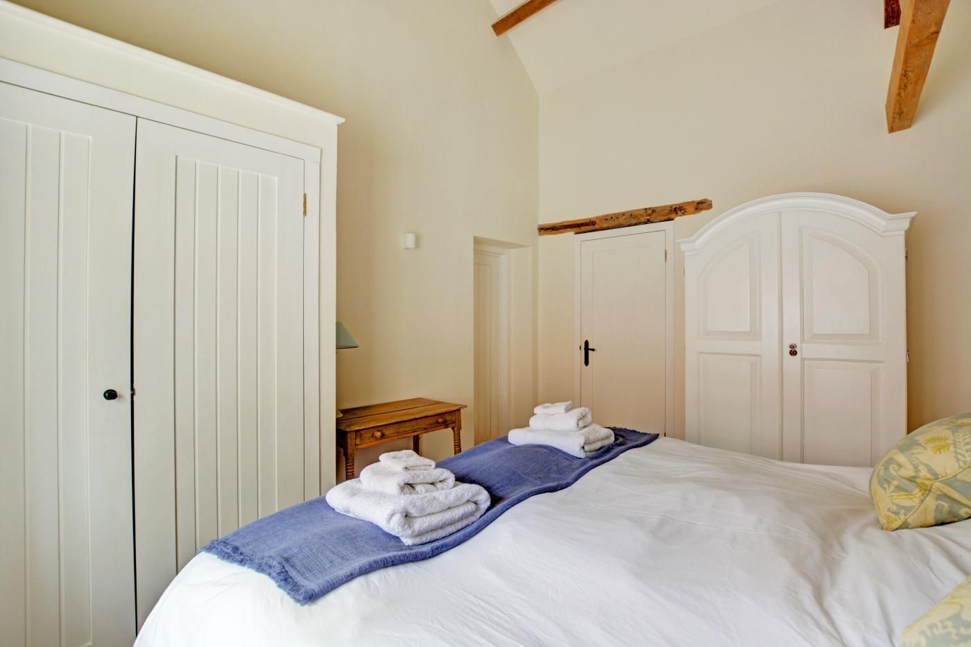 High vaulted ceilings, exposed brickwork and timber frames, a soothing neutral colour, a wood burner and underfloor heating create a wonderfully warm atmosphere in the open-plan lounge/kitchen/diner which beckons you to unwind weary walking muscles on the plush sofa, rustle up a family feast in the contemporary farmhouse-style kitchen and make special memories over dinner seated around the rustic dining table. As day turns to night, follow the warmth of the underfloor heating beneath the original brick floor to retire to either of the two beautifully serene en-suite bedrooms, featuring the same rustic décor and soothing colour palette as the rest of the barn, for a peaceful rest before tomorrow’s adventure.