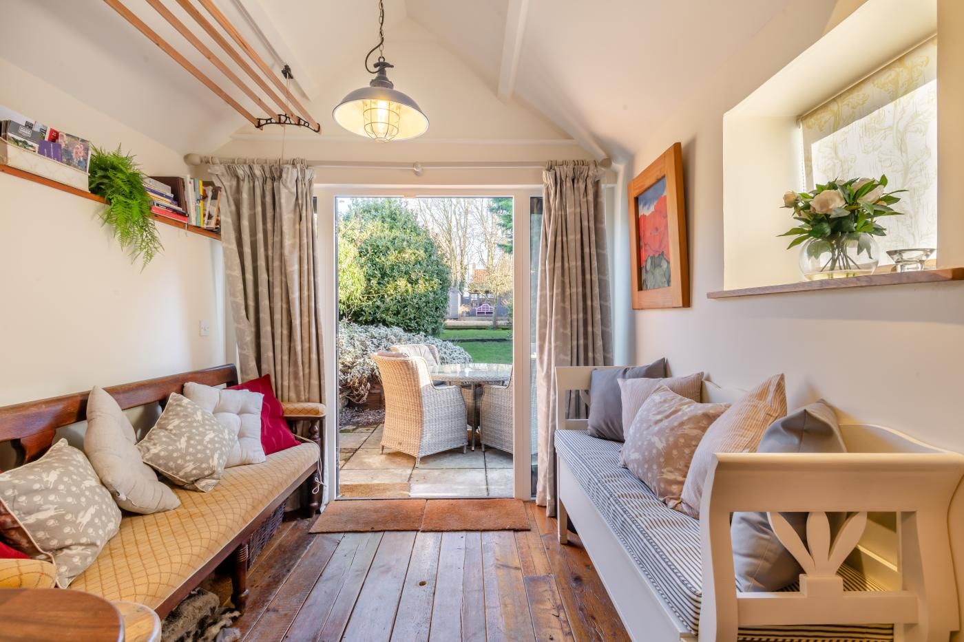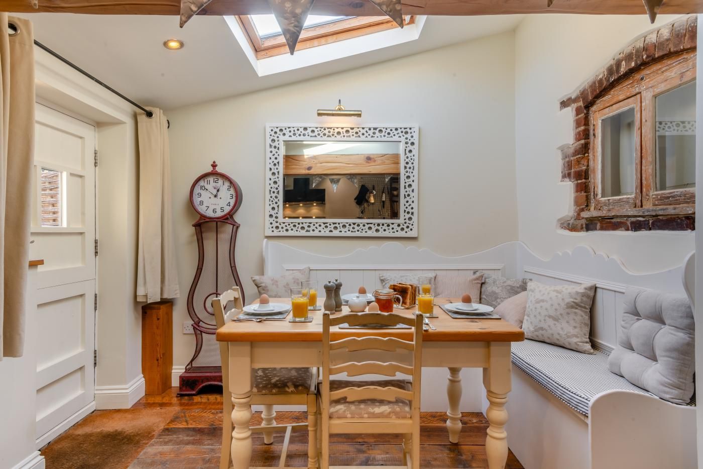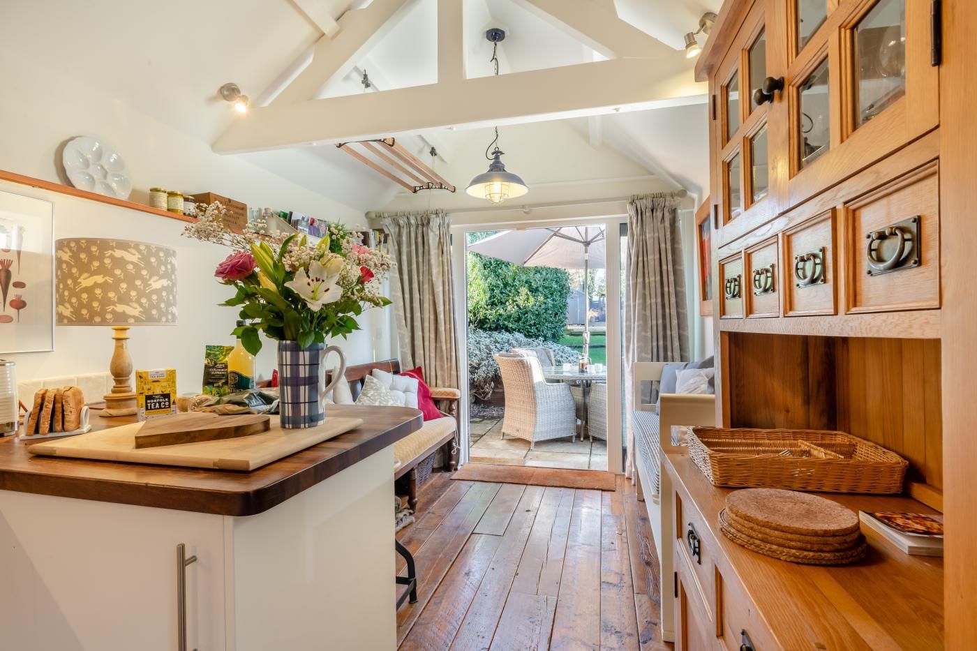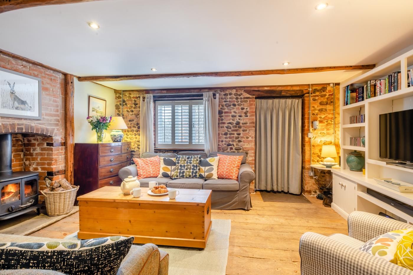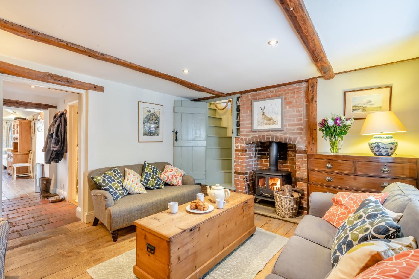 After a day of discovery, return home to this traditional brick and flint cottage boasting plenty of rural charm with lovingly preserved original features, a roaring wood burner in the cosy lounge and a private lawned garden with a charming summerhouse and deck for outdoor dining. Step inside to a welcoming embrace, where the lounge area beckons with the comforting warmth of a wood burner alongside a Smart TV and plush seating.